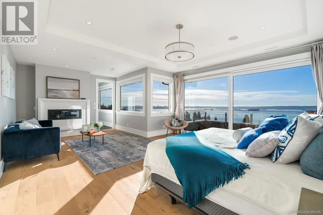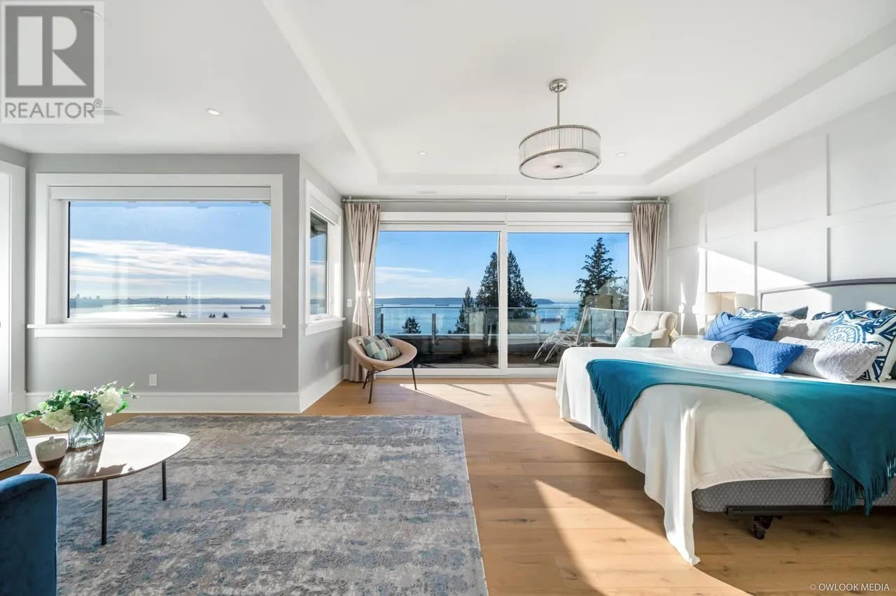 Exquisite Ocean Vista!!!A high-end luxury house in the sun-drenched West Bay, offers panoramic city, ocean, and coastline views. This luxurious 6,200 square ft residence spans three levels, featuring a master suite with sitting area, fireplace, spa-like ensuite, and elegant wardrobe, plus four additional ensuite bedrooms and six marble-accented bathrooms. Amenities include a paved driveway to a motorcourt and oversized garage, custom millwork, oak and marble floors, radiant heating, LED lighting, and smart home automation. The property boasts a modern kitchen with high-end appliances, a family room, and opens to lush grounds with a heated veranda, BBQ, pool, and hot tub. Lower level includes a theatre, gym, and 2 bedrooms. Best West Bay Elementary Catchment.Close to Top private schools. (id:27476)