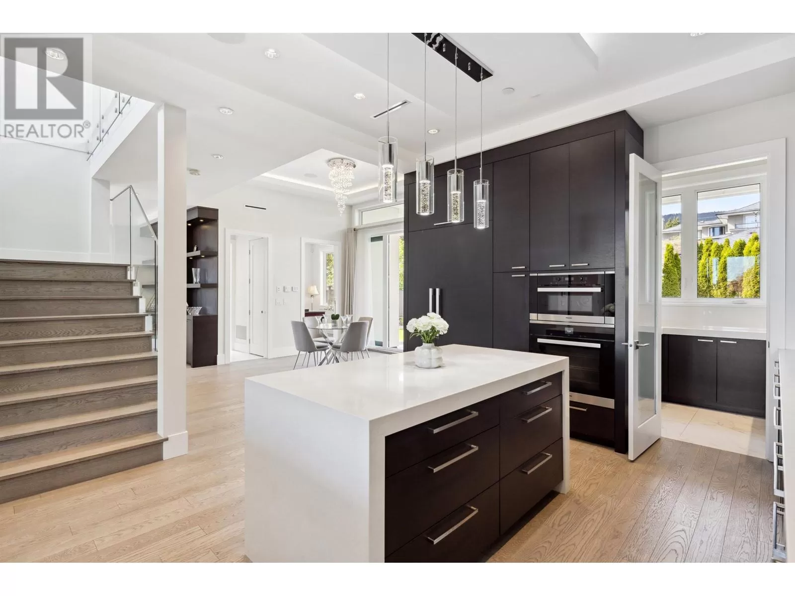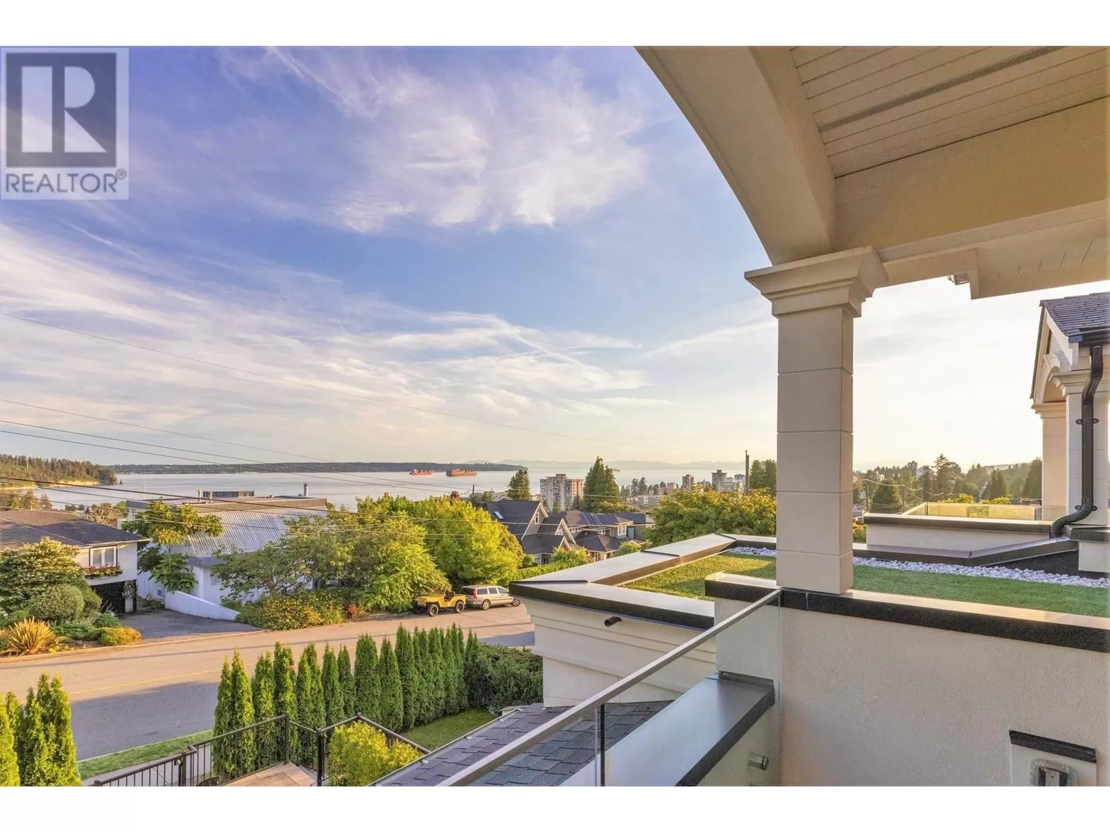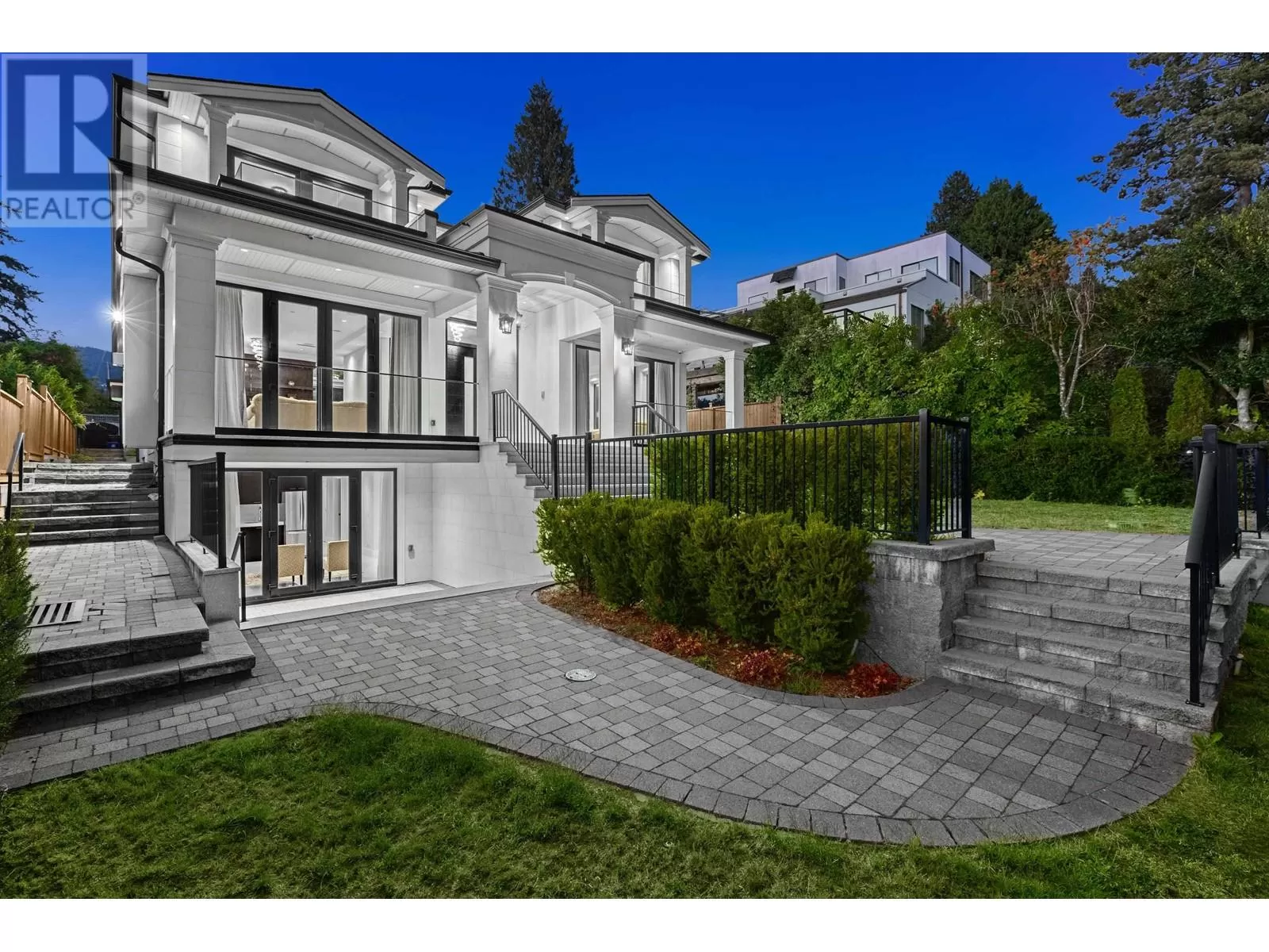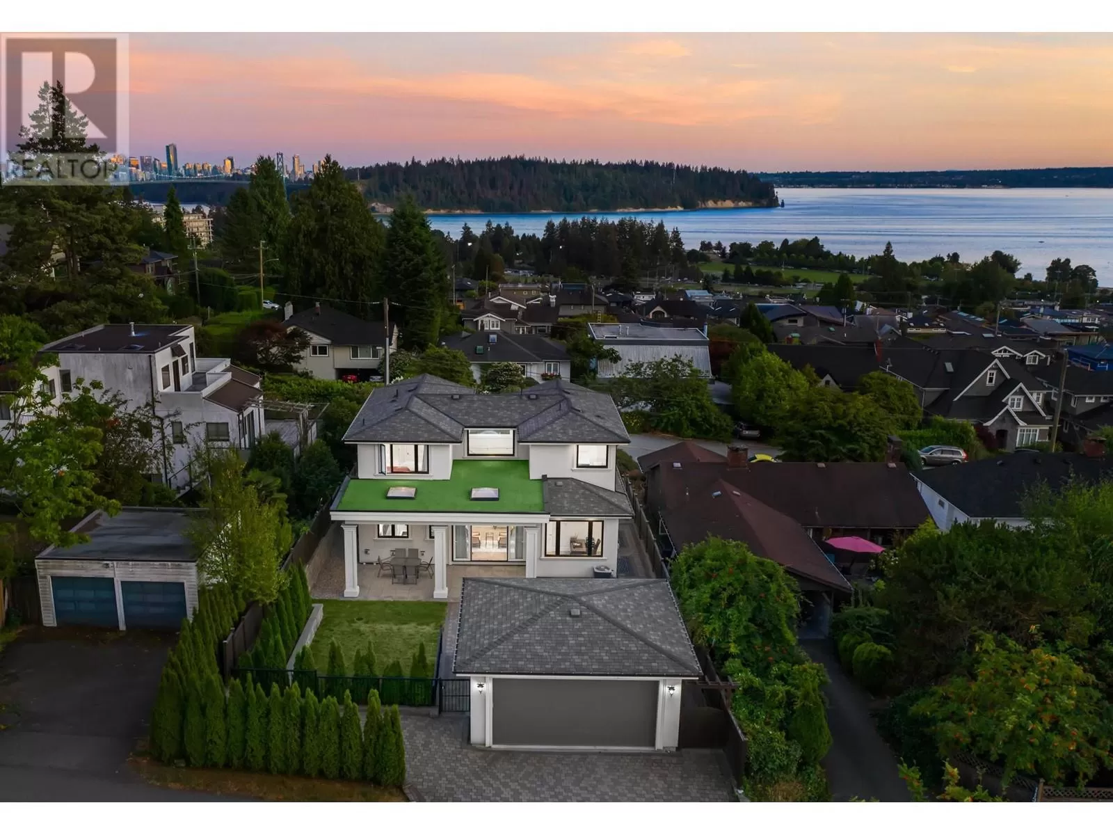 Experience unparalleled luxury living at this extraordinary Ambleside residence, offering 360-degree views of the ocean, city, mountains, and Stanley Park. Immerse yourself in opulence with grand living and dining areas, soaring 12-foot ceilings with lavish chandeliers, a gourmet main kitchen with Miele appliances, a wok kitchen, an office/bedroom, and a powder room on the main floor. The upper level features 3 stunning en-suite bedrooms and 2 majestic balconies with panoramic ocean views. This prime residence boasts an exquisite porch and patio, a private movie theatre/entertainment room, a sleek wet bar, a steam shower, lush sunny flat front & back yards, a bright 2-bed 1-bath garden-level legal suite with separate entry, back lane access, a double garage, and an outdoor parking space. (id:27476)