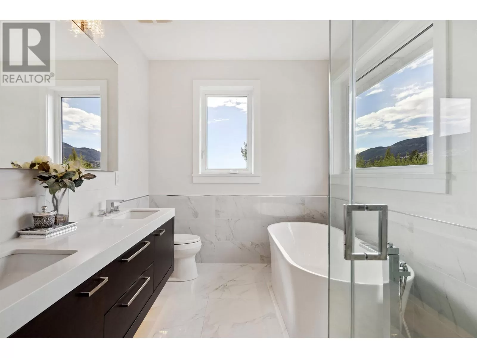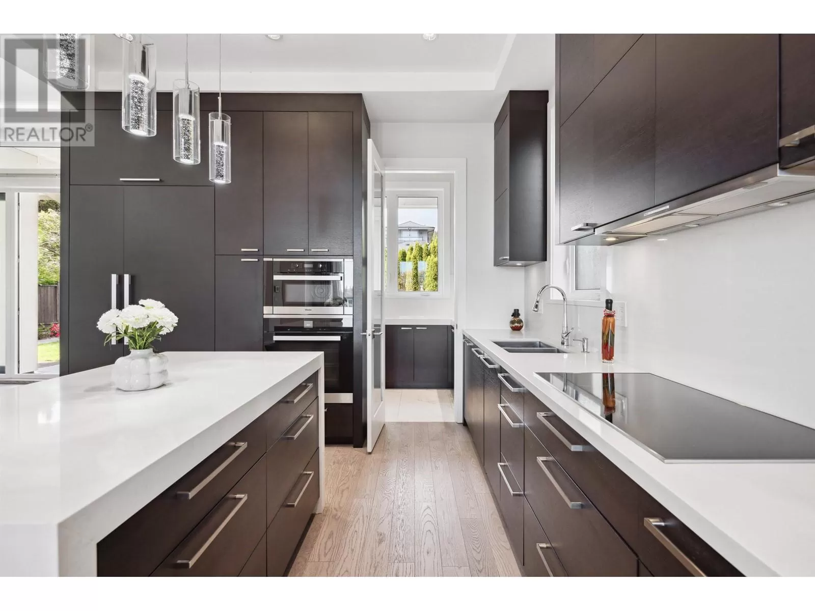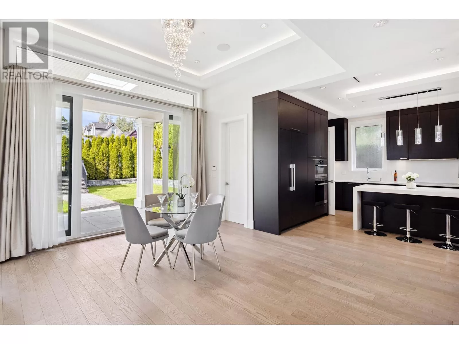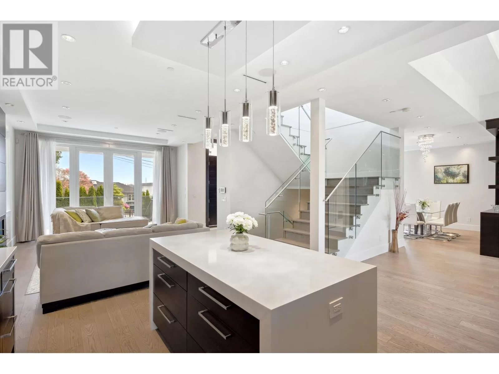 Experience unparalleled luxury living at this extraordinary Ambleside residence, offering 360-degree views of the ocean, city, mountains, and Stanley Park. Immerse yourself in opulence with grand living and dining areas, soaring 12-foot ceilings with lavish chandeliers, a gourmet main kitchen with Miele appliances, a wok kitchen, an office/bedroom, and a powder room on the main floor. The upper level features 3 stunning en-suite bedrooms and 2 majestic balconies with panoramic ocean views. This prime residence boasts an exquisite porch and patio, a private movie theatre/entertainment room, a sleek wet bar, a steam shower, lush sunny flat front & back yards, a bright 2-bed 1-bath garden-level legal suite with separate entry, back lane access, a double garage, and an outdoor parking space. (id:27476)