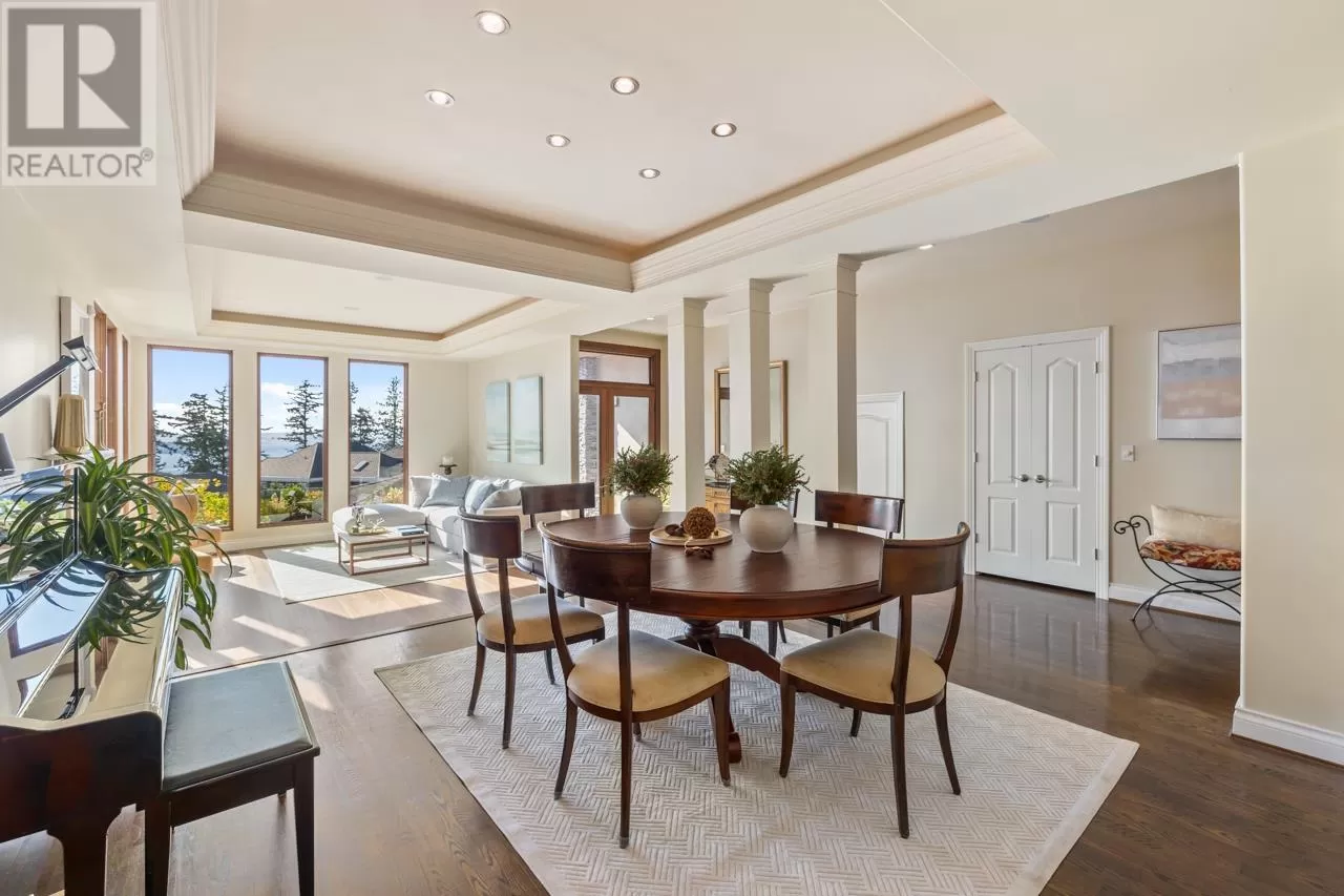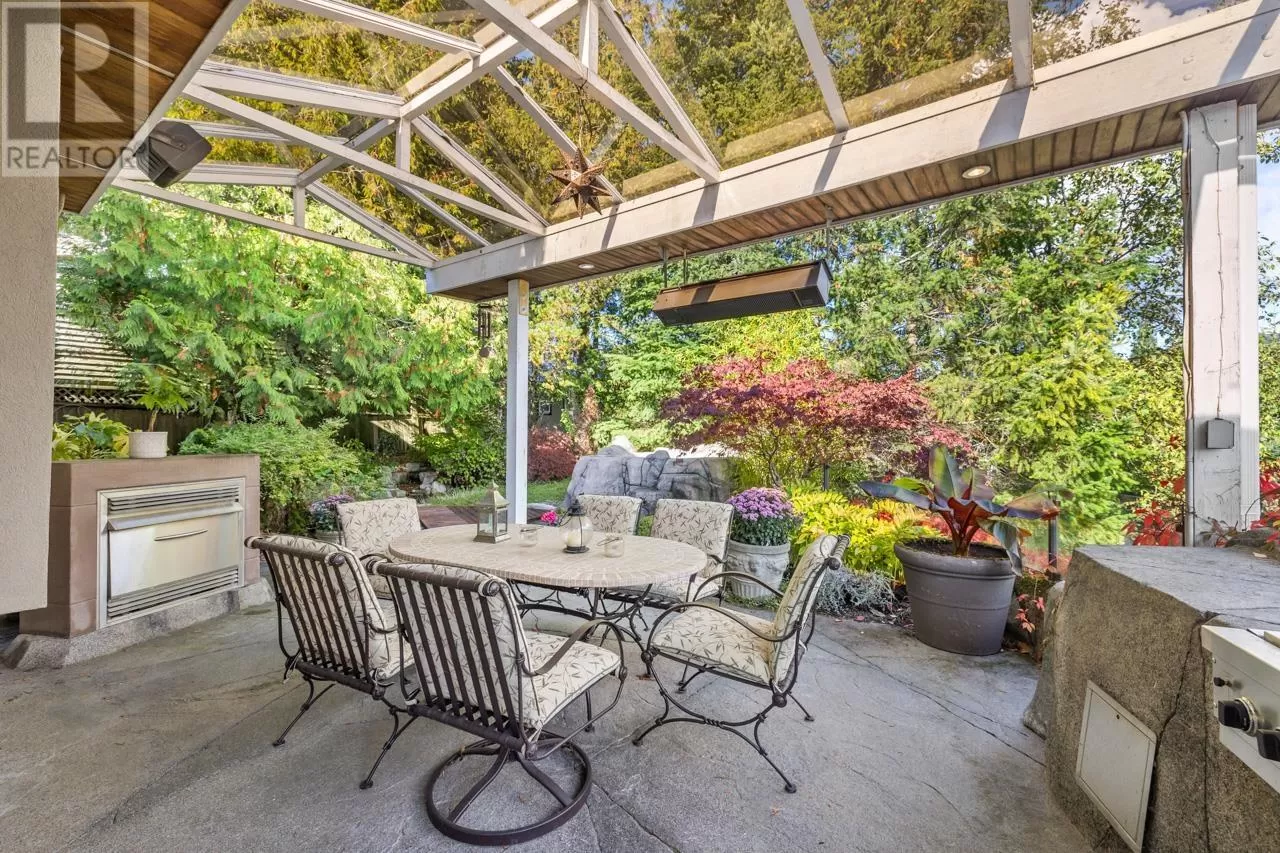 RARE OPPORTUNITY - This "One of a Kind" Upper Caulfeild home offers panoramic views of Lions Gate Bridge, Downtown Vancouver, UBC, and the West Vancouver shoreline. Perched on a private south-facing 9,000+ square ft lot, the custom-designed home features soaring ceilings, an open-concept layout, gourmet kitchen, and year-round outdoor living. Upstairs are 4 spacious bedrooms, including a stunning master suite with a sitting area. The backyard includes a koi pond, custom rock hot tub, and an outdoor kitchen with a built-in BBQ. With A/C, radiant heating, a heated covered patio, and a 3-car garage, this is a rare gem close to Caulfeild Shopping, Rockridge High School, and trails. OPEN HOUSE SUN (JUN 14 & 15) @ 2-4PM (id:27476)