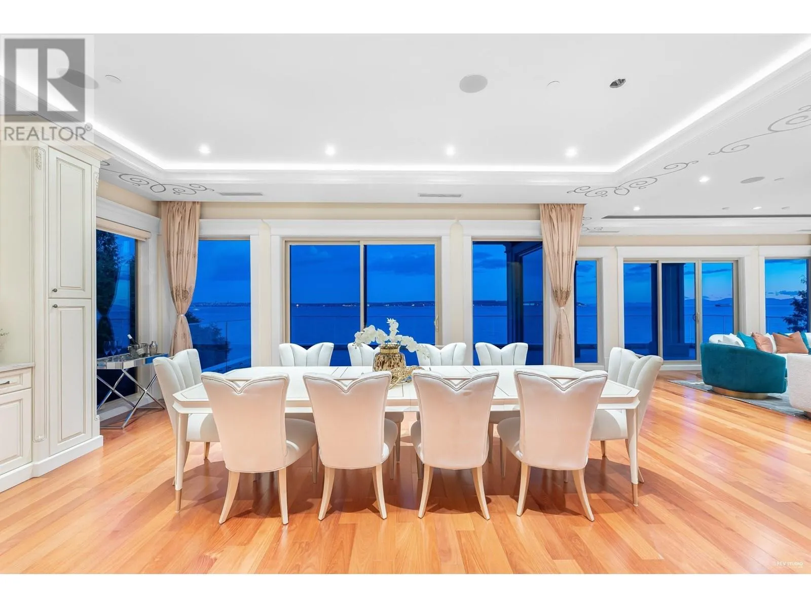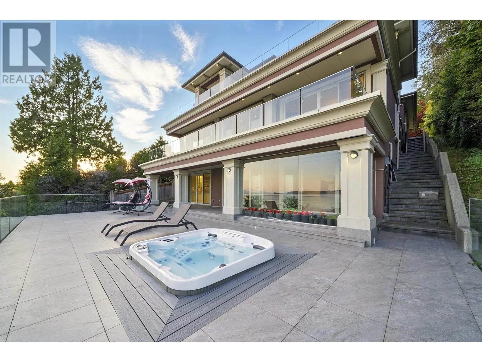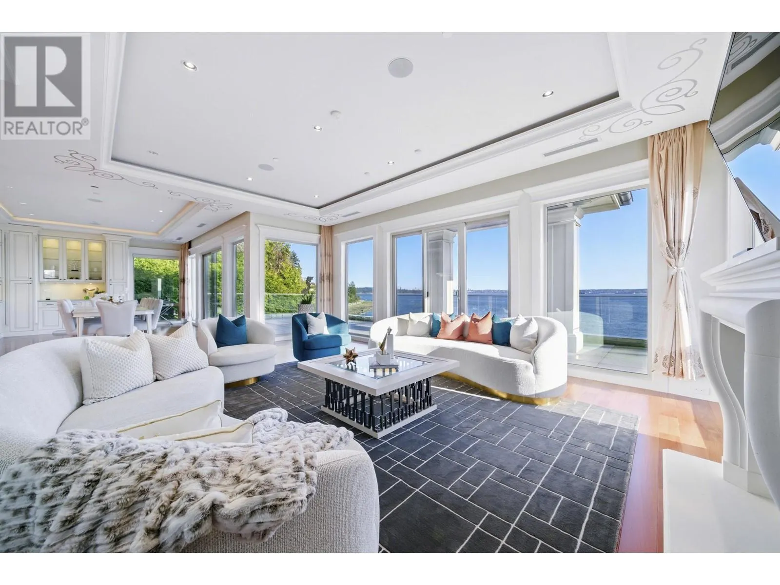 Spectacular WATERFRONT home with 270 degree city & ocean views overlooking the "shoreline" from Stanley Park to Vancouver Islands for miles! This amazing home was custom built by renowned Valentino with the highest quality materials & workmanship throughout! it took over 3 years to build and provides a truly incredible lifestyle on three spacious levels enjoying panoramic South facing water views. Main floor features formal living rm & dining rm. stunning gourmet kitchen with incredible millwork & best possible appliances. Additional features include large Master bedroom plus 4 additional bdrms. Lower floor features spacious recreation room with media room & wet bar, amazing wine cellar & gym leading through French doors to the hot tub & Huge deck, all overlooking the View! (id:27476)