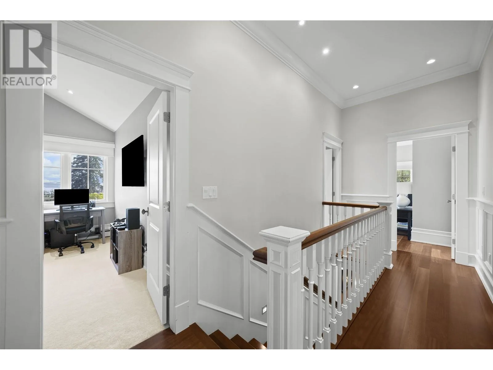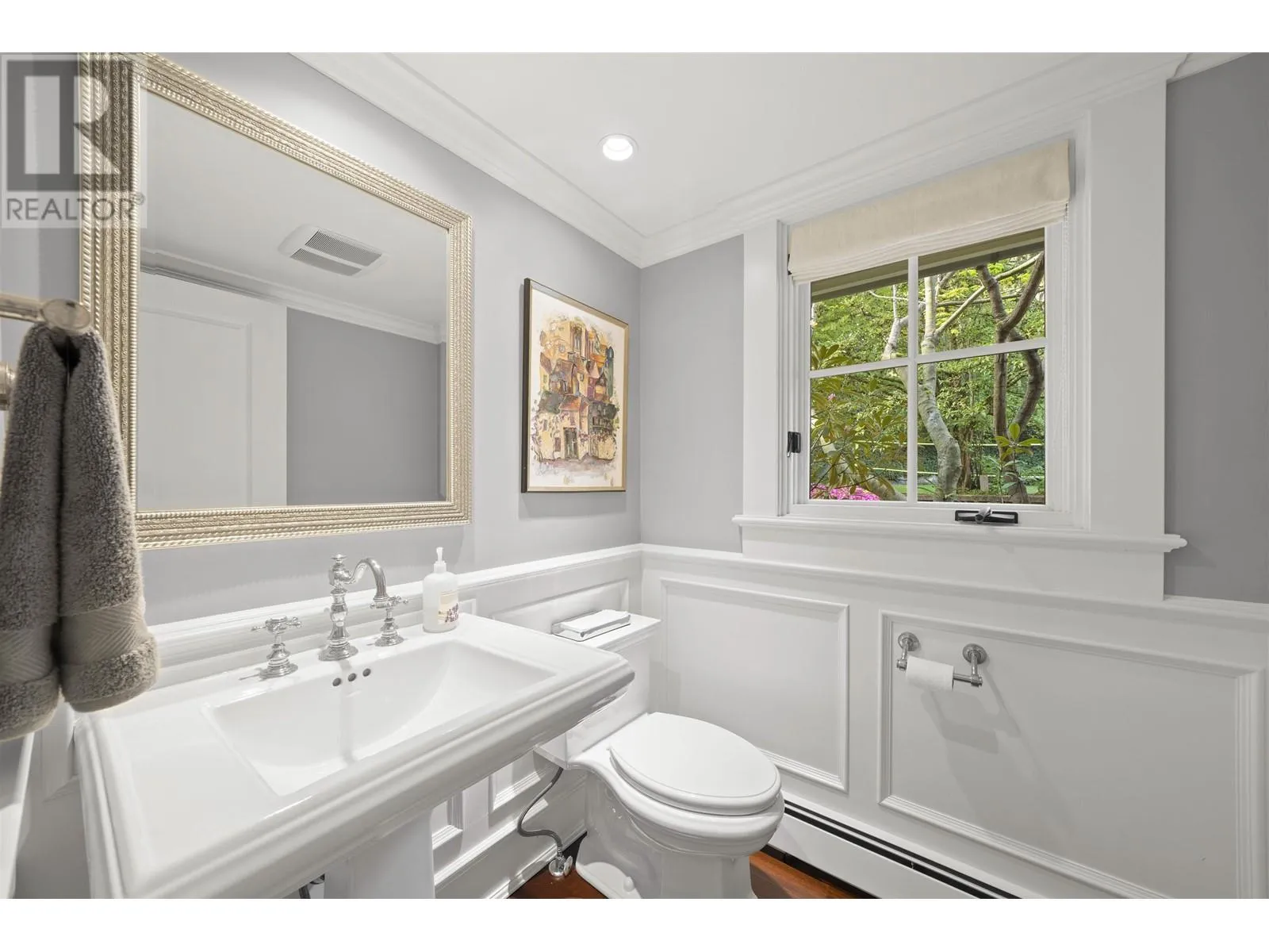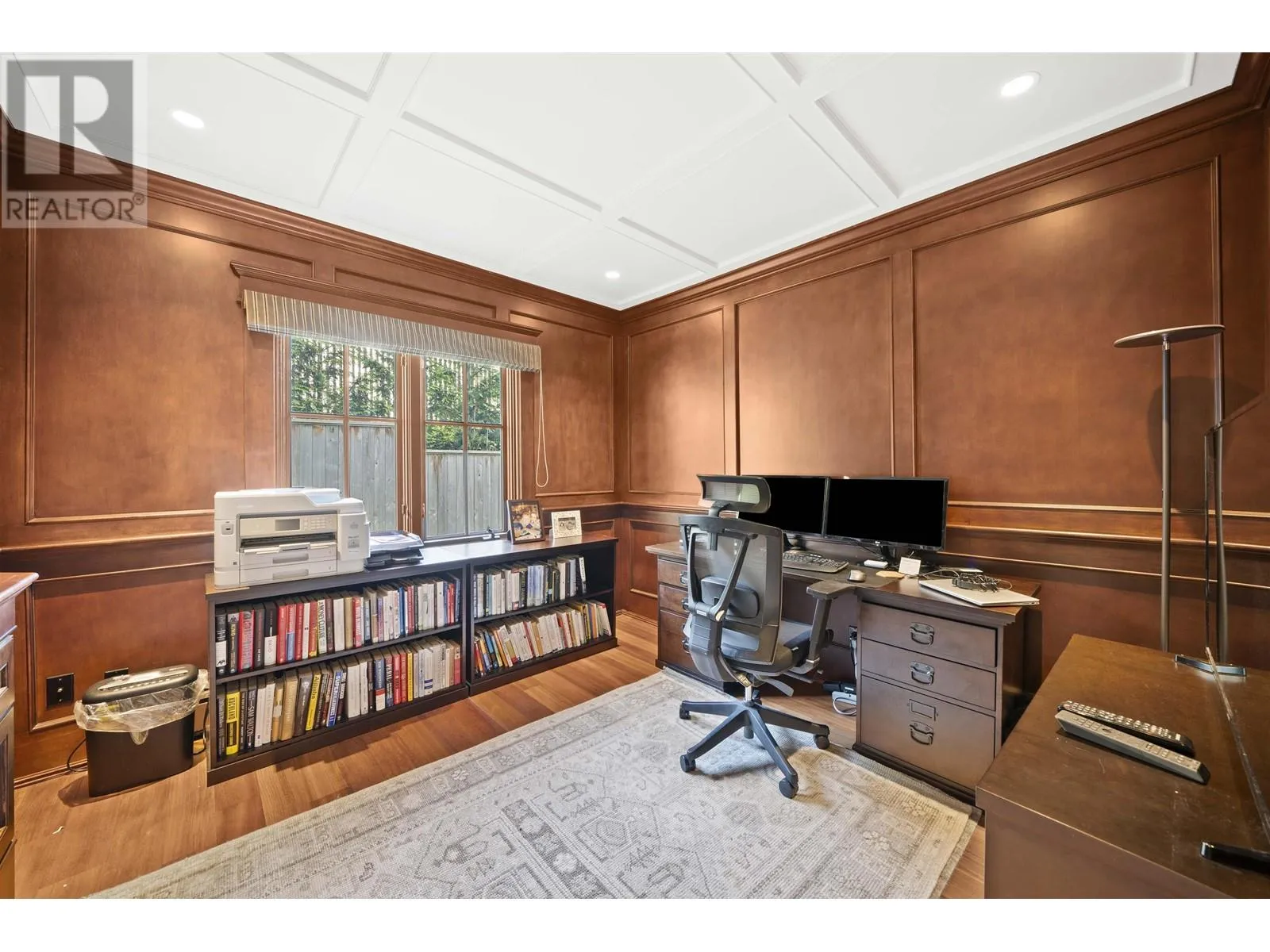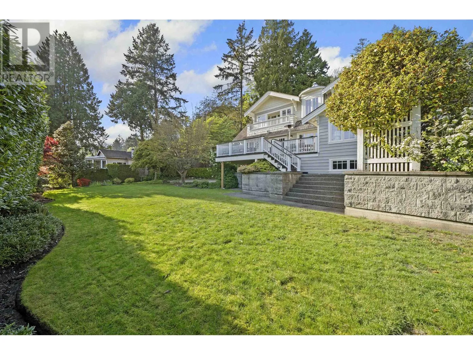 This elegant 5-bed, 5-bath home sits on a private, south-facing lot with over 4,300 sq.ft. of refined living space. Behind gated entry, it blends classic design with modern comfort. Features include custom millwork, rosewood flooring, a striking wine room, and a gourmet kitchen with premium appliances. Formal living and dining areas are ideal for both daily life and entertaining. Upstairs offers four spacious bedrooms, including a serene primary suite with a private terrace. The lower level provides flexible space for guests or extended family. Surrounded by mature greenery and designed for seamless indoor-outdoor living, this home delivers privacy, comfort, and timeless style. (id:27476)