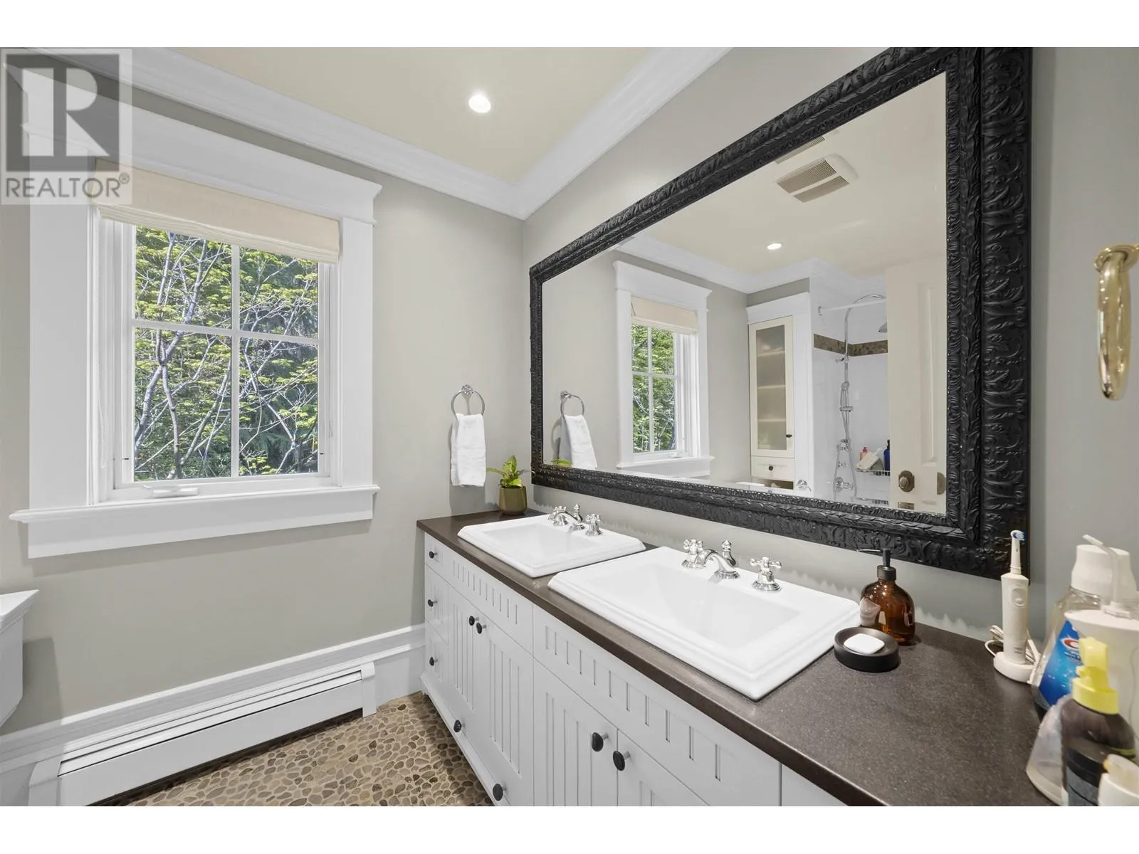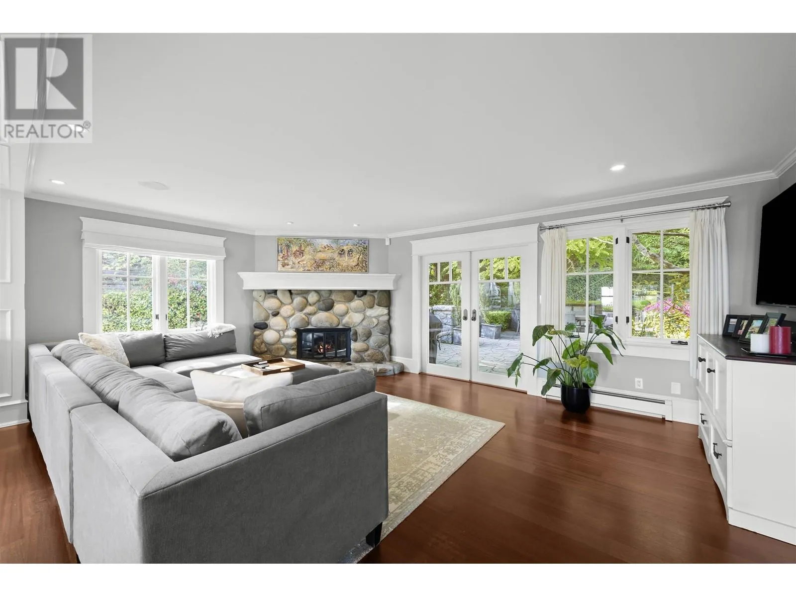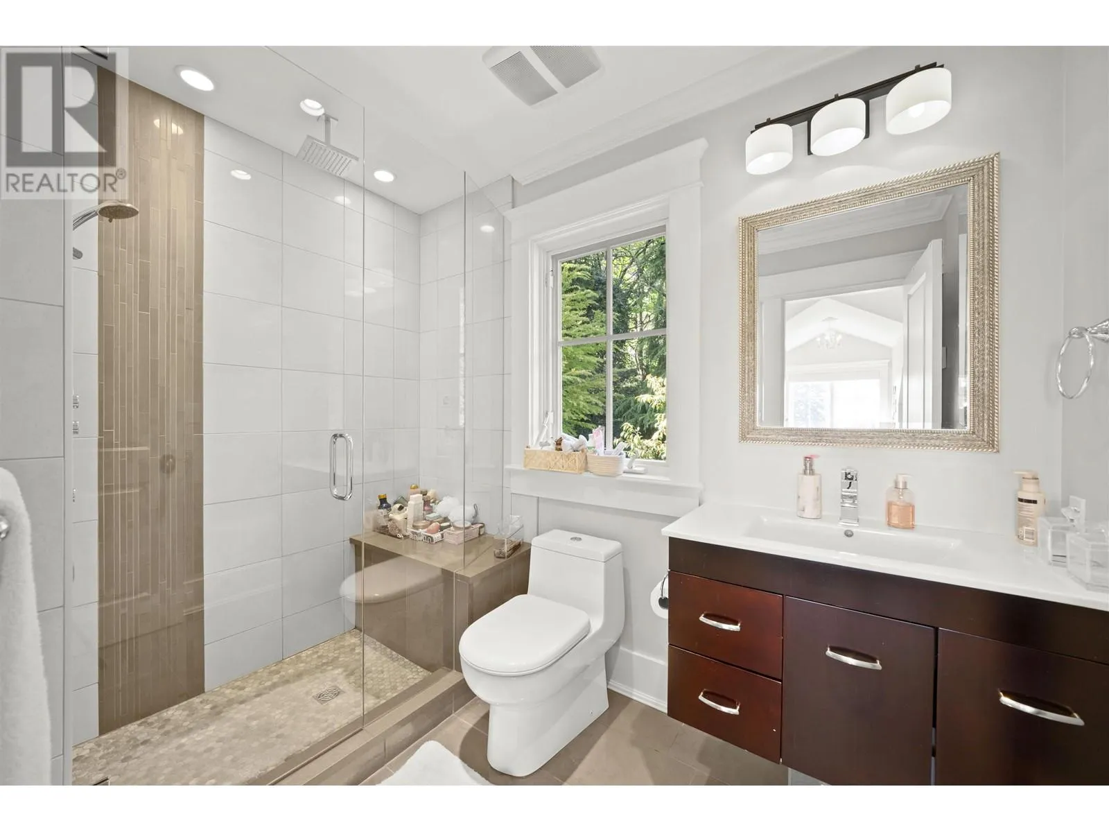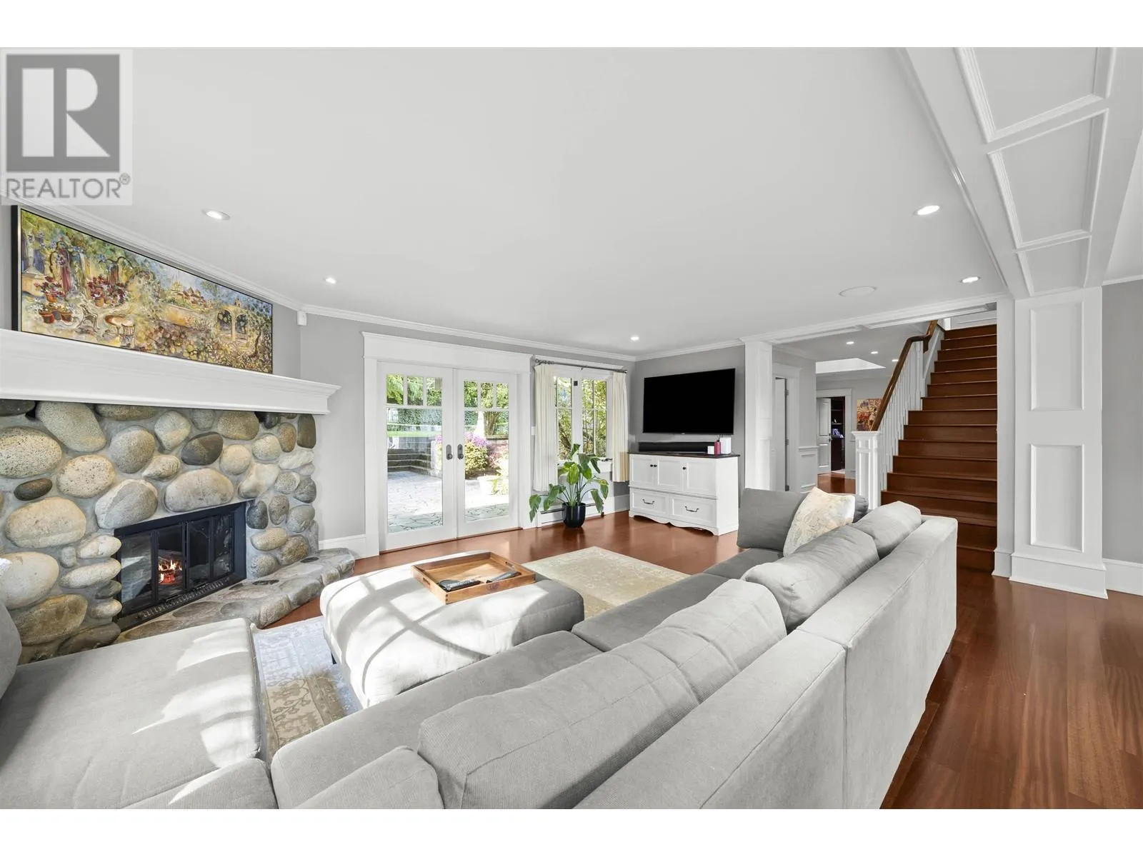 This elegant 5-bed, 5-bath home sits on a private, south-facing lot with over 4,300 sq.ft. of refined living space. Behind gated entry, it blends classic design with modern comfort. Features include custom millwork, rosewood flooring, a striking wine room, and a gourmet kitchen with premium appliances. Formal living and dining areas are ideal for both daily life and entertaining. Upstairs offers four spacious bedrooms, including a serene primary suite with a private terrace. The lower level provides flexible space for guests or extended family. Surrounded by mature greenery and designed for seamless indoor-outdoor living, this home delivers privacy, comfort, and timeless style. (id:27476)
