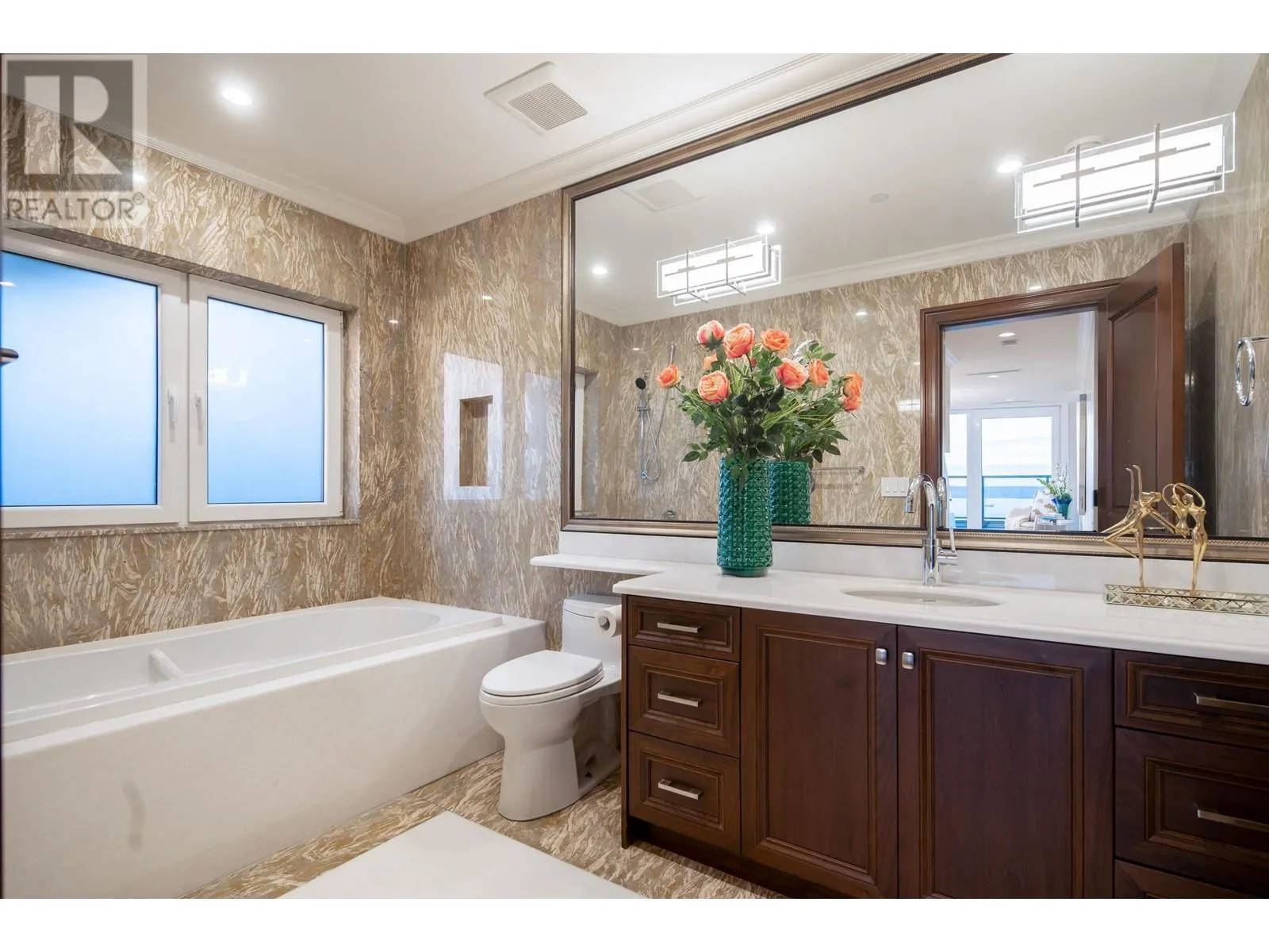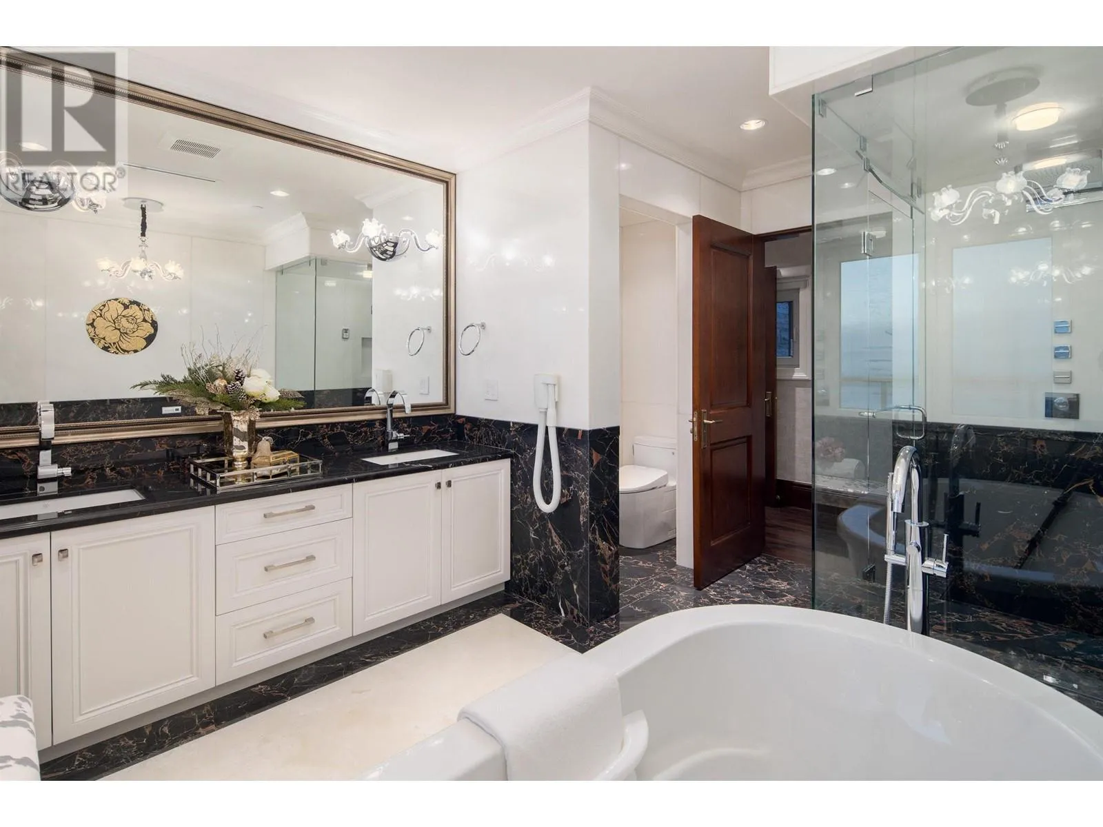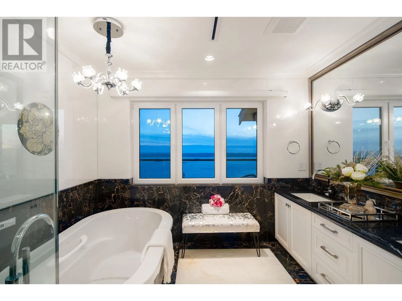 Amazing unobstructed panoramic DT, Stanley Park, Lions Gate Bridge, UBC & Ocean View! Custom built Luxury 6675 sf sweet home on 14000 sqft lot with stunning ocean views from all 3 levels. Flat driveway, water fall and fountain welcomes you to the home. Hardwood floor, with generous applied wood panel and most expensive European natural stones. Smart home with most expensive Crestron system connected with lighting, curtains & sound system. 5 bedrooms all on-suite, home theatre, office, open kitchen and wok kitchen. Indoor swimming pool, wine bar and wine cellar. Easy Access to Park Royal Shops Restaurants, Recreation, Ski Hills, Mulgrave School, Country Clubs & Community Centre. (id:27476)