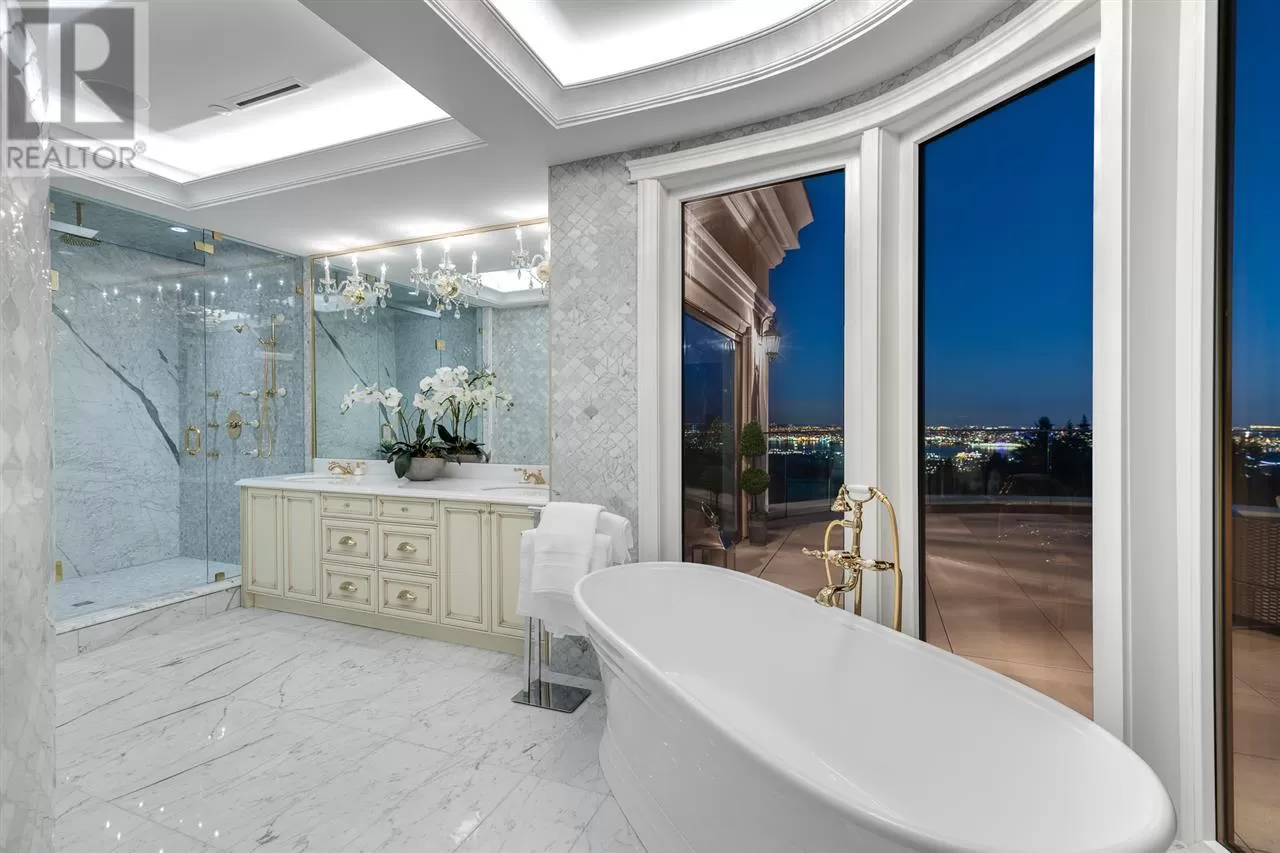 Spectacular 180 wide panoramic view of ocean, city, & Lions Gate Bridge. This gorgeous 8000+ sqft home located in most prestigious British Properties on a 13,900 sqft lot. Featuring an open concept plan offering 6 bdrm, 8 bath. Expansive living across three levels, main features an impressive grand foyer and living room, crystal chandelier, the highest quality appliances, granite island and counter top, large entertainment size family room and dining room leading out to a private terrace and infinity edge pool. 4 luxurious bedrooms up ensuited & walk in closets! The lower level features a games area with full bar, theatre, sauna, gym & yoga area, rec room, plus two guest suites! Close to shopping, ski & golf course. Top catchment schools: Chartwell Elementary & Sentinel Secondary. Public Open house on Sun 2-4pm, Nov 16th. (id:27476)