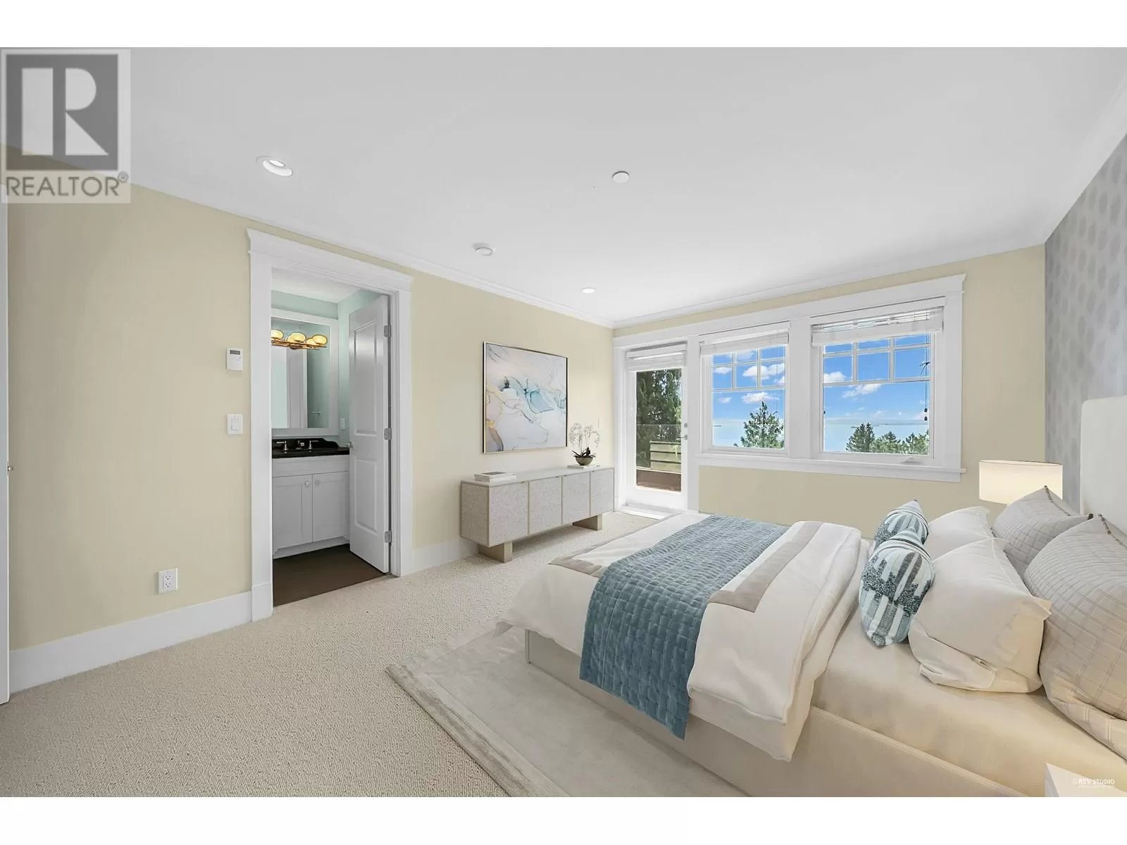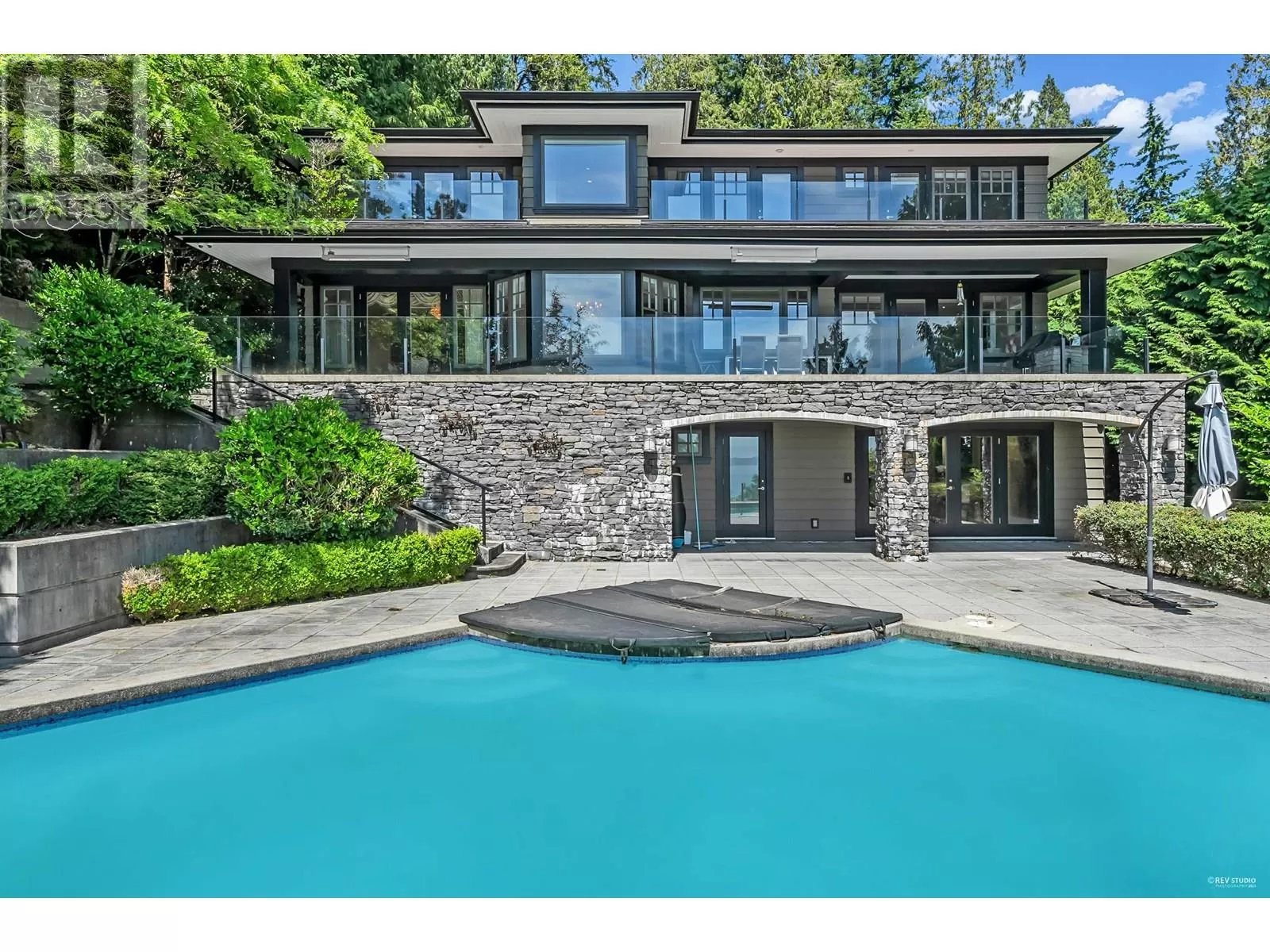 This exquisite custom residence, built by renowned master builder Steven Bradner and designed by Gordon Hylinski, is tucked away on a private, gated half-acre in prestigious Lower Caulfeild. Thoughtfully positioned to capture tranquil ocean glimpses, the home offers over 2,500 sq.ft. of refined main-level living, including a gourmet chef´s kitchen and an inviting family room that seamlessly extends onto an expansive 800 sq.ft. terrace-perfect for entertaining-overlooking the sun-soaked pool and spa. Upstairs, four generously sized bedrooms each feature their own ensuite bathrooms and private balconies, creating a resort-like experience for every family member. The walk-out lower level boasts a spacious rec room with direct access to the pool deck, ideal for indoor-outdoor family living. Immaculate craftsmanship and high-end finishes are evident throughout, including a triple-car garage. All just moments from the charming "Someplace Special" village and some of West Vancouver´s top-rated schools. (id:27476)