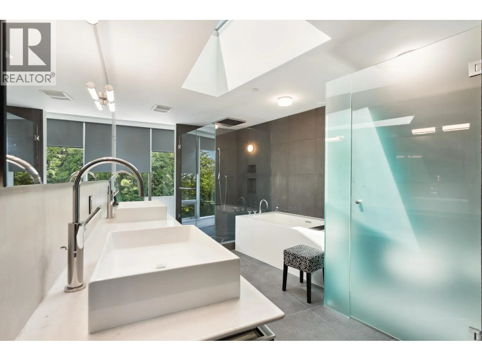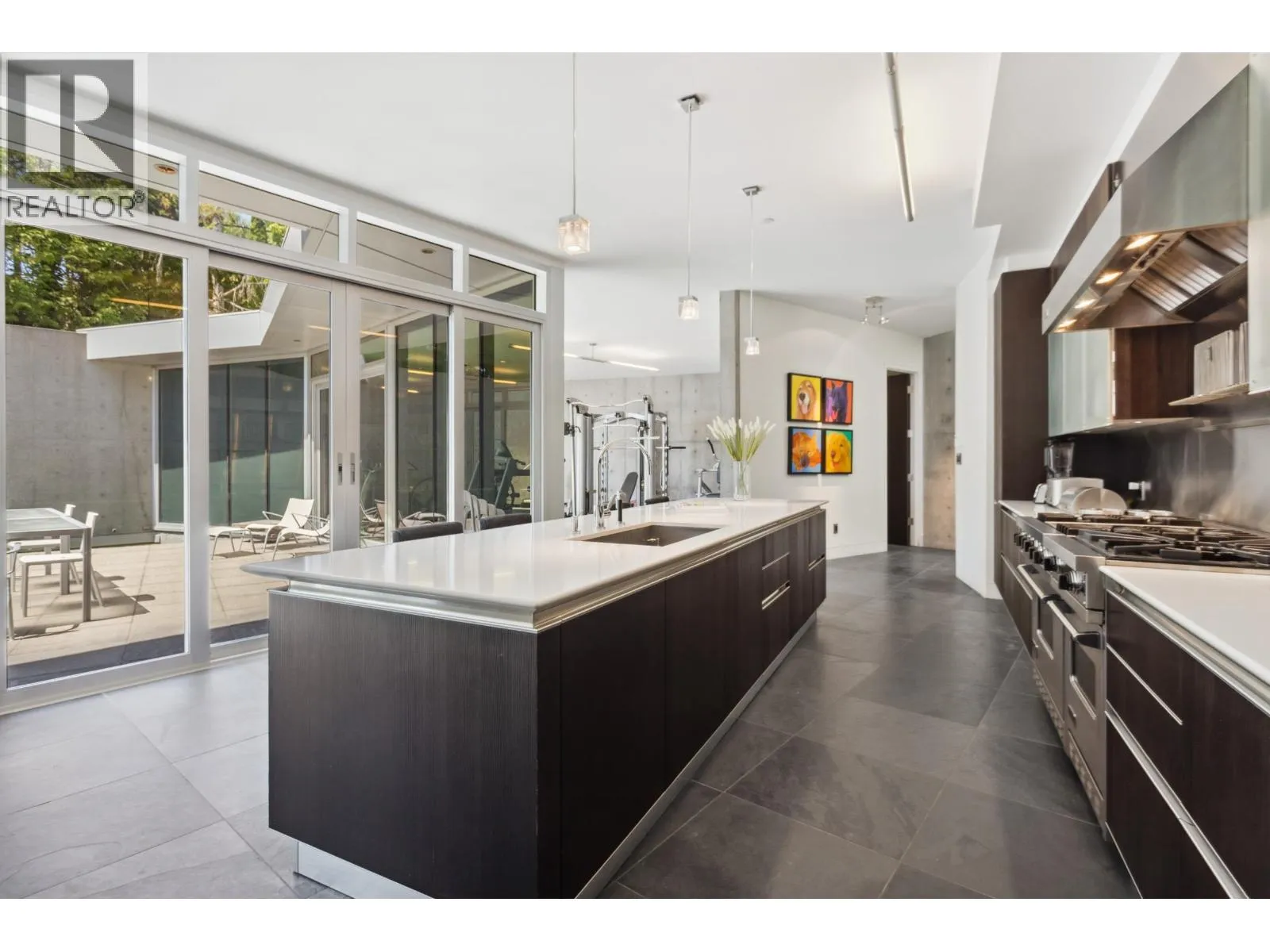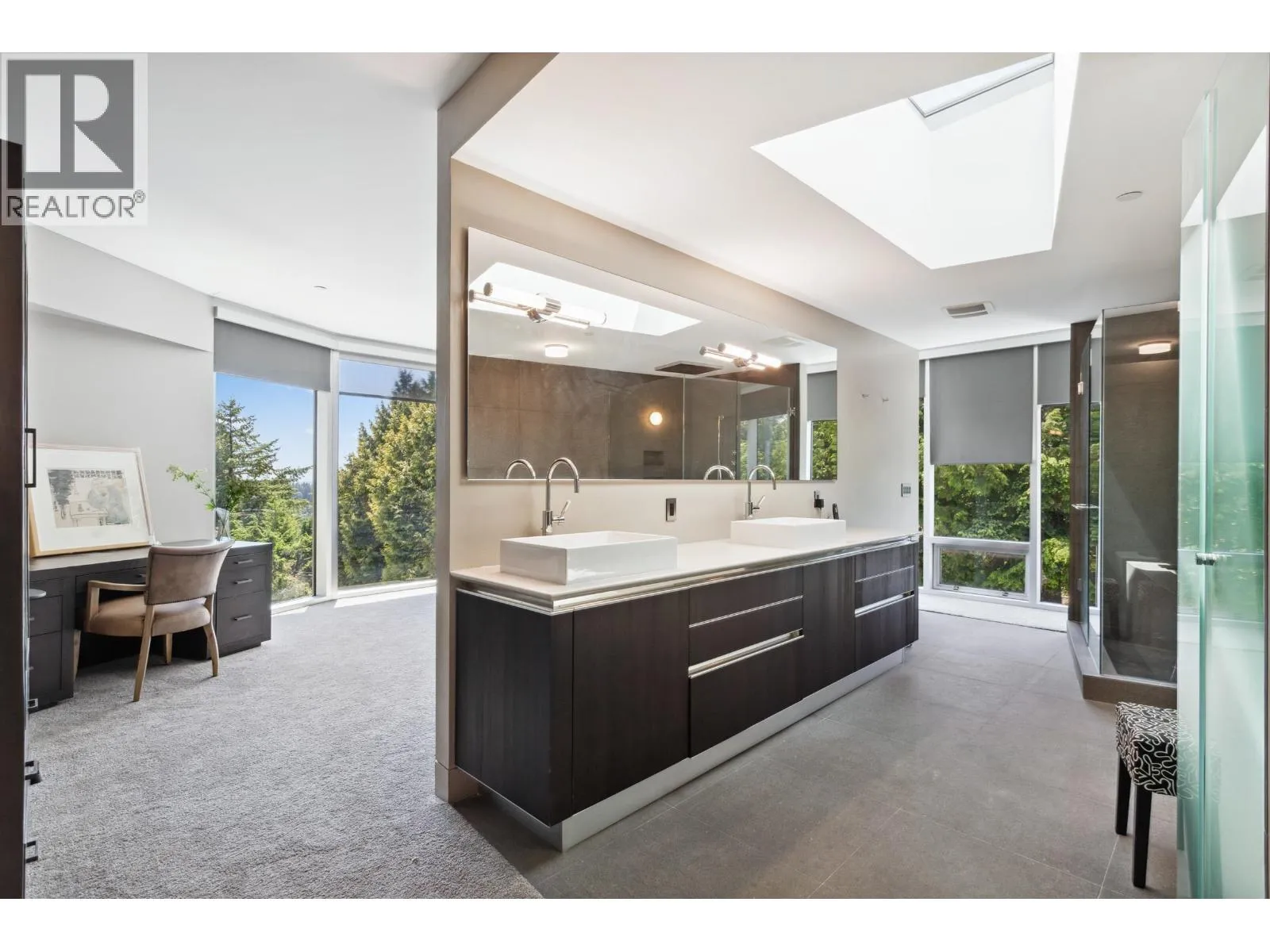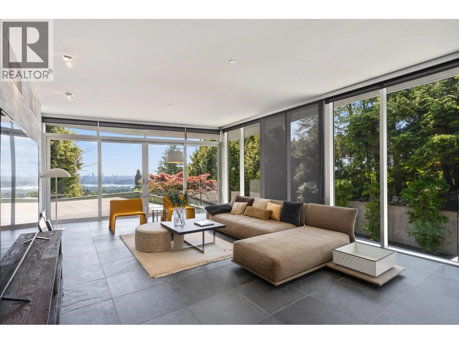 An amazing concrete home designed by Vancouver Architect. Perched on half acre+ property at the best strip of the British Properties, below snow line, close to schools, golf club, Hollyburn country Club, w/spectacular Southern view of the ocean and city.Totally private fenced yard, massive patios outside living, family room/gym & kitchen for entertaining and your enjoyment.Skylights, floor to ceiling windows allow for maximum view and natural light.This open plan home comes with a kitchen with high end stainless steel appliances, gas range, large island plus a spacious pantry prep area.Triple garages with new flooring, 2 huge terraces. Air conditioned Master bedroom and living room.See to appreciate this modern home. NO sign @ owner's request. (id:27476)