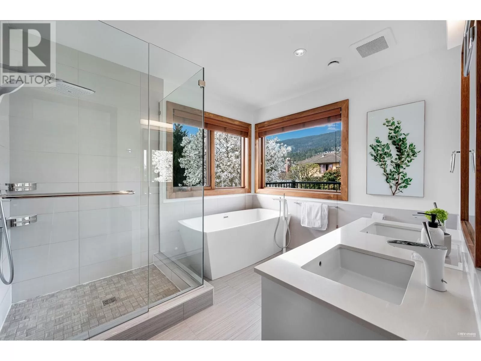 This magnificent custom built residence in prime Dundarave offers approximately 4,000 sqft of luxurious living across 3 expansive levels. Thoughtfully designed with a bright, open concept layout, it features soaring 10-ft ceilings on the main level and seamless indoor-outdoor flow through California style folding glass walls opening to a private, sun filled flat backyard. The gourmet German Poggenpohl kitchen includes a large island, breakfast bar, top-tier Miele appliances & fully equipped wok kitchen. Upstairs hosts 4 spacious bedrms, including a sumptuous primary suite with spa inspired ensuite & walk-in closet. The lower level features media rm, wine cellar, recreation rm & additional bedrm. Additional highlights include a glass-roofed wraparound balcony, Smart Home system, natural gas backup generator, RV Parking & more. Located minutes from top schools, shopping & community amenities. 3D Matterport Link: https://my.matterport.com/show/?m=iZHGu61qY31 Open Sunday Oct 26, 2-4pm (id:27476)