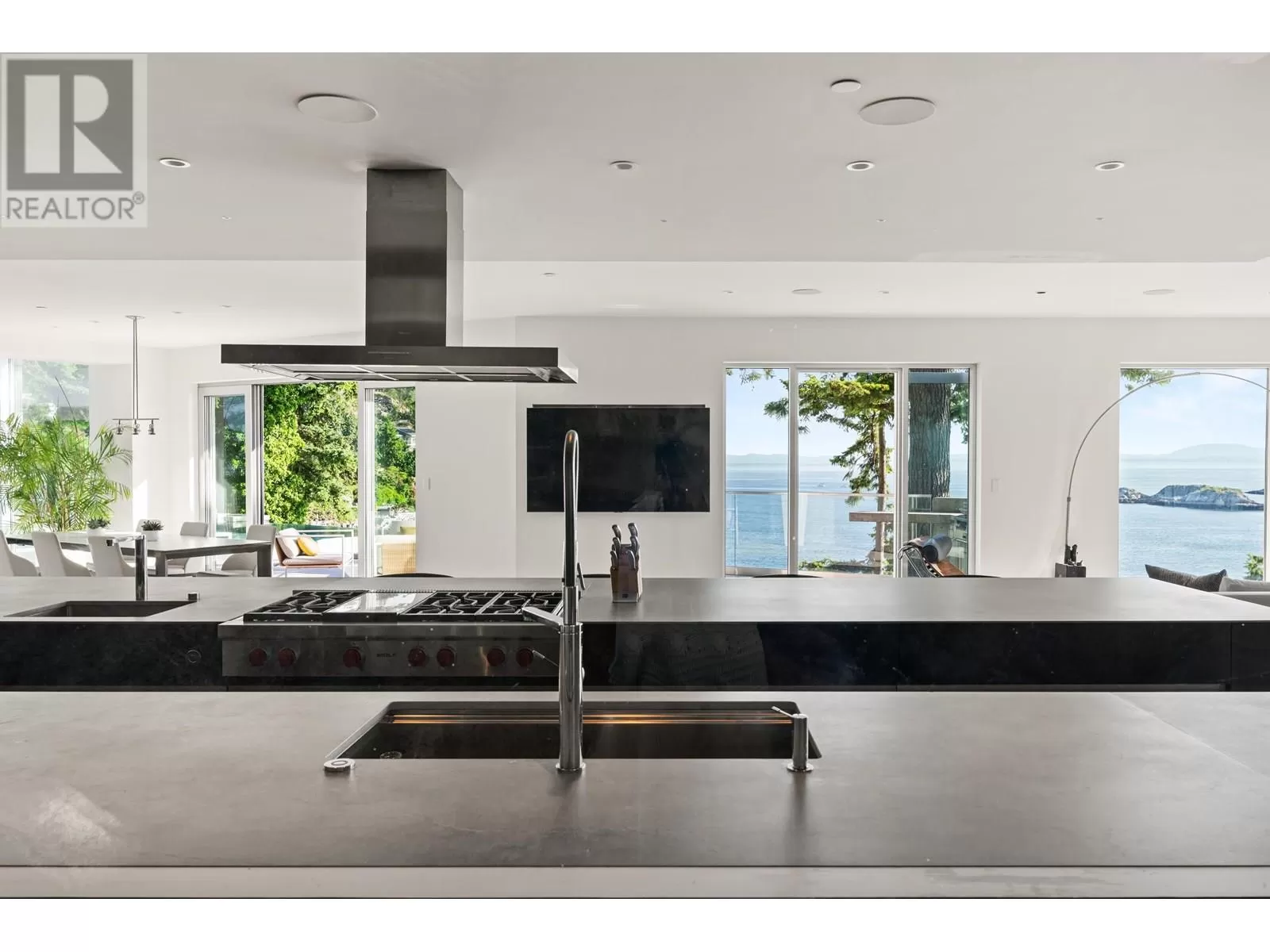 This STUNNING custom-designed concrete WATERFRONT home BY BRADNER HOMES boasts over 200 feet of shoreline - an ABSOLUTE MASTERPIECE. The OCEAN VIEWS are BREATHTAKING from the second you enter the front door with the most incredible privacy one could ever ask for. Perched on an almost 20,000 sq. ft. lot with incredible almost 9000 sq. ft. of living space with OCEAN VIEWS from everywhere - The most impressive infinity edge pool is a seamless sight as it flows PERFECTLY into the ocean backdrop! Owning a timeless concrete home on the water perched on a cliff such as this rarely is for sale! (id:27476)