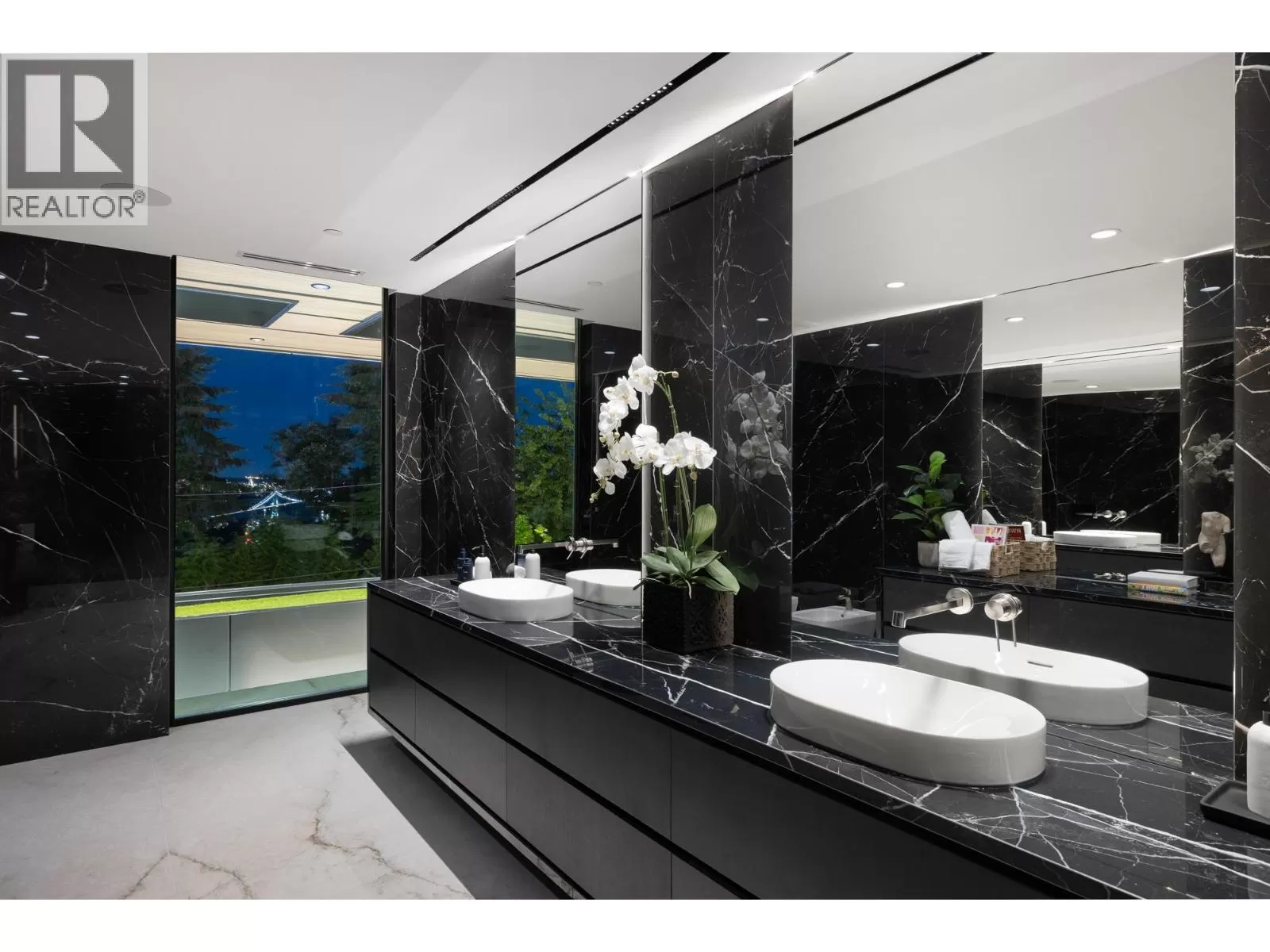 Modern mansion designed by David Christopher & Paul Sangha and built by award winning Marble Construction. This one of a kind home offers over 10,340 SQF of luxury on a flat, south facing property with exceptional natural light. The striking modern roofline, oversized aluminum-framed windows and doors, and large spans create open, light-filled spaces. Other features include double-height ceilings, oversized infinity edge pool, a one of a kind interior design with rare imported materials, an elevator, unique theatre room, serene spa, 5 covered parkings including 3 covered Collector's garage looking into the basement, an oversized kitchen & huge wok kitchen, and a bar that´s truly a piece of art! A masterpiece for the discerning buyer who values unmatched design, craftsmanship, and quality. (id:27476)