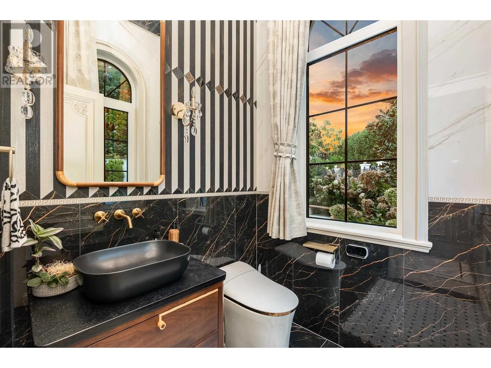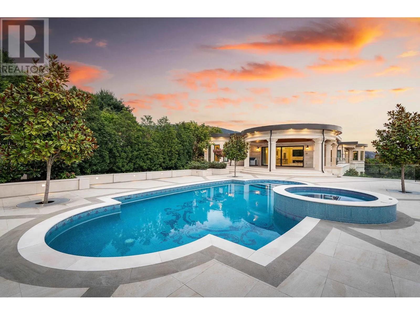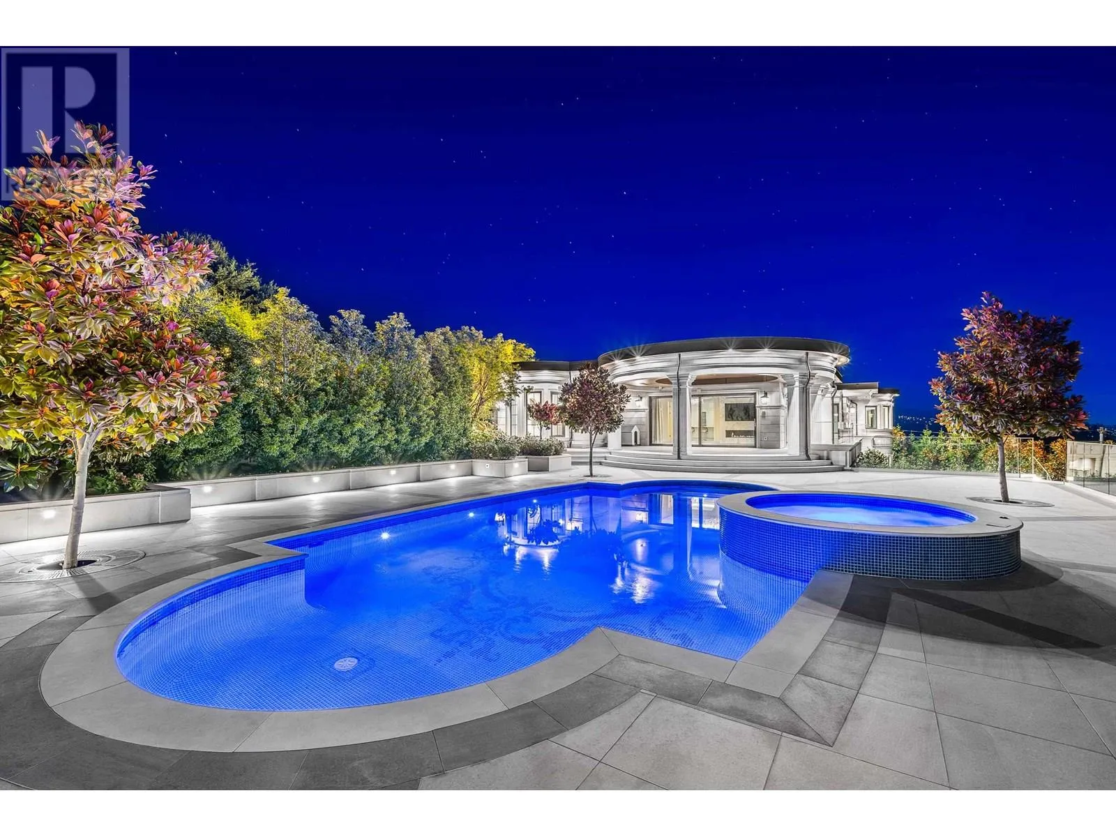 ritish Properties Estate newly completed, this house situated on a prestigious street, private, views of city & harbour and Lions Gate Bridge. This 12,967 square ft 2 level home built on a 24,746 square feet level lot. Open floor Plan, gourmet kitchen, 6 oversized ensuited bedrooms w/walk-ins, 11 baths, high ceilings, elevator, Over sized indoor and outdoor swimming pools, sauna, steam room, large level heated driveway, water feature, and 5-car parking, fire pit, park like landscaping designed by Paul Sangha and upscale home theatre! Handmade floors are Calacatta marble with wood inlay and/or metal inlay. Gourmet chef´s kitchen featuring Gaggenau appliances and wok kitchen. This home truly beyond impressive. (id:27476)