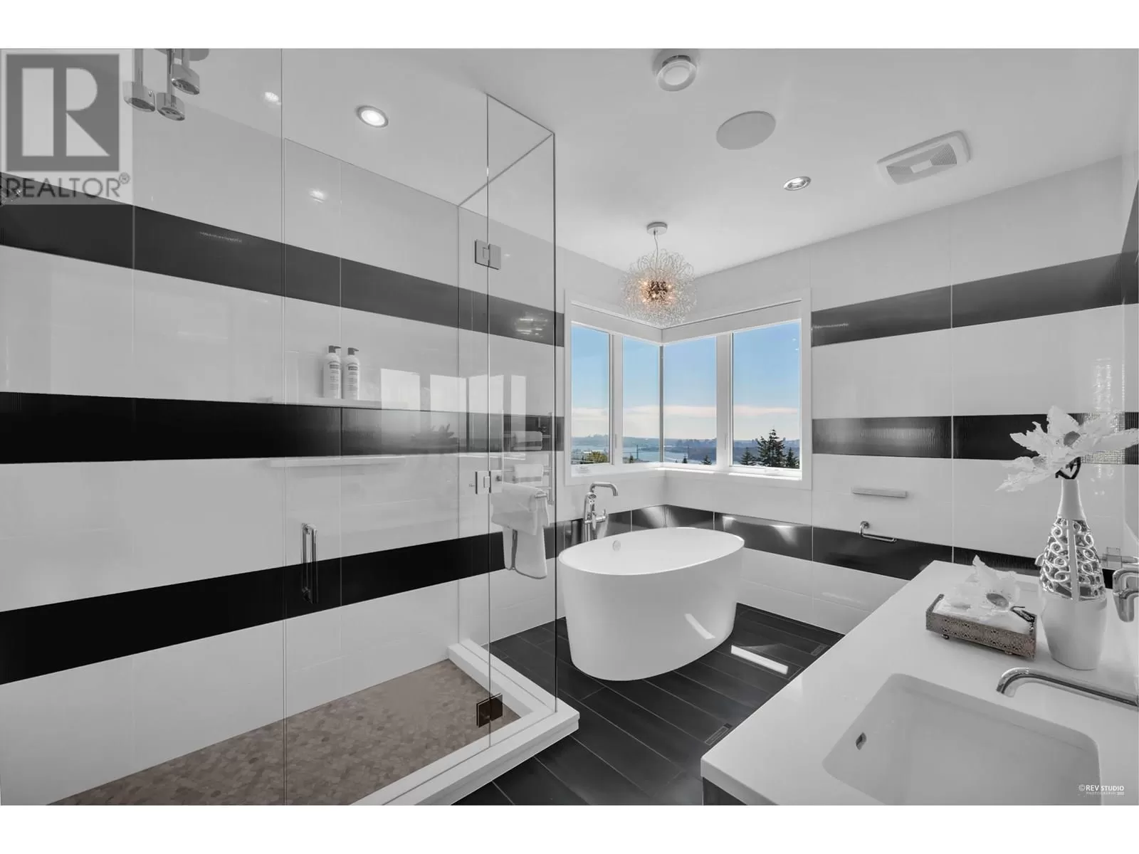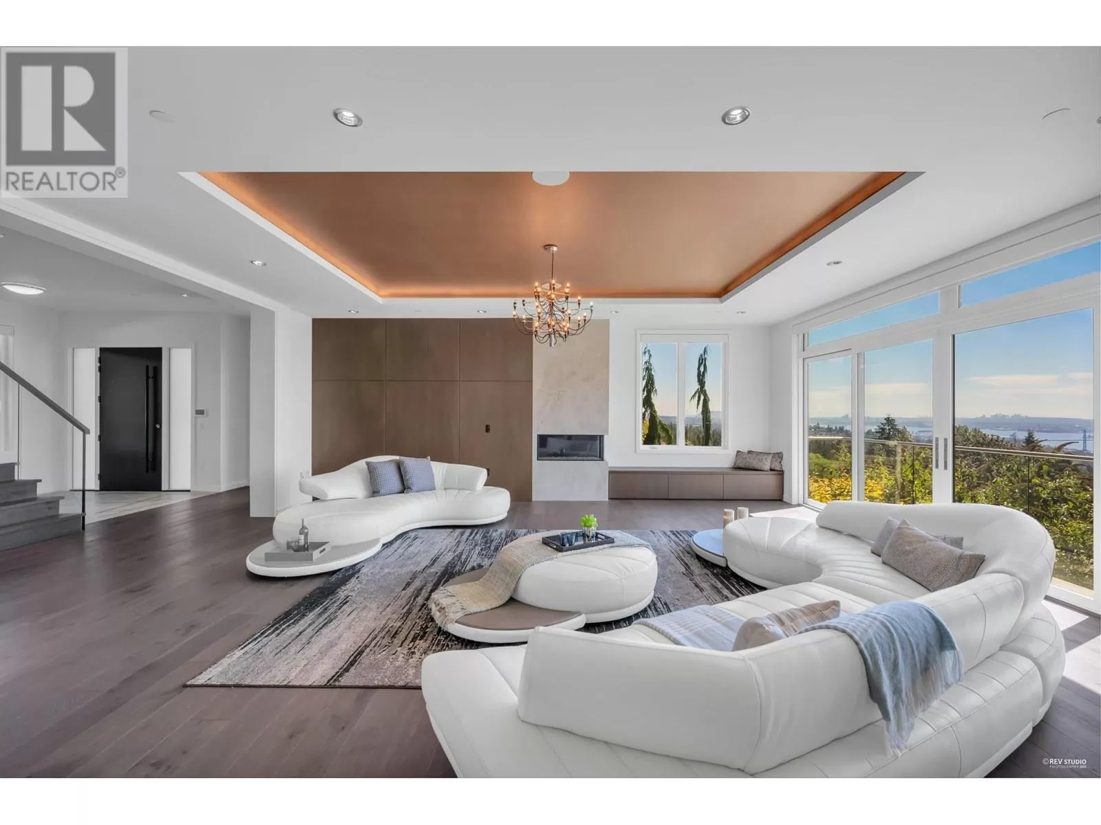 Introducing Amber Rise Estates, this elegant residence is inspired by the legacy of Gianni Versace, offering beautiful ocean and city views. The courtyard fountains, signature lights, and Medusa tiles create an iconic Versace look. High-end finishes are featured throughout, including magnificent formal rooms, spacious living and family rooms, and an office. The gourmet chef's kitchen boasts a marble island, Miele appliances, and a wok kitchen. Upstairs, find 4 ensuite bedrooms, including a master with a walk-in closet and spa-like ensuite. The lower level includes a recreation room, wine cellar, media room, and 2 guest ensuite bedrooms. Additional features include a Control4 system, A/C, radiant heat, and a security system. This one-of-a-kind estate is conveniently located near top-ranking schools. Open House Saturday, Oct 4, 2-4pm (id:27476)