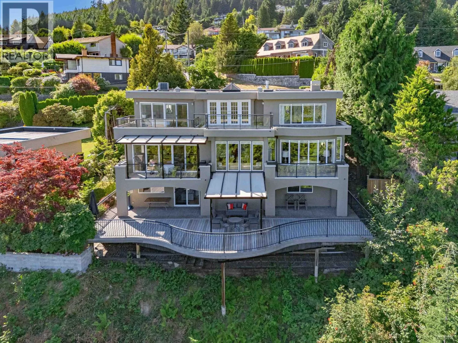 This magnificent residence embodies timeless elegance and enduring charm, offering an expansive and brilliantly conceived layout of approx. 5,000 sqft across three levels, all enhanced by sweeping city, ocean and mountain views. The main floor is thoughtfully designed for both relaxed family living and grand entertaining, with floor-to-ceiling windows that frame the breathtaking scenery while bathing the interiors in natural light. Upstairs, four generously sized bedrooms each enjoy a private balcony, inviting residents to revel in the surrounding beauty. Include primary suite featuring a spa-inspired ensuite & a spacious walk-in closet. The lower level hosts a fully self-contained legal suite, providing exceptional privacy and versatility, ideal for extended family, or as a valuable mortgage helper. Perfectly blending sophistication, comfort, and the majesty of its natural setting, this home offers a lifestyle of unmatched refinement. Open House Oct 5, Sunday 2-4pm (id:27476)