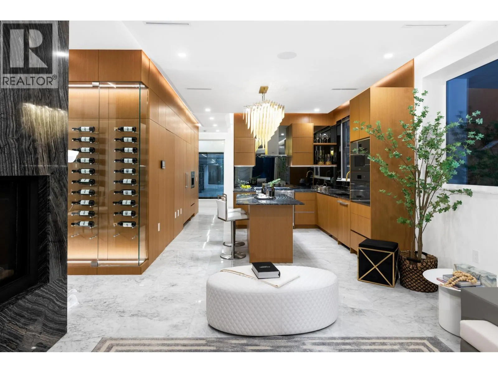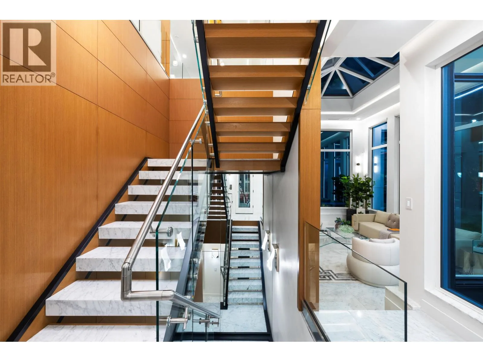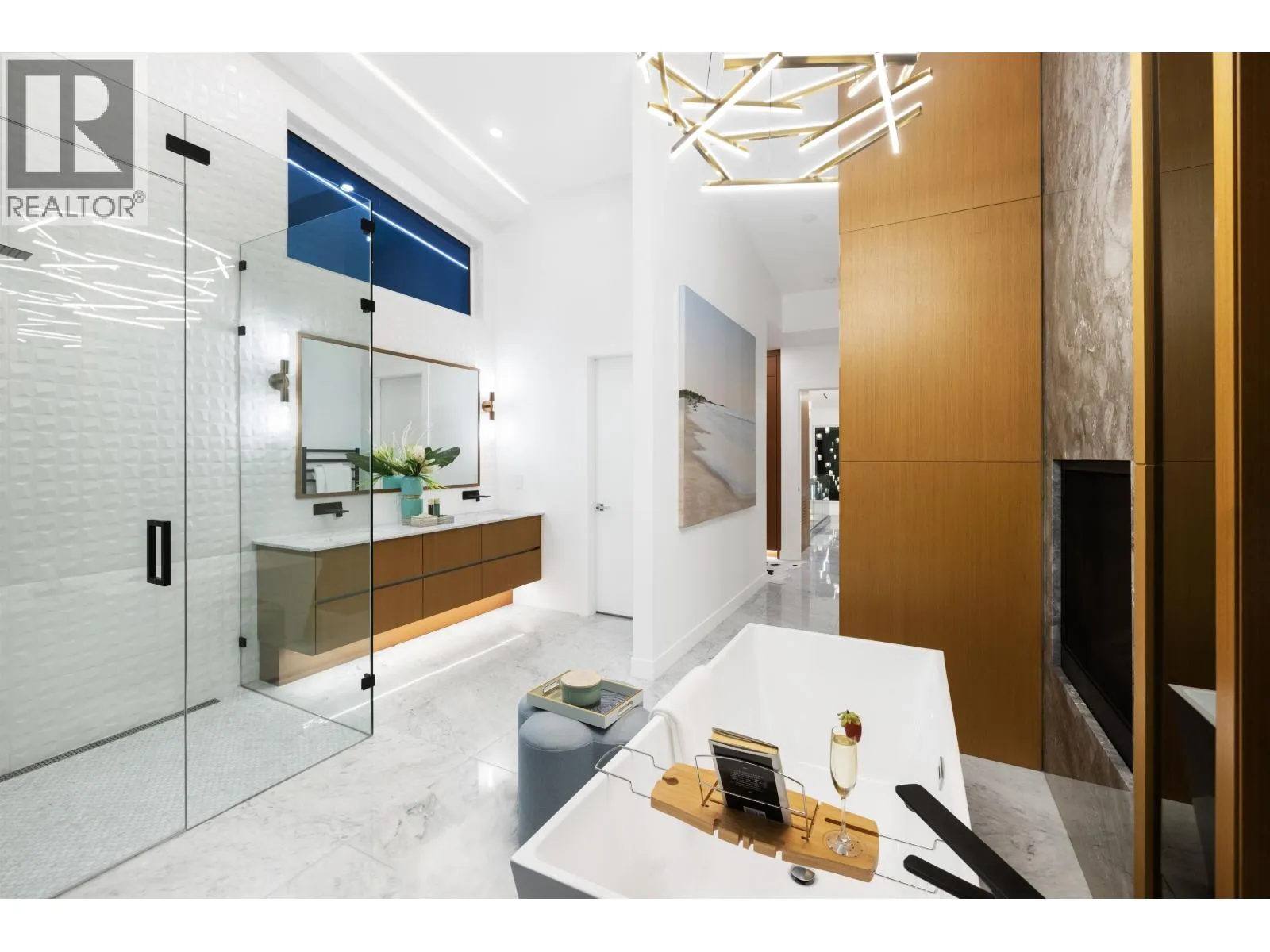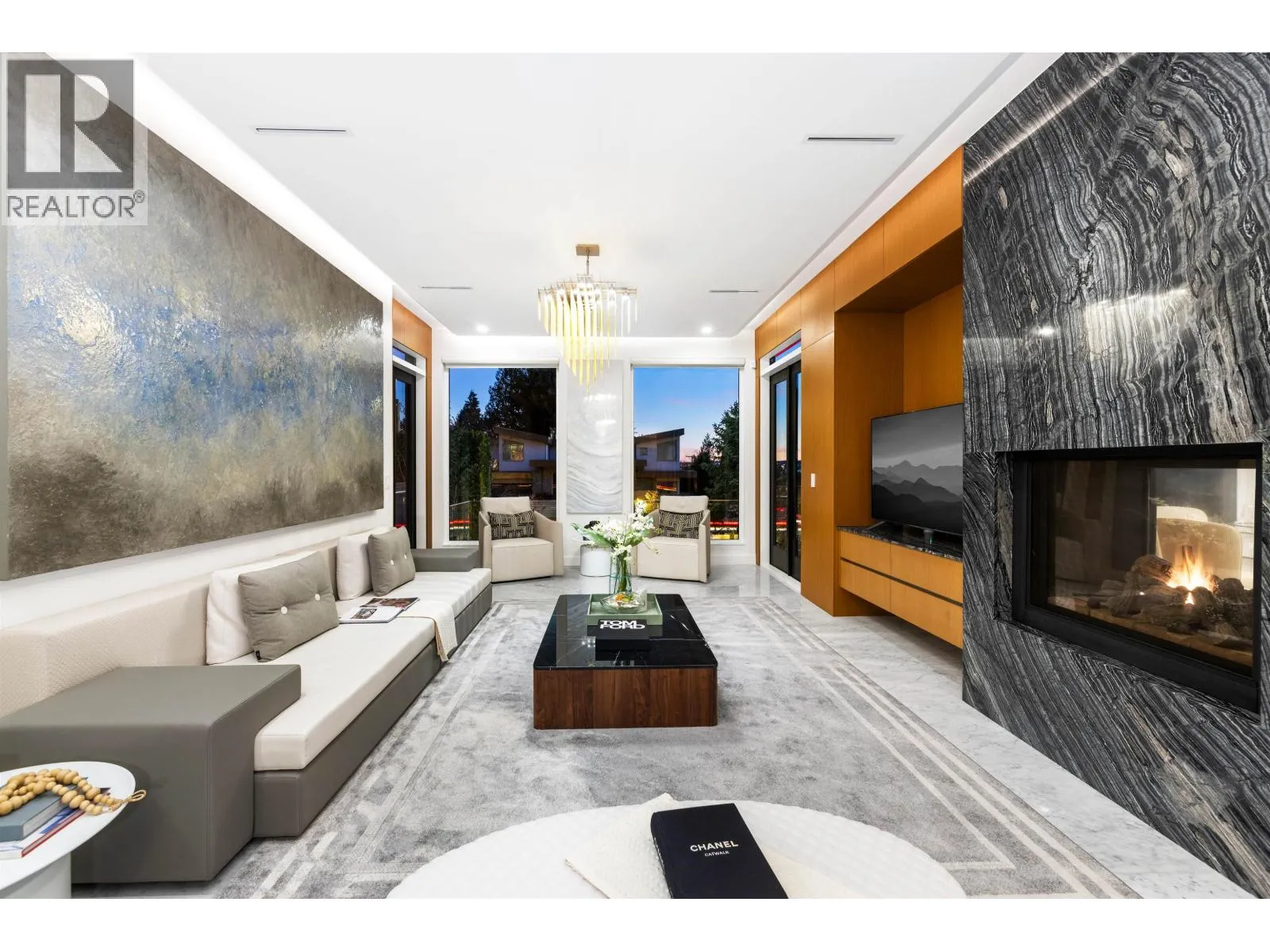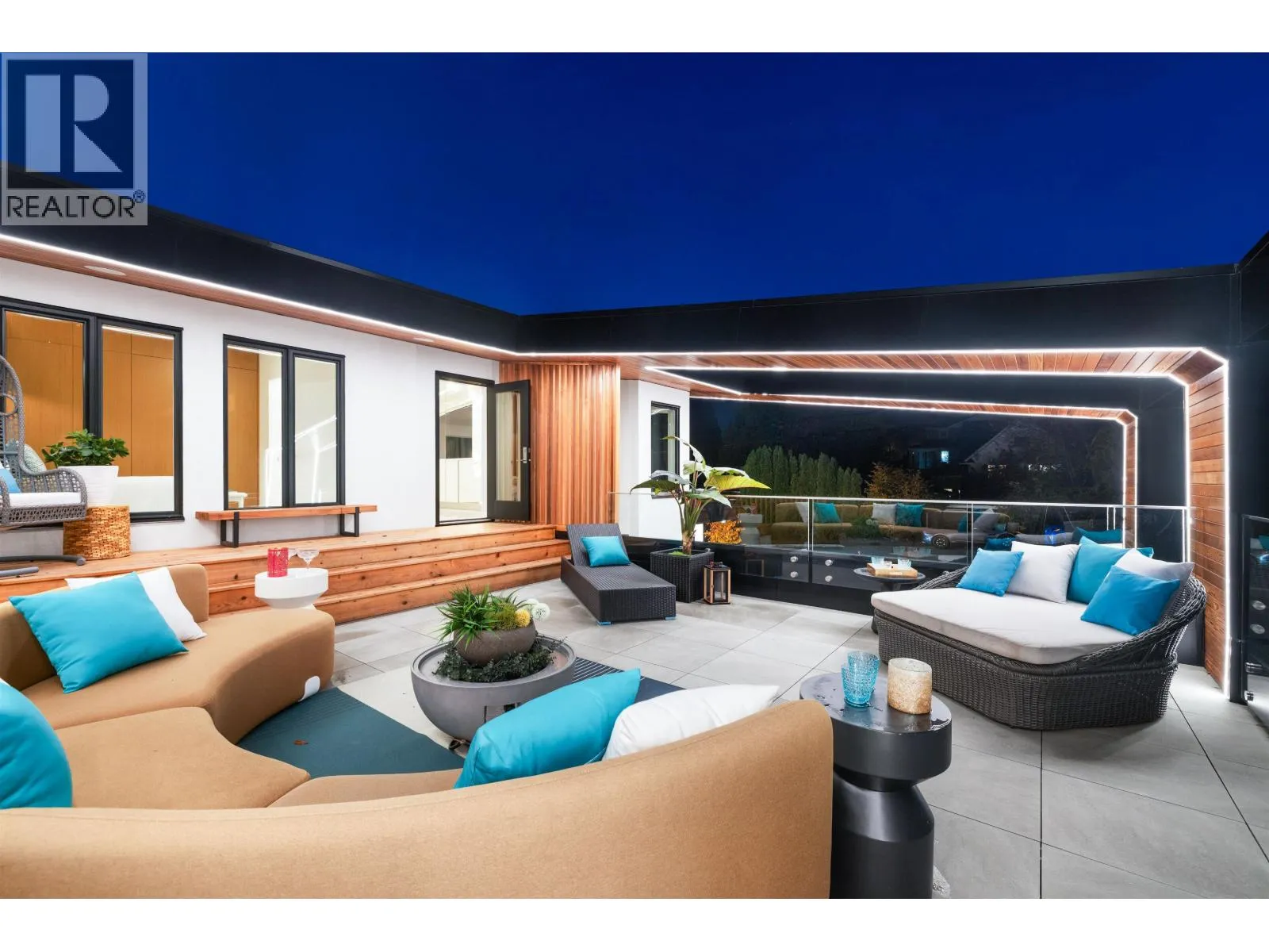 A Prestigious Dundarave Landmark! This luxurious David Christopher-designed residence offers over 5,200 sq. ft. of refined living space on a prominent 8,580 sq. ft. corner lot. Defined by architectural elegance, the home features LED-lit archways, expansive walls of glass. The main level showcases exquisite marble flooring, a grand living room with soaring double-height ceilings, and a gourmet kitchen fully outfitted with MIELE appliances. Upstairs features three ensuite bedrooms with a stunning primary suite. The lower level provides two additional ensuites, a theatre, fitness studio, and rec room opening to a waterfall retreat. Resort-style outdoor living is complete with a two-tier hot tub, swimming pool, and expansive sundecks. Additional highlights include an elevator, A/C, double laundry, motorized shades, and more. (id:27476)