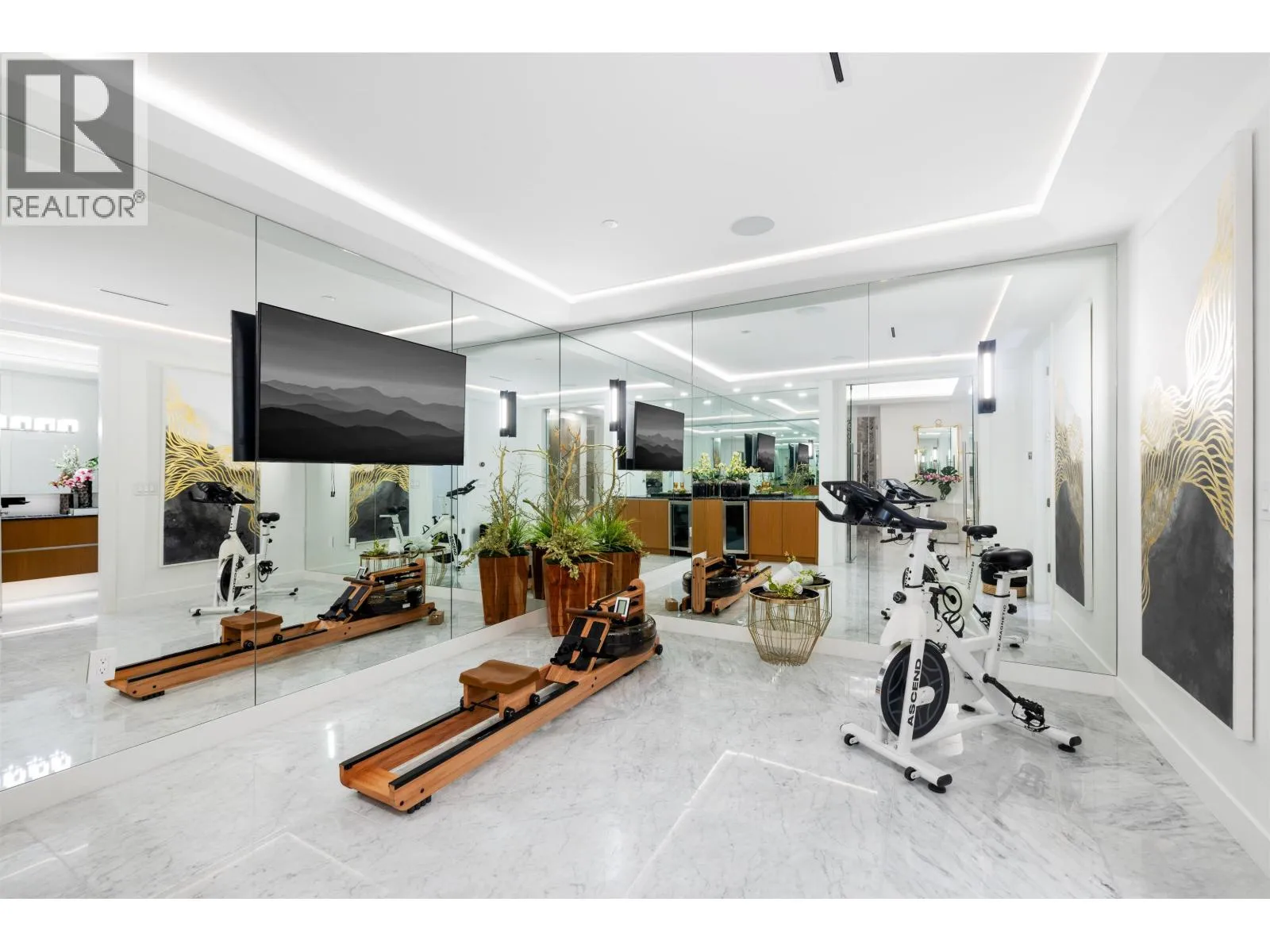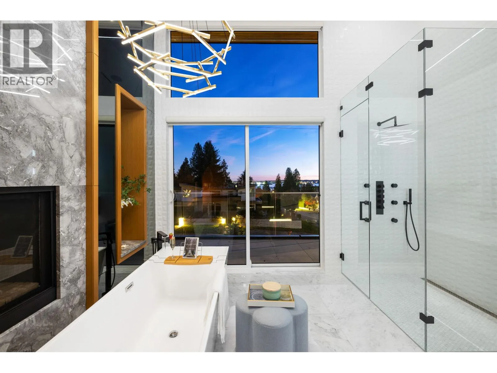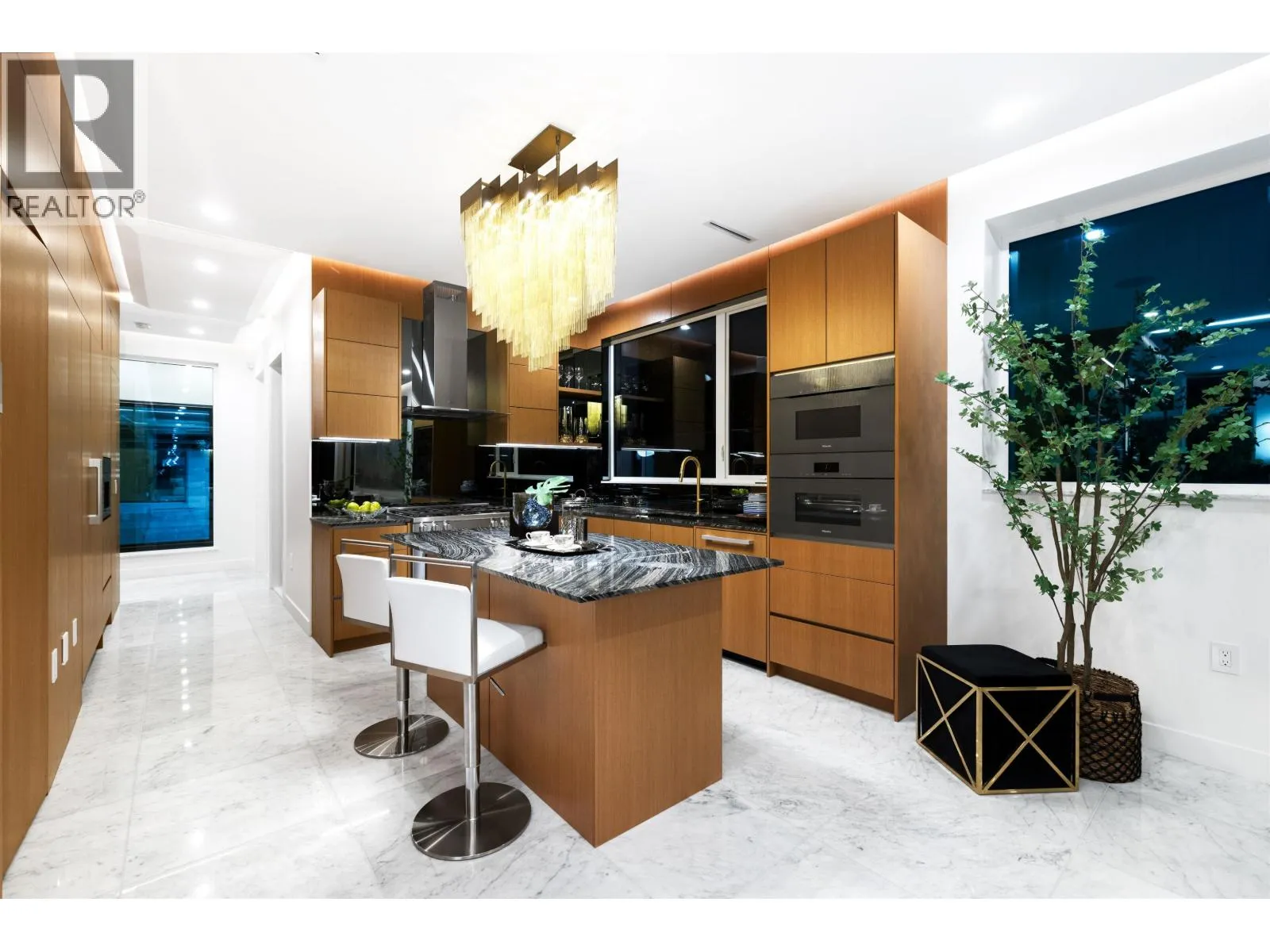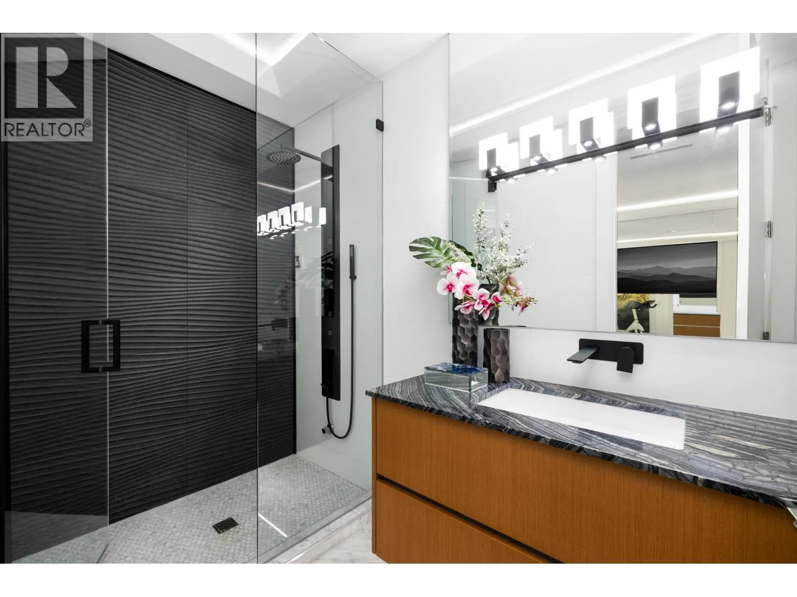 A Prestigious Dundarave Landmark! This luxurious David Christopher-designed residence offers over 5,200 sq. ft. of refined living space on a prominent 8,580 sq. ft. corner lot. Defined by architectural elegance, the home features LED-lit archways, expansive walls of glass. The main level showcases exquisite marble flooring, a grand living room with soaring double-height ceilings, and a gourmet kitchen fully outfitted with MIELE appliances. Upstairs features three ensuite bedrooms with a stunning primary suite. The lower level provides two additional ensuites, a theatre, fitness studio, and rec room opening to a waterfall retreat. Resort-style outdoor living is complete with a two-tier hot tub, swimming pool, and expansive sundecks. Additional highlights include an elevator, A/C, double laundry, motorized shades, and more. (id:27476)