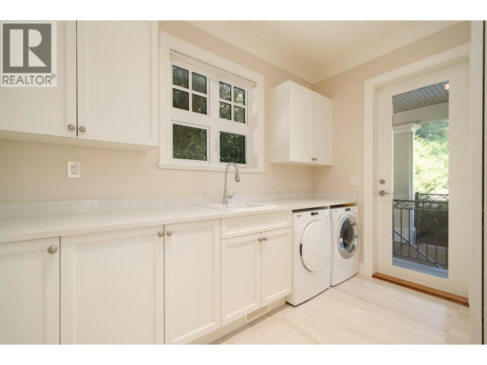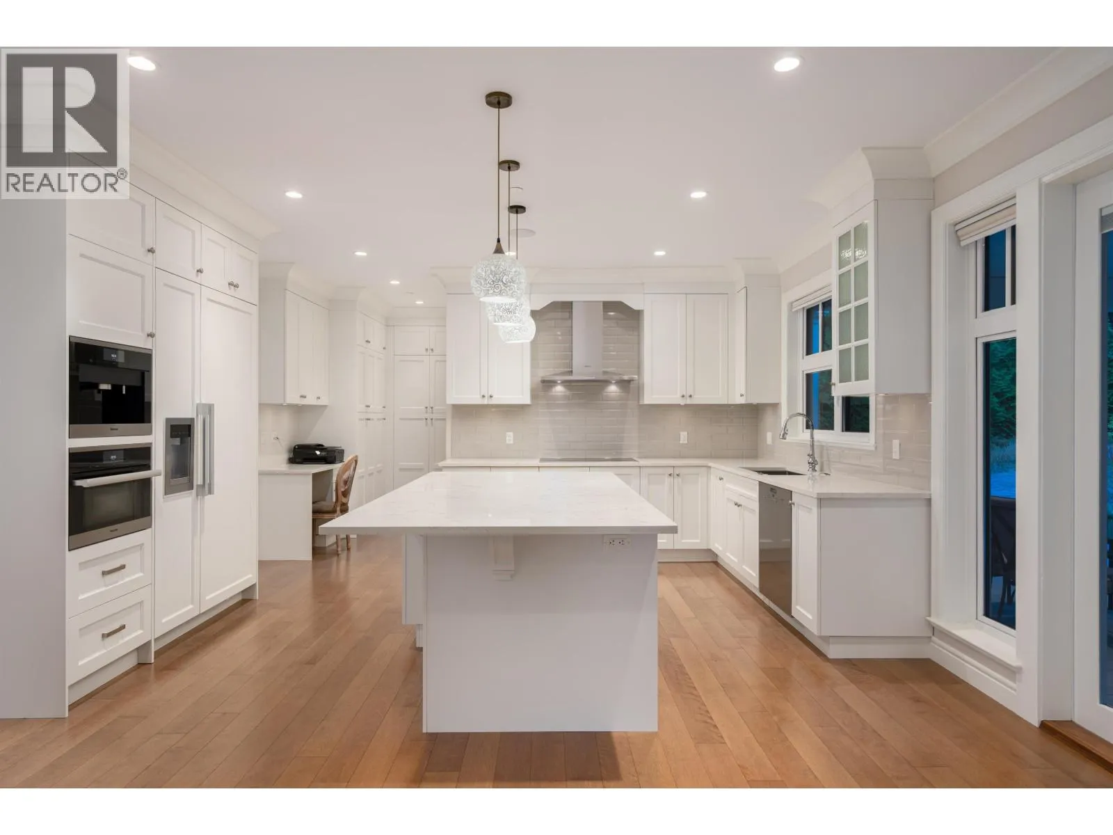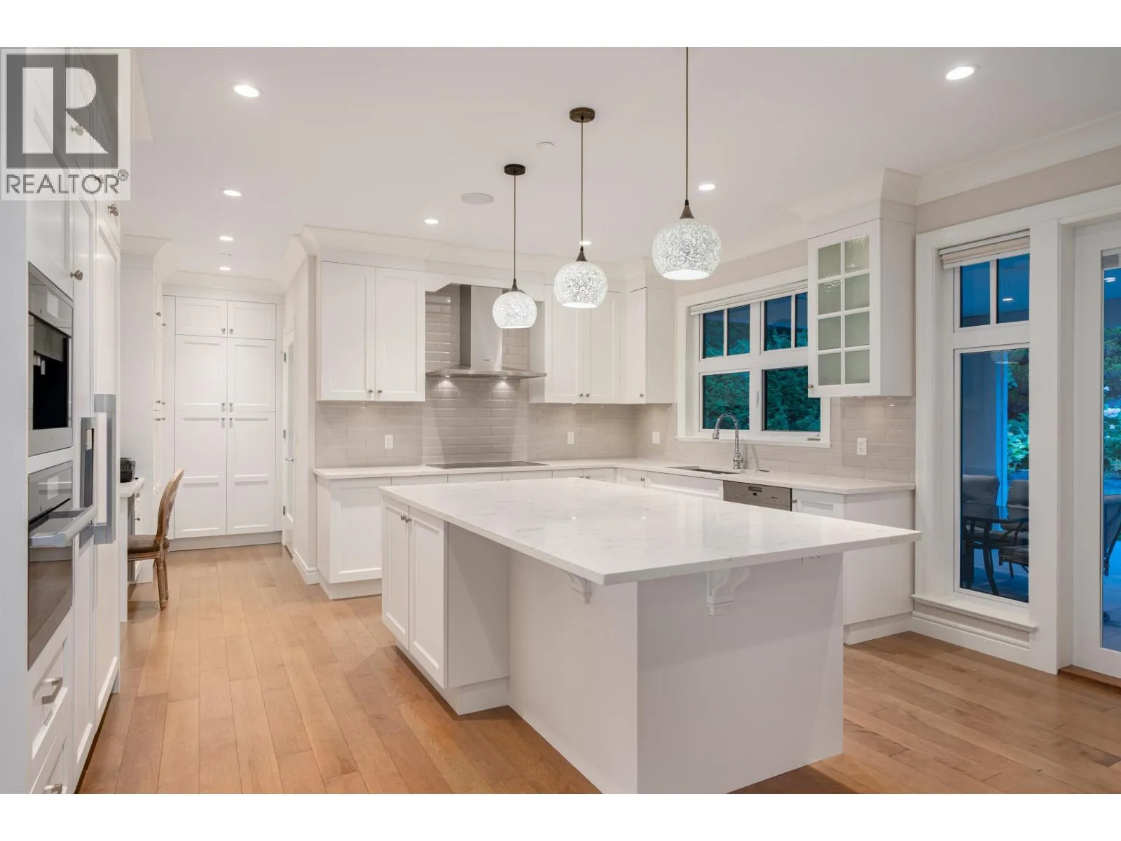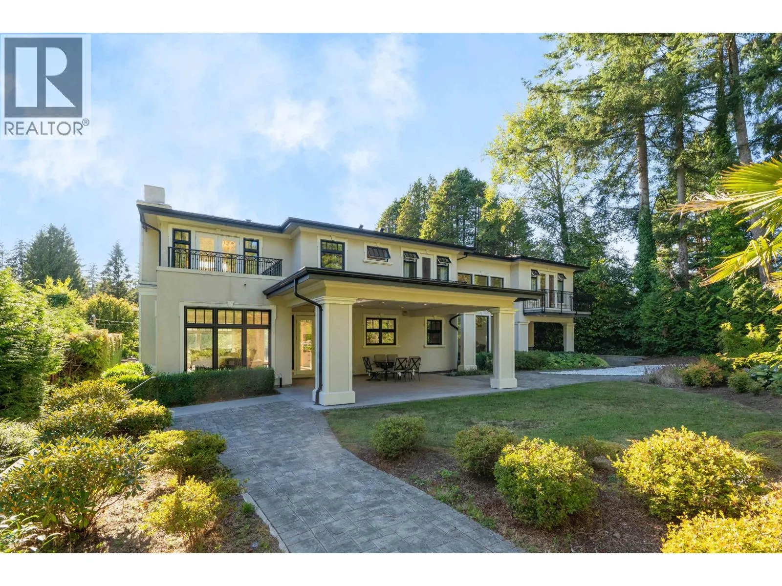 This luxurious private residence is situated on a flat 17,338 sf lot in most convenient area of West Vancouver, offering 5,800+ sqft living space over 3 levels. Featuring a 20ft grand foyer, 7 spacious bedrooms, 8 baths, elegant kitchen with painted white shaker Italian cabinetry, dry pantry, secondary kitchen, Miele appliances, wine fridge, sun-drenched family rm & more. A stunning formal dining rm with imported silk-pattern wallpaper, perfect for entertaining. Extra spacious master rm has an office nook, gorgeous ensuite & a huge walk in closet. 5 ensuite bedrooms with full of light. Downstairs features a family theatre rm, rec-room, sauna & full equipped guest suite with laundry. French-inspired design with wide plank hard flooring, stunning copper refined chandeliers, extensive millwork, marble countertops carefully curated with the desire to create a classic home. Westcot Elementary & Sentinel Secondary catchments, mins to private school, Park Royal & Seawall. (id:27476)