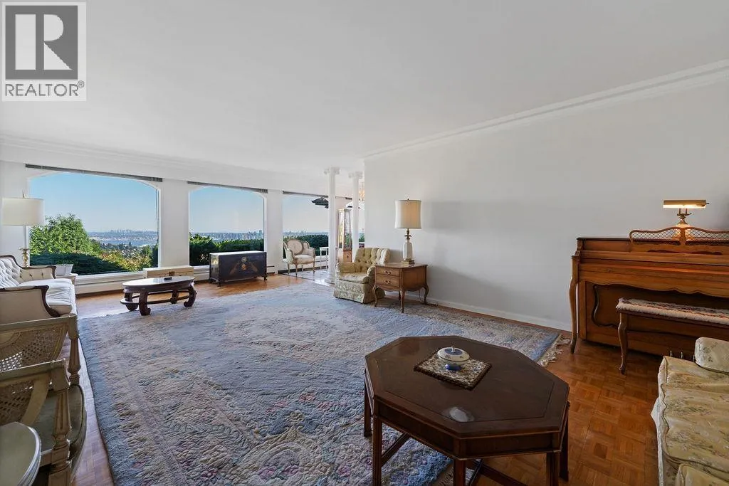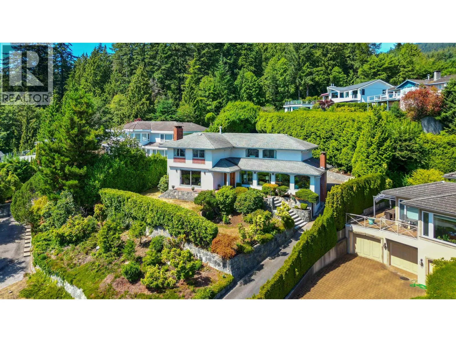 Desirable Chartwell location. Situated high on the hill with panoramic views of Water, City, Lions Gate Bridge & Mount Baker. This CHARMING Cape Cod home sits on a 13,950 square ft lot, with a 3 car garage & large parking courtyard, well maintained with 7 bedrooms and 4 bathrooms. Main floor has living room, dining room with huge windows for sight-seeing and feature hardwood flooring throughout, spacious living, dining & family room with huge windows, large kitchen, plus ensuited bedroom on the main. Upstairs has 5 bedrooms in total, incl spacious master bedroom ensuited with walk in closet. Lower level offers a huge rec.rm, wet bar, game room. Walking distance to Chartwell and Sentinel schools and Hollyburn Country Club. (id:27476)