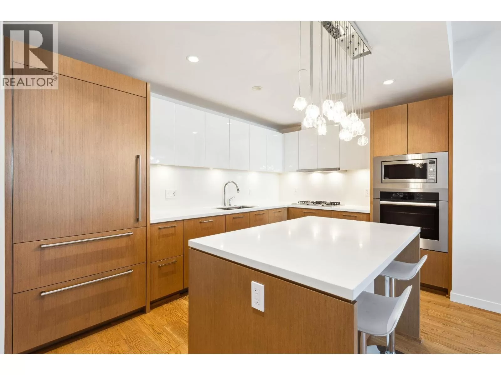 Welcome to this beautiful 2 bedroom + large Den and 2 bath at the Evelyn by the award-winning developer Onni Group. This west-facing home is spacious and features an open-concept floor plan complemented by gorgeous oak hardwood flooring which flows throughout. The kitchen is finished with marble countertops and the boasts tons of storage, a Sub-Zero fridge and a Miele appliance package. Step out onto your 186 square ft covered patio and enjoy your summer days in the sun. The master bedroom includes a walk in closet and a beautiful en-suite 4 piece bathroom. The second bedroom is a great size and has a huge den attached to it making this space perfect for working from home or a growing family. You are minutes away from Park Royal and Ambleside which has everything you need from restaurants to shopping. Transit and access to Lions Gate bridge is a stones throw away. (id:27476)