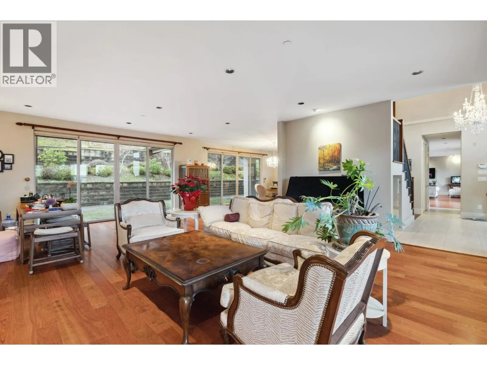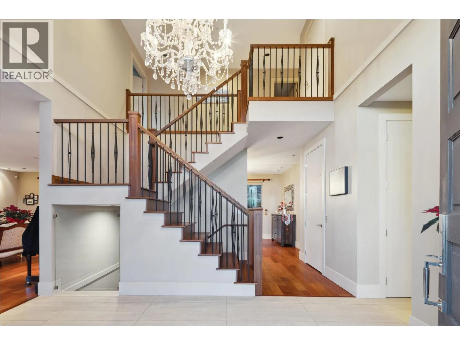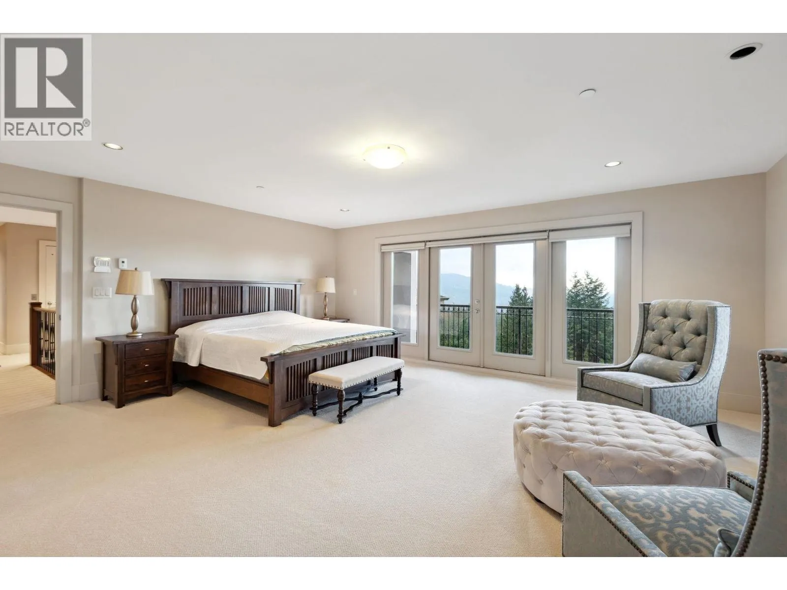 Beautiful family home with breathtaking mountain and water views. This 5-bedroom residence offers luxury and functionality, featuring a wide driveway leading to a 3-car garage. The grand entrance showcases a dazzling chandelier and an elevator to all three floors. The main level includes a stylish living room, cozy family room, elegant dining area, chef-inspired kitchen, and wok kitchen. Expansive decks provide stunning vistas. Upstairs, the primary suite boasts a spa-like en-suite, two walk-in closets, and a private deck, alongside three additional en-suite bedrooms, two with decks and walk-ins. The lower level features a media room, guest bedroom, sauna, and full bath. Perfect for families and entertaining. (id:27476)
