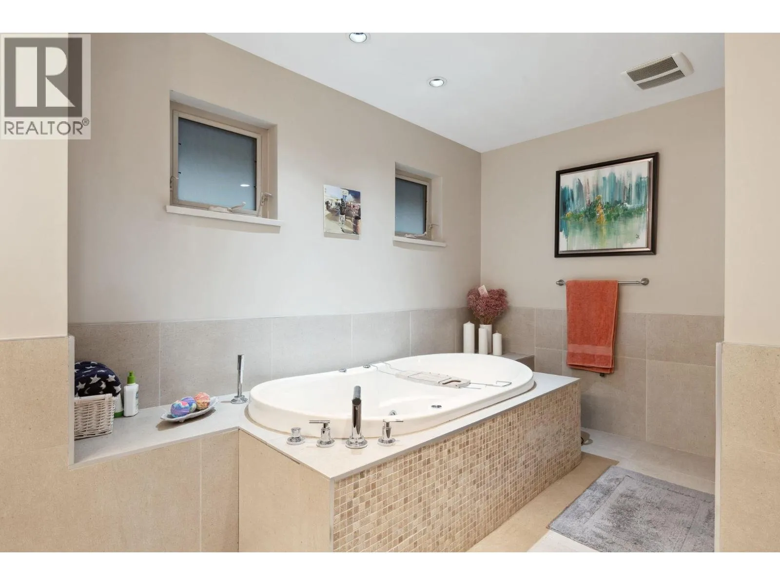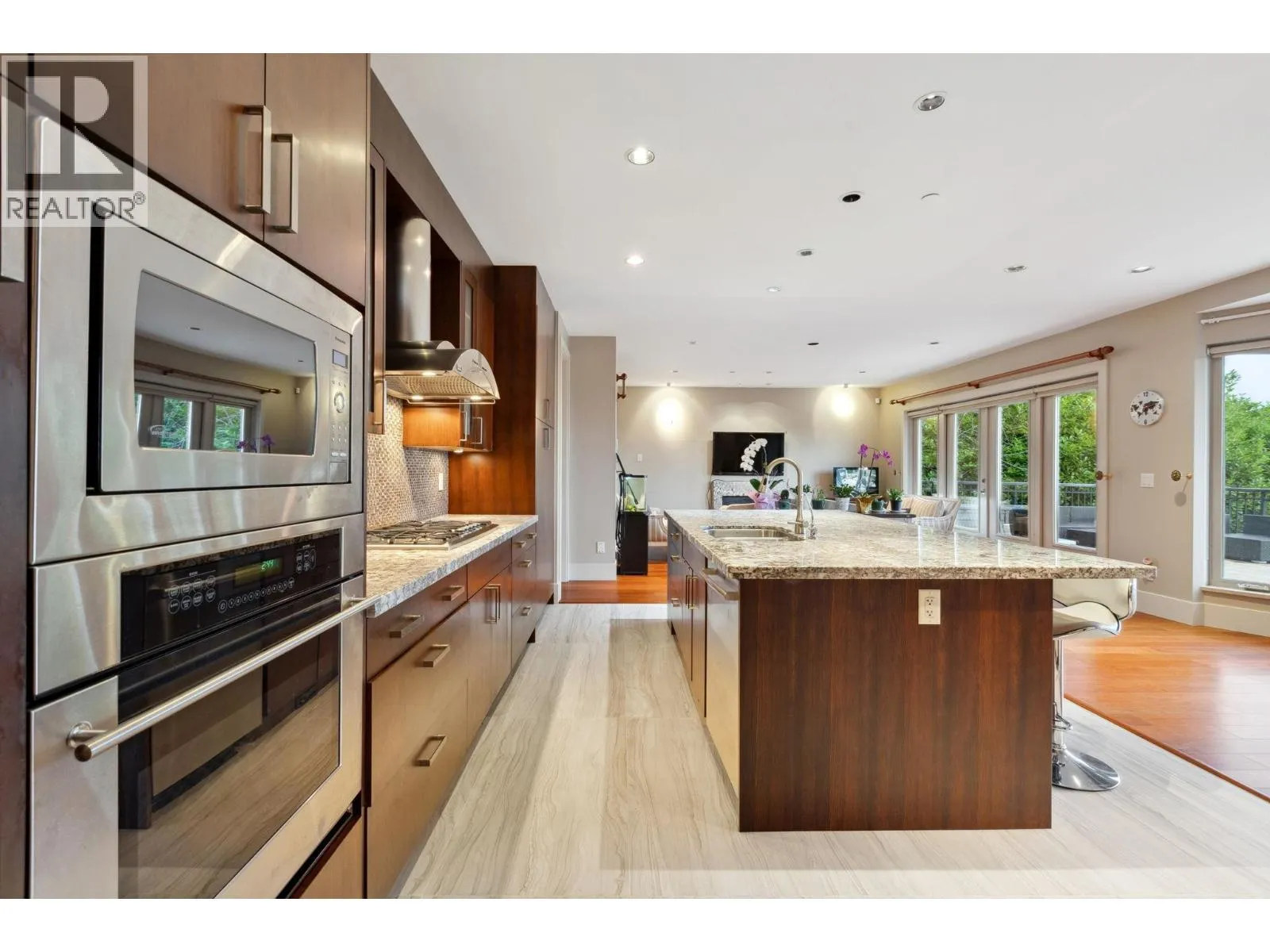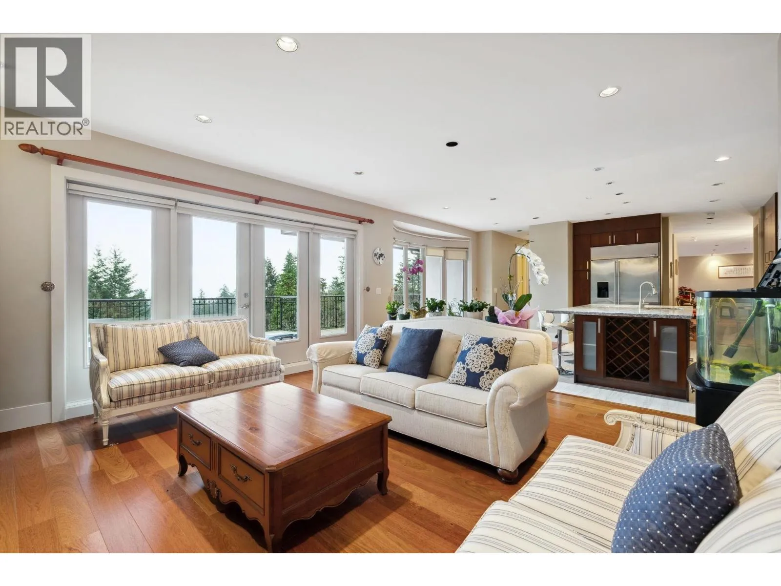 Beautiful family home with breathtaking mountain and water views. This 5-bedroom residence offers luxury and functionality, featuring a wide driveway leading to a 3-car garage. The grand entrance showcases a dazzling chandelier and an elevator to all three floors. The main level includes a stylish living room, cozy family room, elegant dining area, chef-inspired kitchen, and wok kitchen. Expansive decks provide stunning vistas. Upstairs, the primary suite boasts a spa-like en-suite, two walk-in closets, and a private deck, alongside three additional en-suite bedrooms, two with decks and walk-ins. The lower level features a media room, guest bedroom, sauna, and full bath. Perfect for families and entertaining. (id:27476)