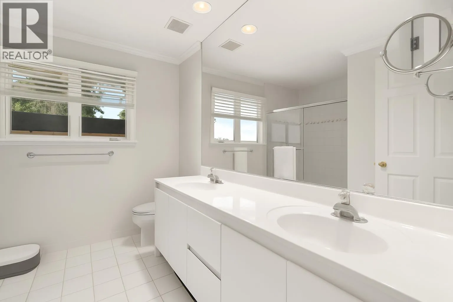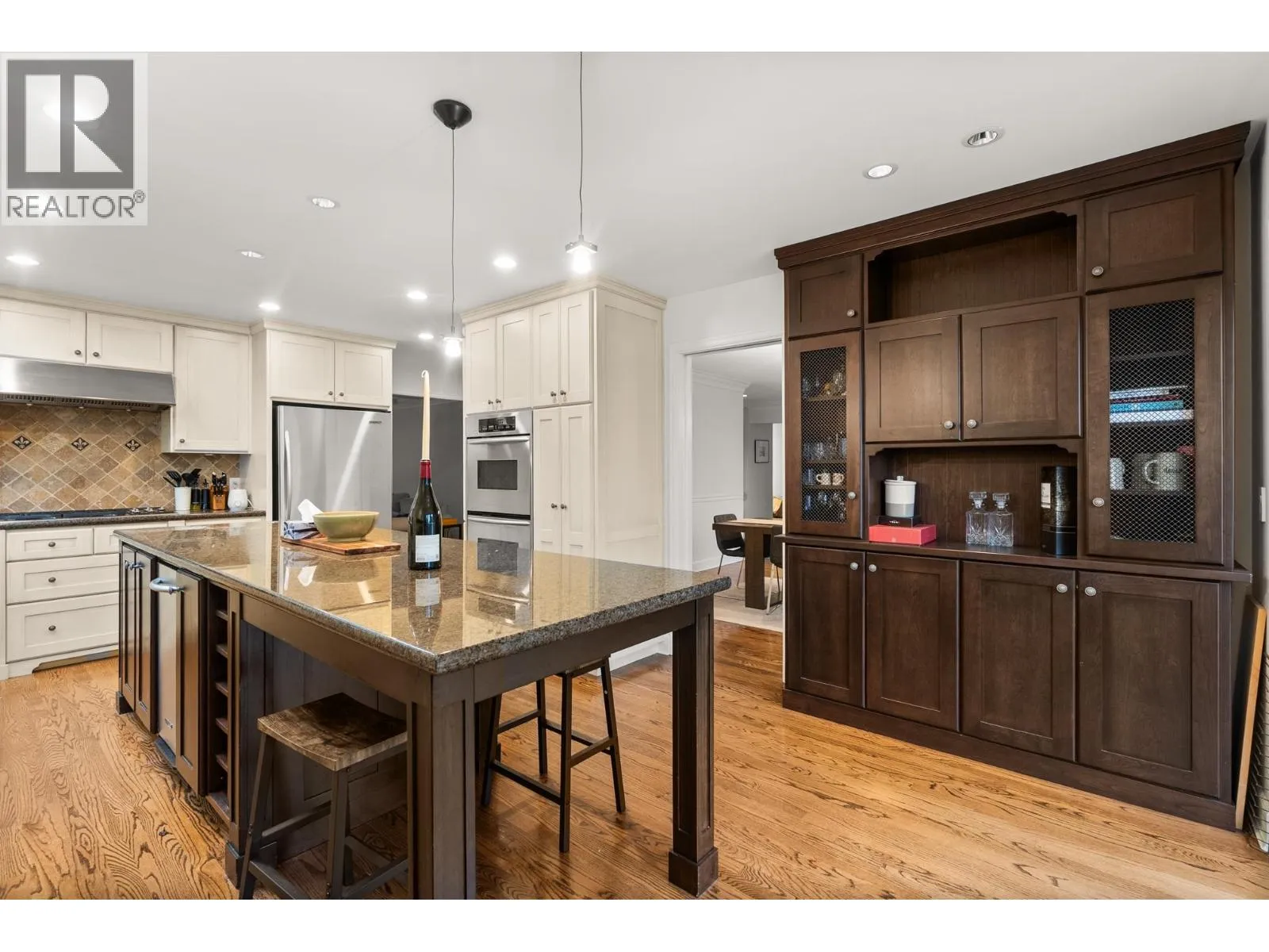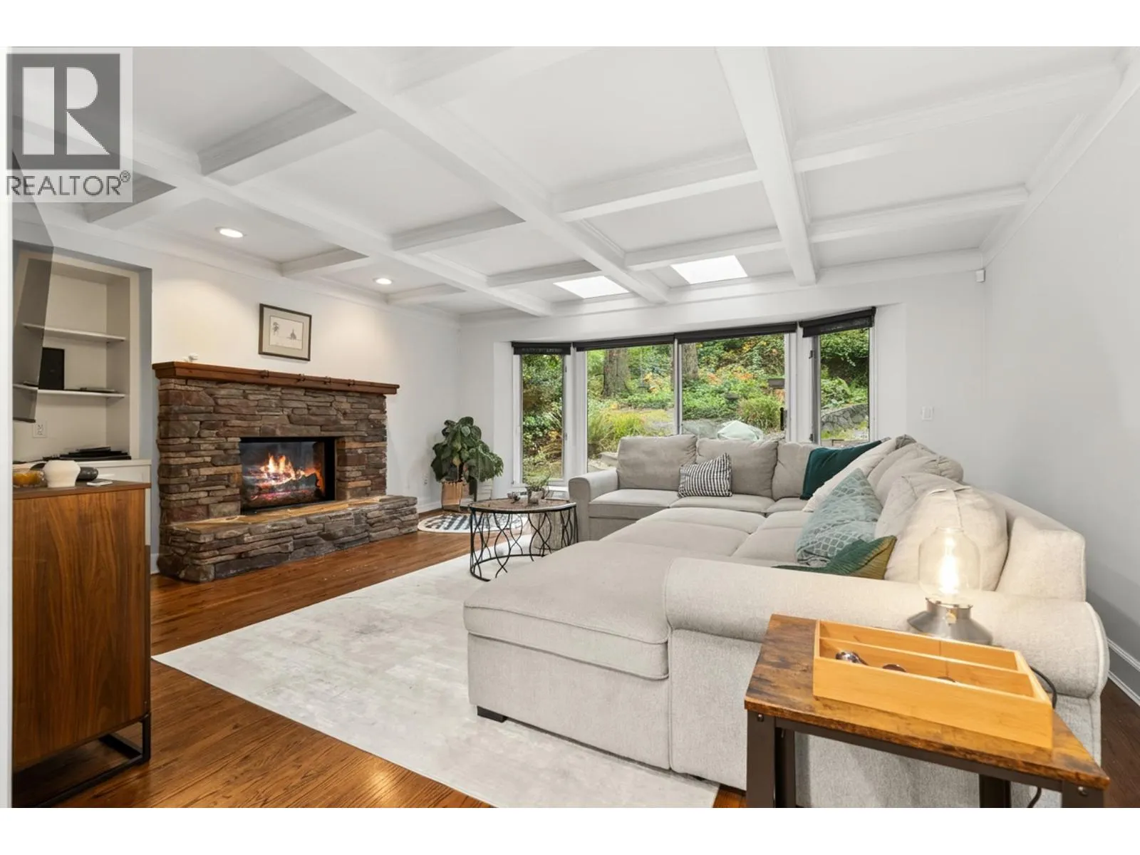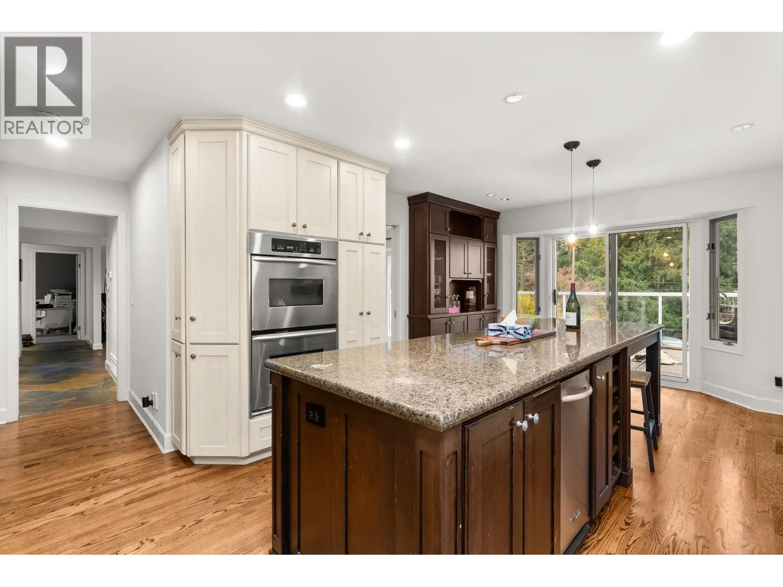 Exceptional family home, tastefully renovated in 2006, offering approx. 3,500 sqft across three levels. The traditional layout includes 4 well-appointed bedrooms upstairs, highlighted by a luxurious primary suite with a walk-in closet and elegant ensuite. Main level features a welcoming foyer, formal living and dining rooms with large windows, rich hardwood and slate flooring, a gourmet island kitchen with breakfast bar, adjoining eating area, family room with coffered ceilings, fireplace and media centre, plus a private office, rec room, and oversized double garage. French doors lead to a beautifully landscaped 1/3 acre with serene patios and lush gardens. Walk to West Bay School, McKechnie Park, and Dundarave. (id:27476)