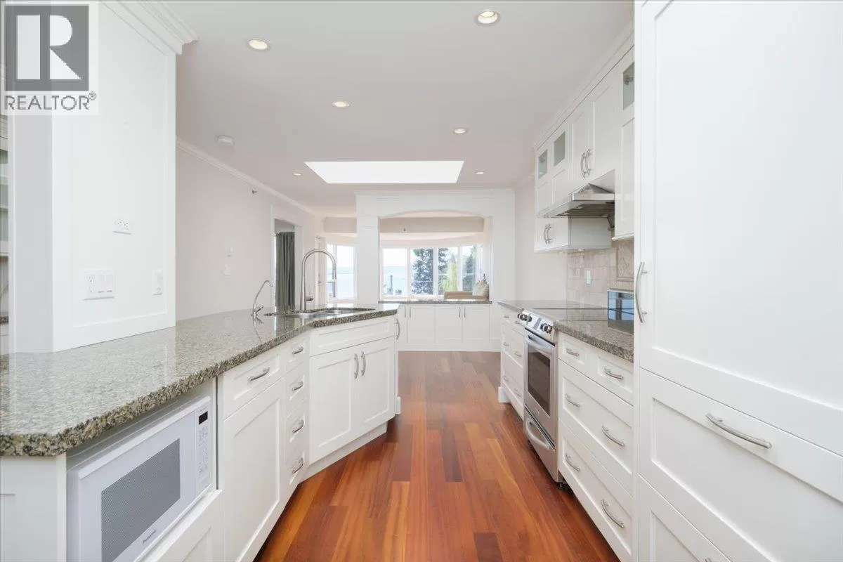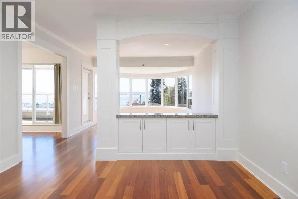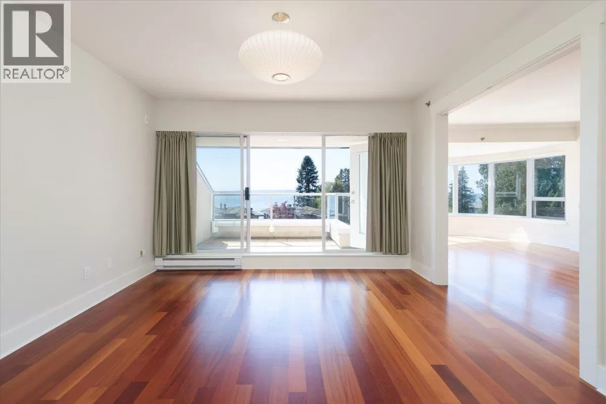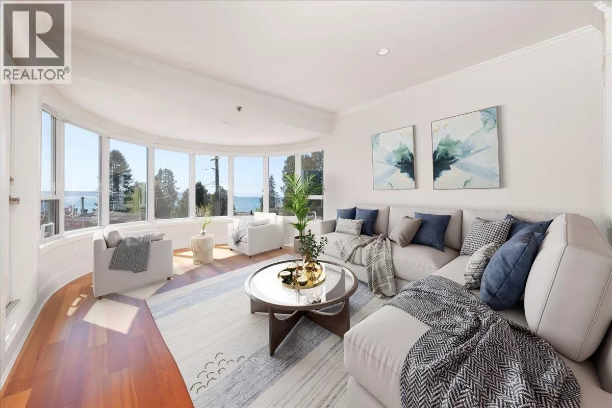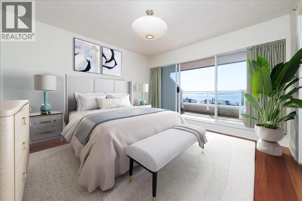 Welcome to a sophisticated seaside retreat just steps from the Seawall & the heart of Dundarave Village. This beautifully renovated 2-bedroom, 2-bath residence offers the perfect blend of refined living & West Coast ambience, framed by breathtaking ocean views & glowing sunsets. Soaring skylights & walls of south-facing windows fill the open-concept layout with natural light, while Brazilian cherry hardwood floors & crown moldings add warmth & style. The generous, sunlit kitchen is a chef´s delight-featuring granite counters, custom cabinetry, & premium appliances including a Sub-Zero fridge & Bosch dishwasher. The spacious primary suite includes his-&-hers closets and a luxurious ensuite with heated marble floors. Step out to your partially covered terrace, an idyllic spot for morning coffee or golden hour wine, set to the rhythm of the waves. This is effortless elegance by the sea (id:27476)