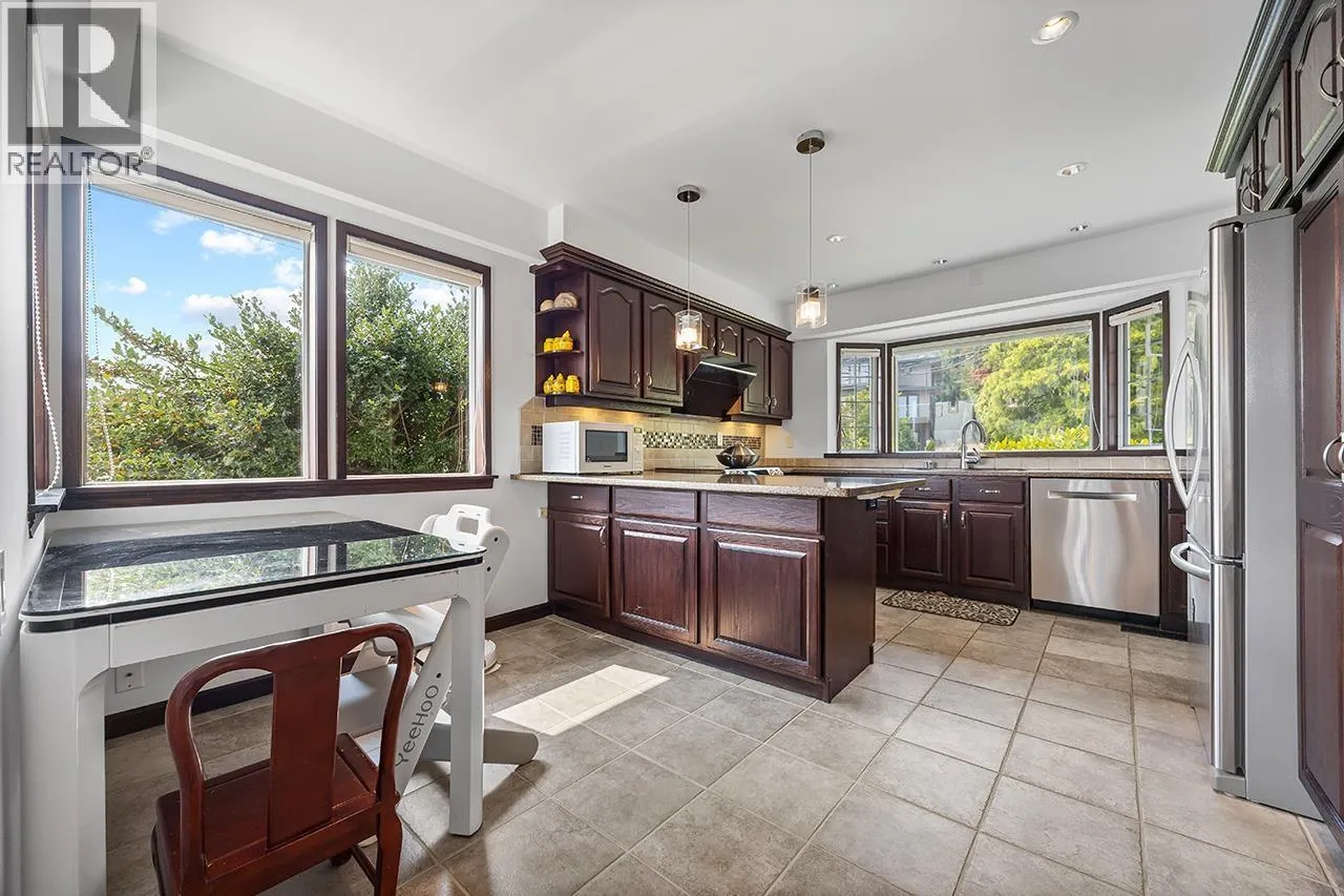 Welcome to this expansive 3,500 square ft home on a 13,255 square ft lot, offering stunning views, privacy, and flexibility. The home features a full renovation: interior and exterior repainting, new luxury hardwood flooring with soundproof subfloor, two additional bathrooms, new hot water tank, and new roof. The main level (approx. 1,800 sq ft) includes three generous bedrooms and the option to enjoy the entire home or create a separate suite for extended family, live-in support, or a mortgage helper. Expansive decks on both levels showcase panoramic vistas, while landscaped lawns and gardens add curb appeal. An attached garage and close proximity to schools, transit, shopping, golf, and recreation complete this exceptional opportunity. (id:27476)
