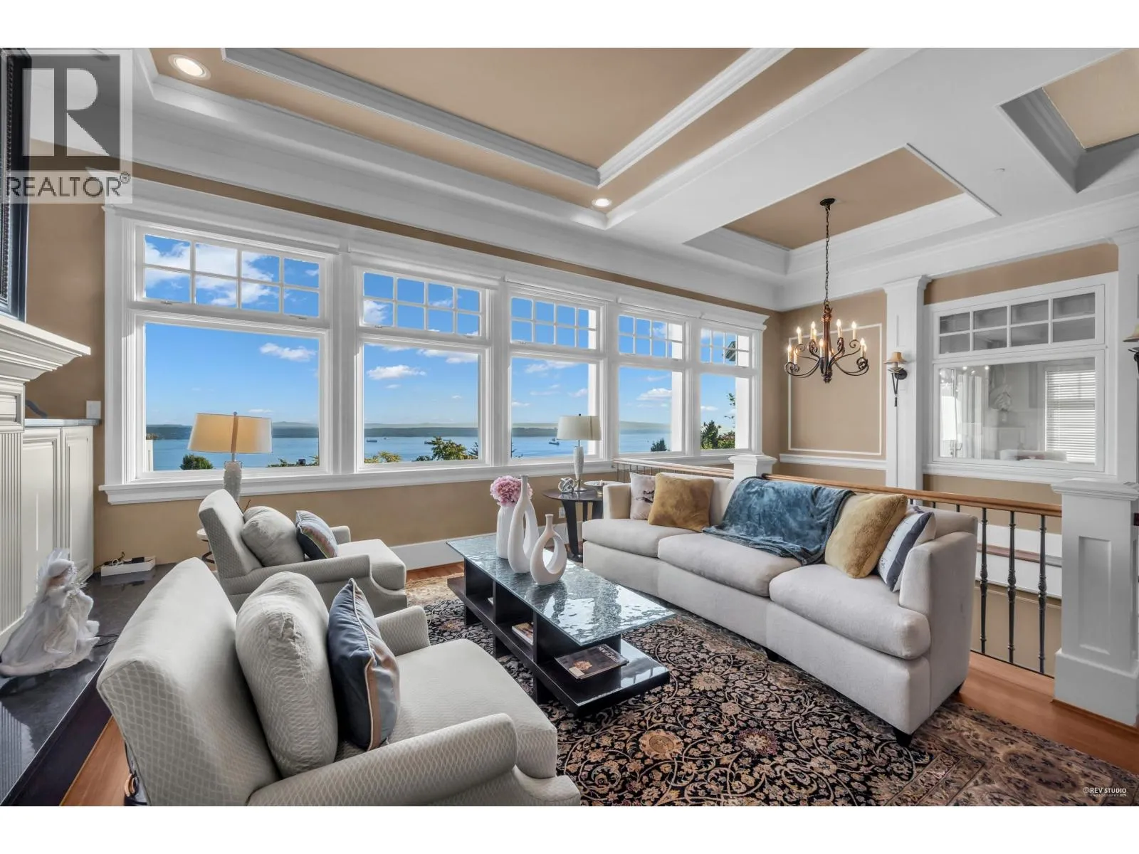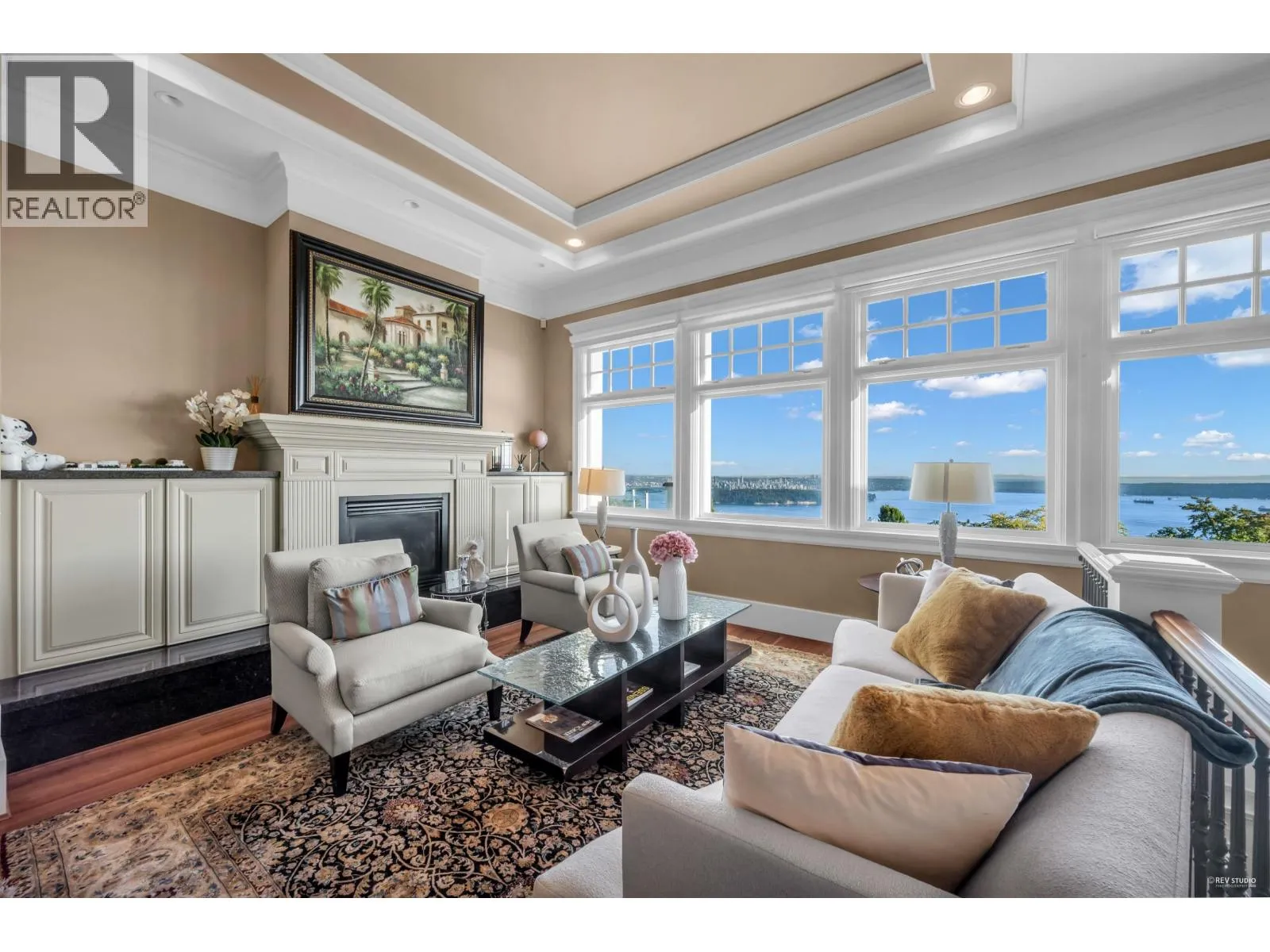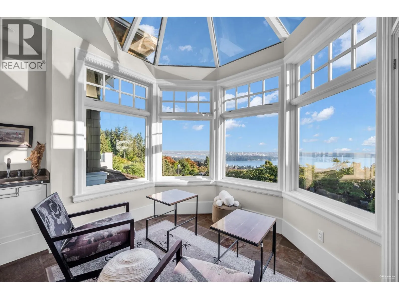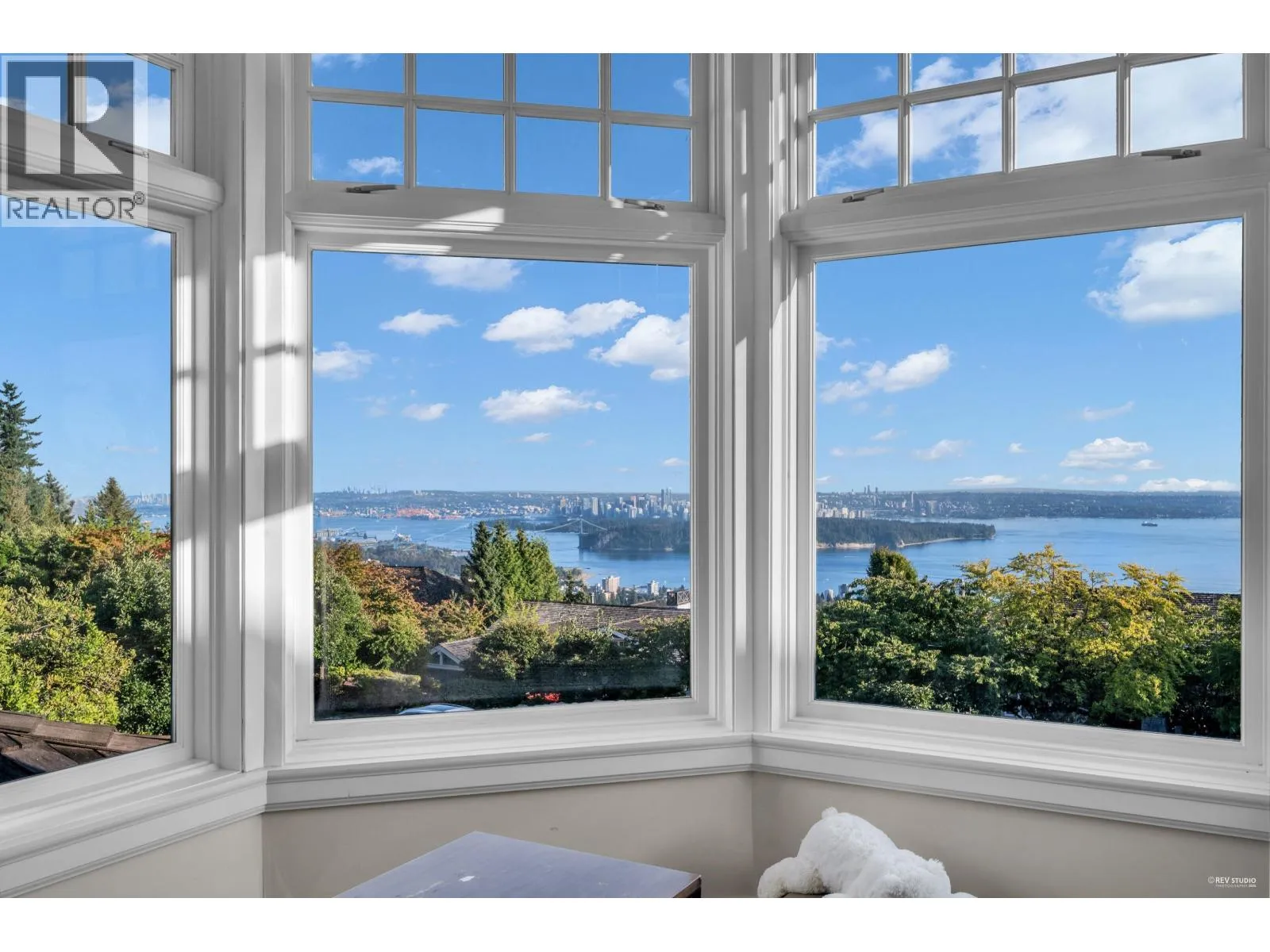Experience unparalleled, sweeping views from the Lions Gate Bridge across the Burrard Inlet to the Pacific Ocean. This exceptional custom-built residence by Somerset Homes is a masterpiece of quality and design, offering 4684 sf living space plus 1615 sf extra area on two levels. This home features three bedrooms, a media room, and a large recreation room, a solarium with view. Step out onto the expansive entertainment-sized deck and immerse yourself in the breathtaking, unobstructed southern exposure. Restoration works include: modernization of three bathrooms with intelligent toilets, the installation of brand new solid hardwood flooring on the main level and recoated floor on the above level, a new high-efficiency furnace, stove, range hood, and dishwasher in the kitchen. (id:27476)