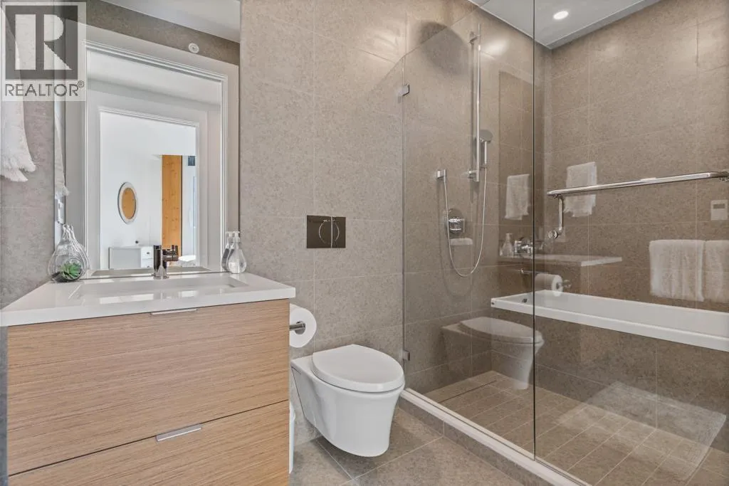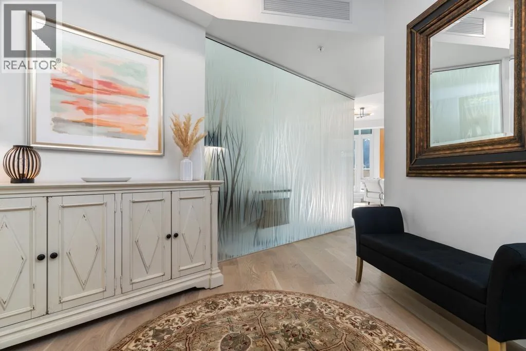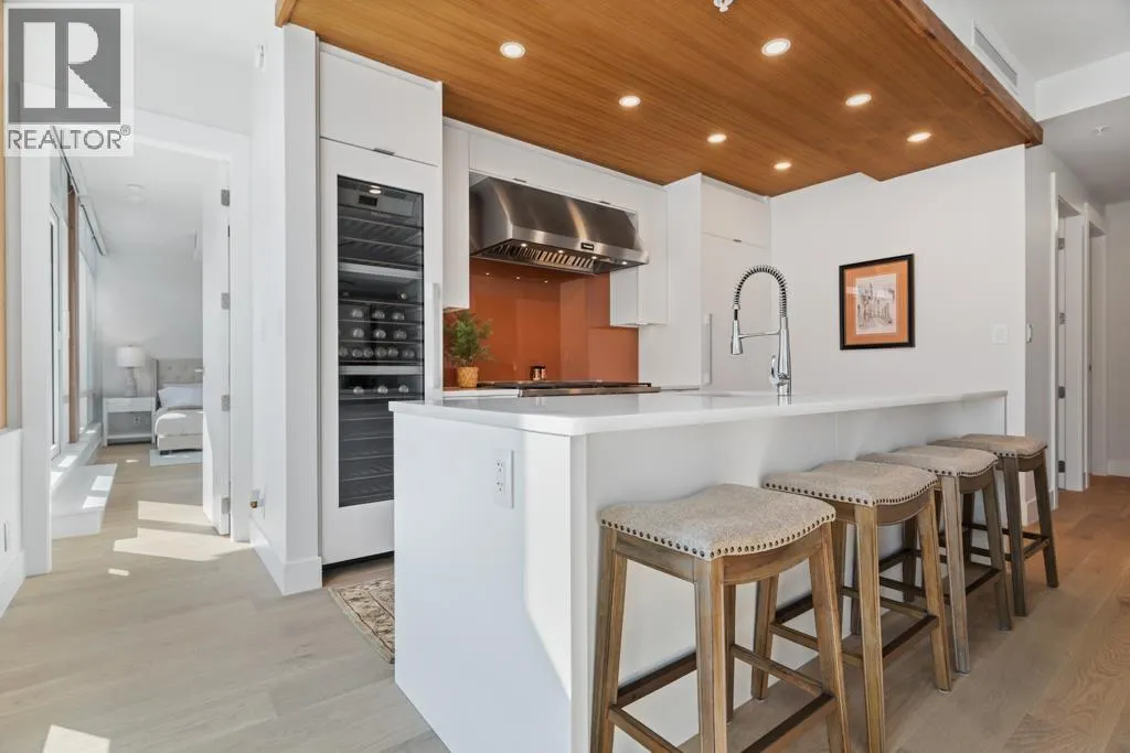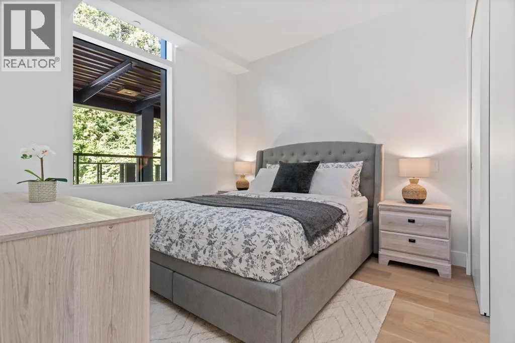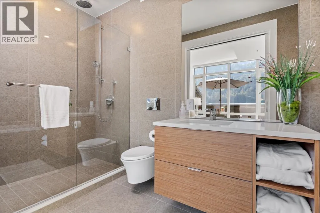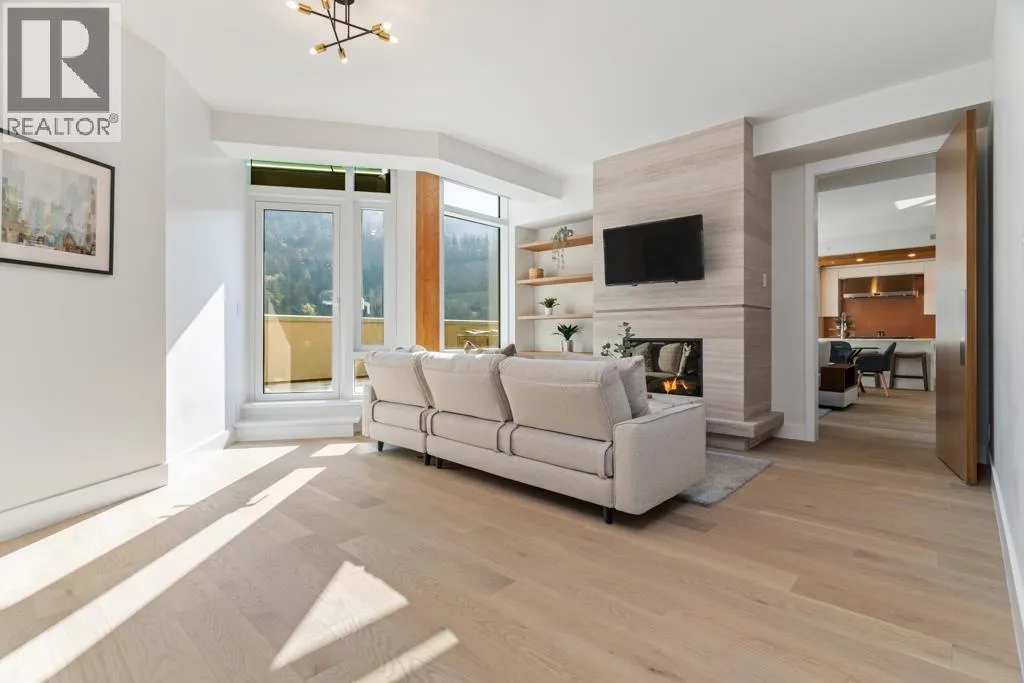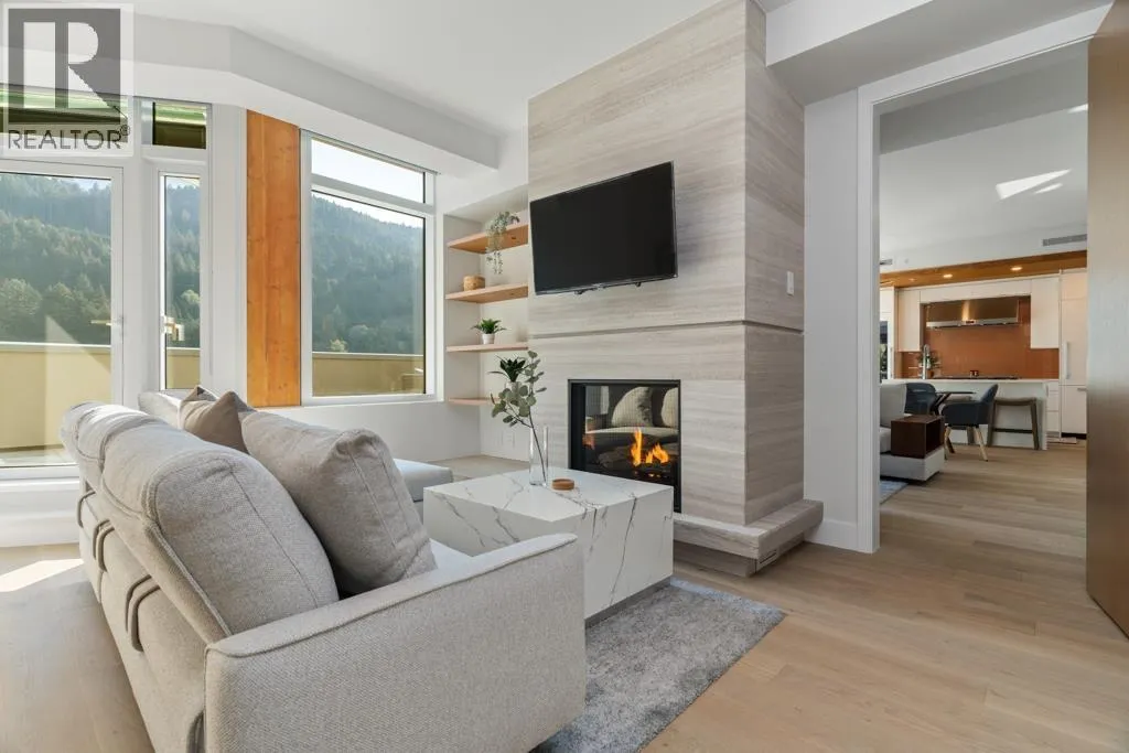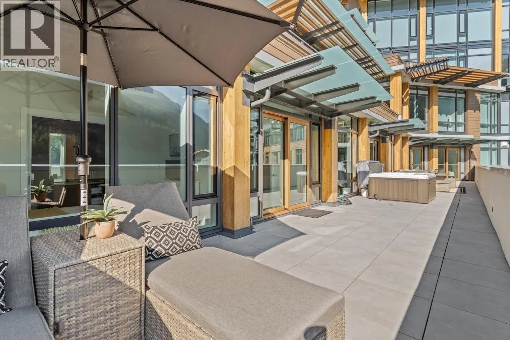 SPECTACULAR, FURNISHED 4-BEDROOM (plus office), 4-BATHROOM DELUXE SUB-PENTHOUSE at the exclusive Sanctuary! This 3,000-square-foot, single-level suite features over-height ceilings and is nestled into the mountainside with breathtaking views over the oceanside of Horseshoe Bay, Sewell's Marina, and BC Ferries. Enjoy the scenery from a massive furnished deck, complete with a hot tub and BBQ. The kitchen boasts high-end Miele appliances, including a dual-fuel range with speed oven, large fridge/freezer, wine fridge, built-in microwave, dishwasher, and a 9-foot kitchen island with stunning glass counters and comfortable seating. The layout includes two primary bedrooms with ensuites, three additional bedrooms, and an office. (id:27476)