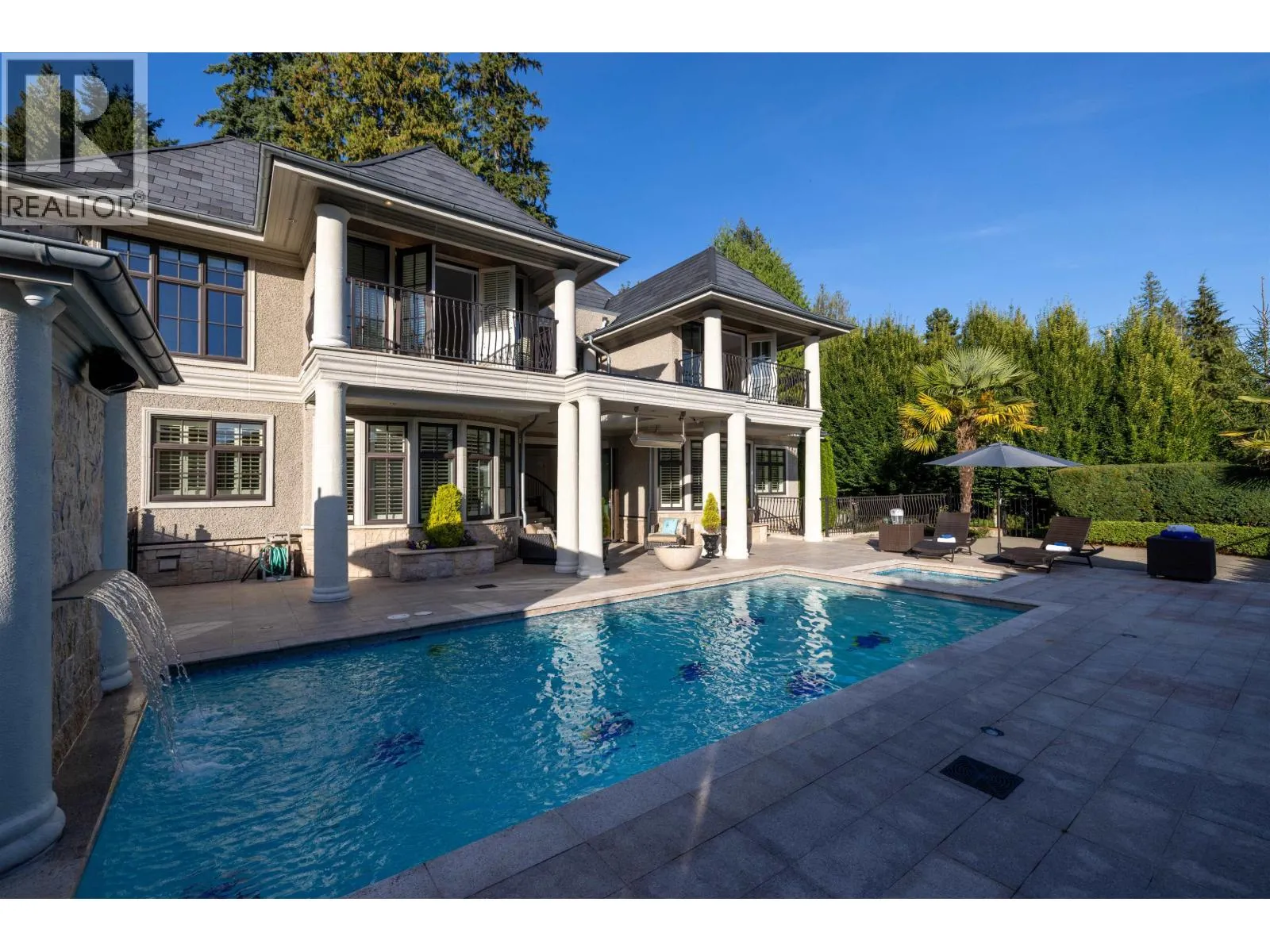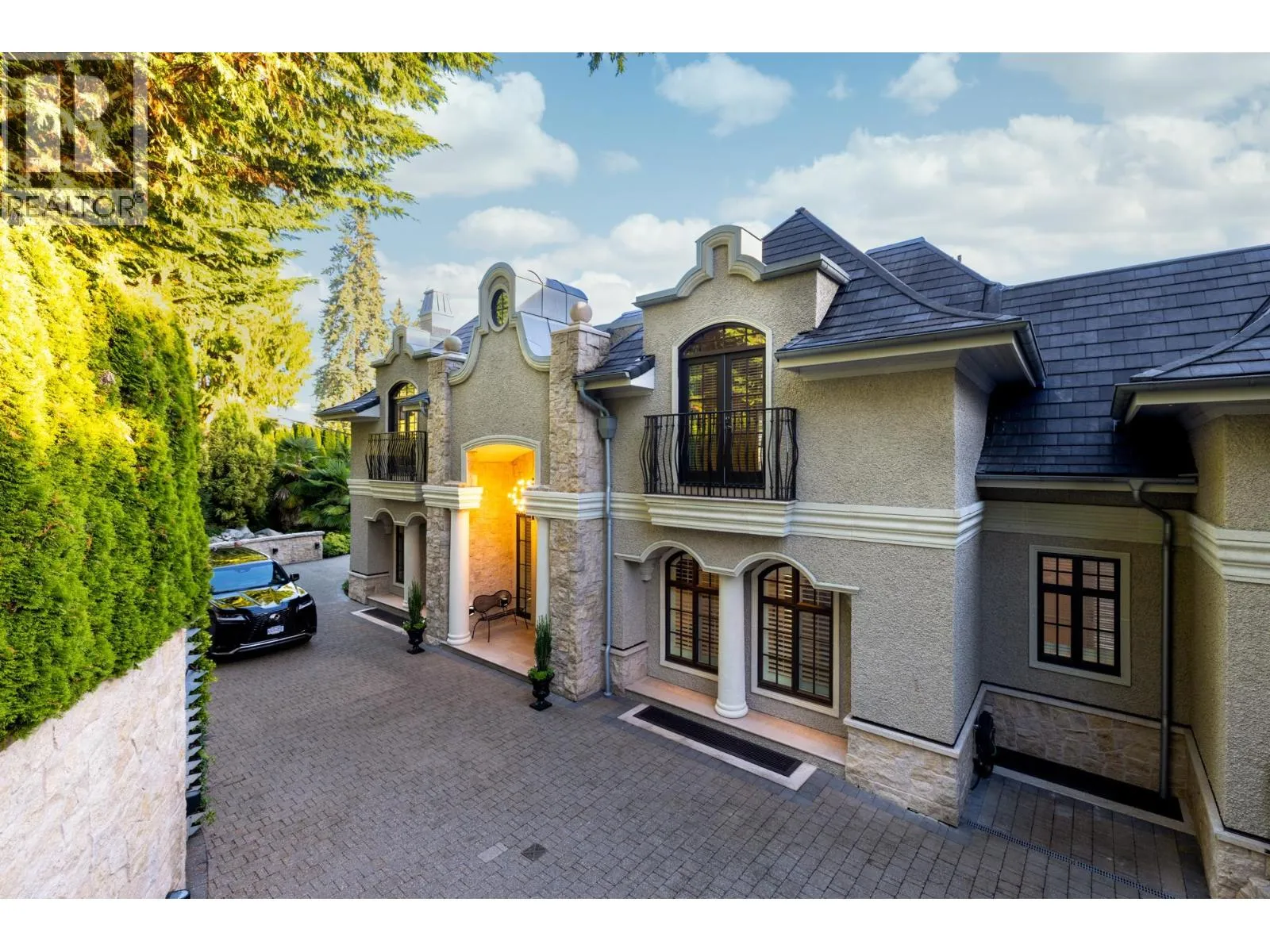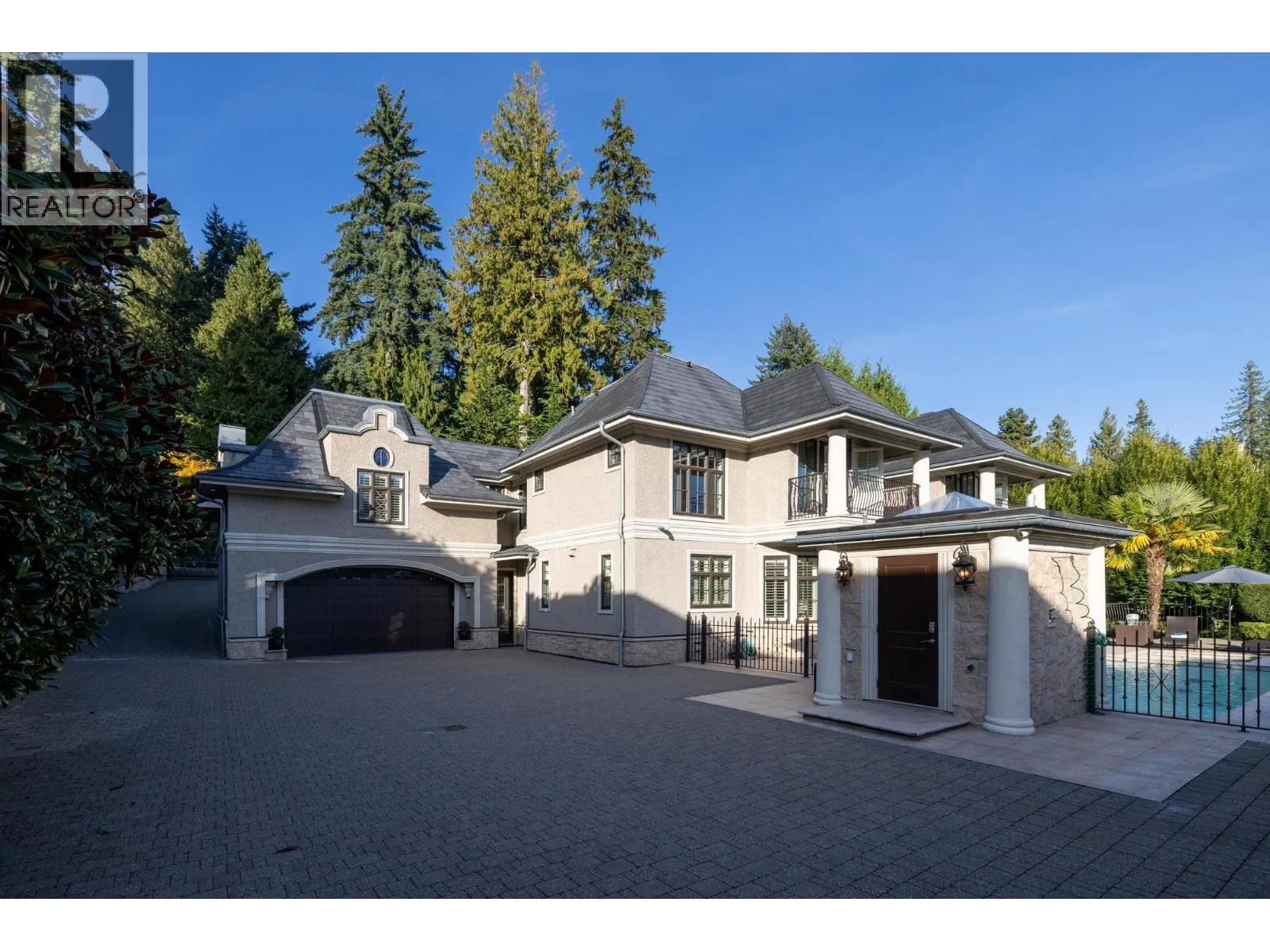 Magnificent European Chateau in Prestigious Altamont. A Marque Thompson-designed gated estate, this 6-bedroom, 8-bath residence blends European elegance with modern sophistication. A sweeping driveway, grand entry & handcrafted marble staircase set an unforgettable tone. The chef´s kitchen, with Sub-Zero, Wolf & Miele appliances plus a WOK kitchen, flows into formal rooms & bright entertaining spaces. Walls of glass open to a resort-style backyard with swimming pool, Jacuzzi, firepit & pavilion, all framed by lush landscaped gardens. Upstairs, the primary suite is a spa retreat, with marble bath, rain shower, freestanding tub & boutique-style walk-in. Three additional ensuites provide comfort for family & guests. The lower level features a theatre, wine cellar, gym, sauna, steam & nanny quarters. Smart automation, radiant heating, Murano fixtures & biometric security complete this residence. In one of West Vancouver´s most prestigious enclaves, it offers unmatched beauty, privacy & sophistication. (id:27476)