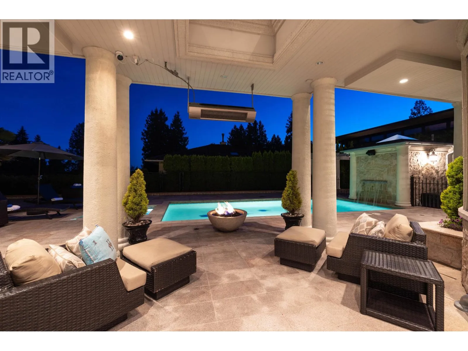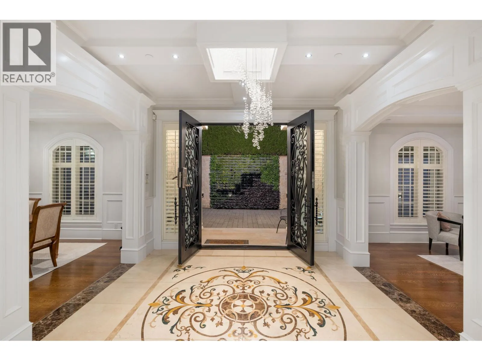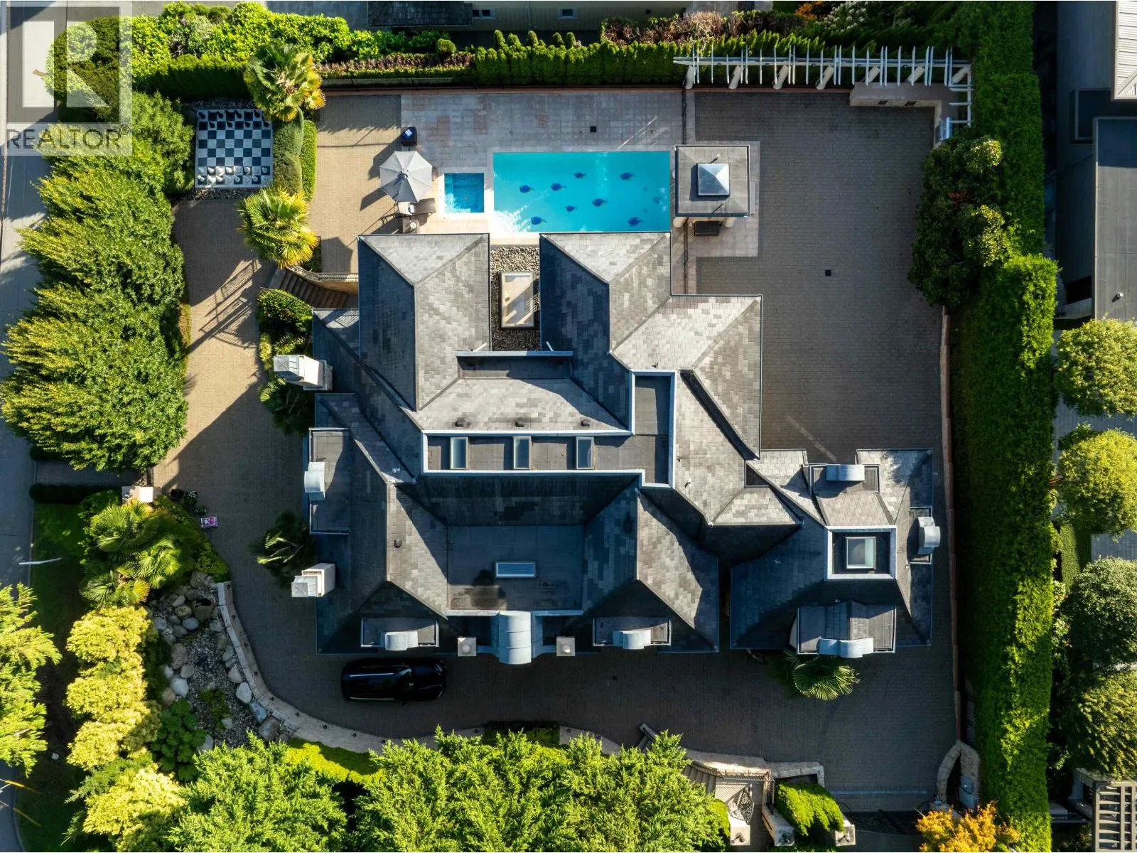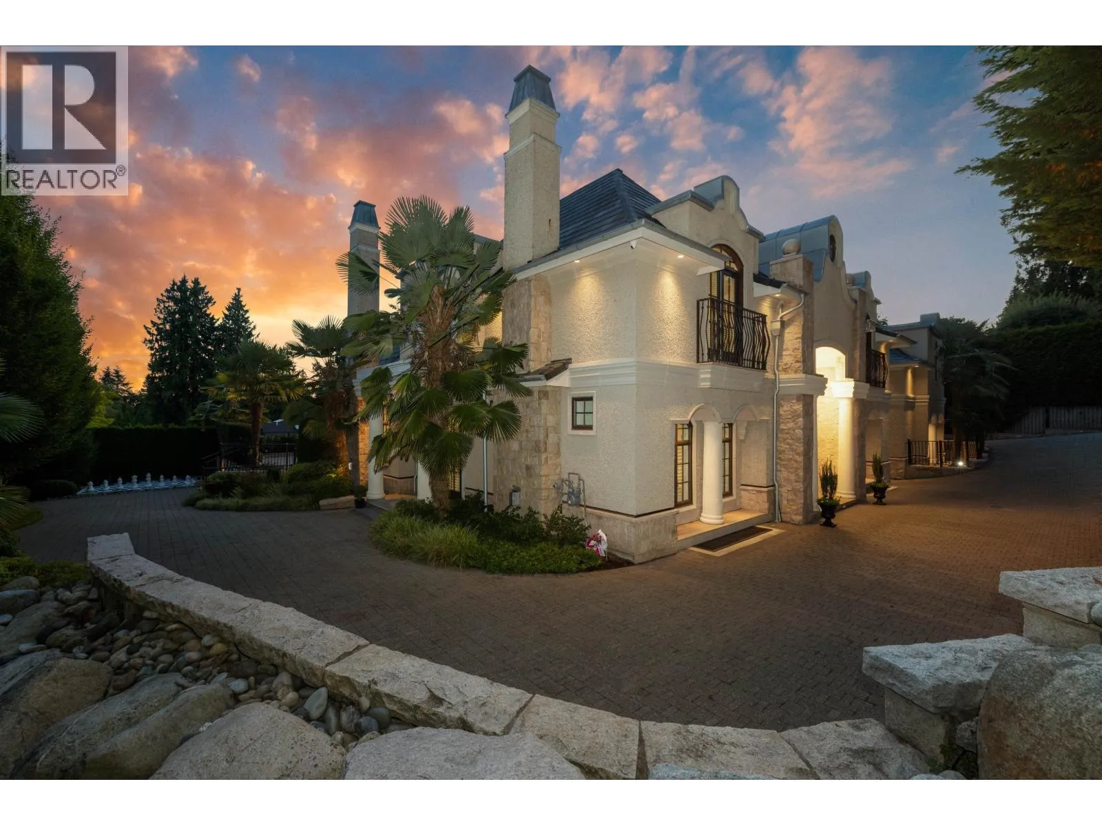 Magnificent European Chateau in Prestigious Altamont. A Marque Thompson-designed gated estate, this 6-bedroom, 8-bath residence blends European elegance with modern sophistication. A sweeping driveway, grand entry & handcrafted marble staircase set an unforgettable tone. The chef´s kitchen, with Sub-Zero, Wolf & Miele appliances plus a WOK kitchen, flows into formal rooms & bright entertaining spaces. Walls of glass open to a resort-style backyard with swimming pool, Jacuzzi, firepit & pavilion, all framed by lush landscaped gardens. Upstairs, the primary suite is a spa retreat, with marble bath, rain shower, freestanding tub & boutique-style walk-in. Three additional ensuites provide comfort for family & guests. The lower level features a theatre, wine cellar, gym, sauna, steam & nanny quarters. Smart automation, radiant heating, Murano fixtures & biometric security complete this residence. In one of West Vancouver´s most prestigious enclaves, it offers unmatched beauty, privacy & sophistication. (id:27476)