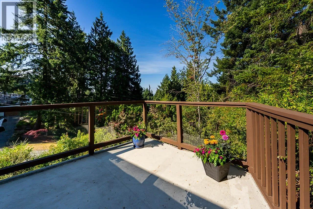 LARGE PRIVATE 21,597 sq.ft. lot with partial ocean views. This bright family home perched on a quiet street features an open floor plan on the main level with renovated kitchen, lots of skylights, hardwood floors and beautiful beams. Lots of decks to enjoy your SOUTH WEST exposure. On the main you will find both a gas and wood burning fireplace for those cold winter days. Offers two bedrooms up with two full bathrooms and downstairs you will find a further two bedrooms and one full bathroom. Exterior freshly painted. Double car garage and ample parking on the driveway. A short drive to parks, trails, golfing, beaches, skiing, Eagle Harbour, Caulfield Village, schools (Eagle Harbour Montessori, Caulfield and Rockridge) and easy access to Highway 99. Potential to sub-divide. Call to view. (id:27476)