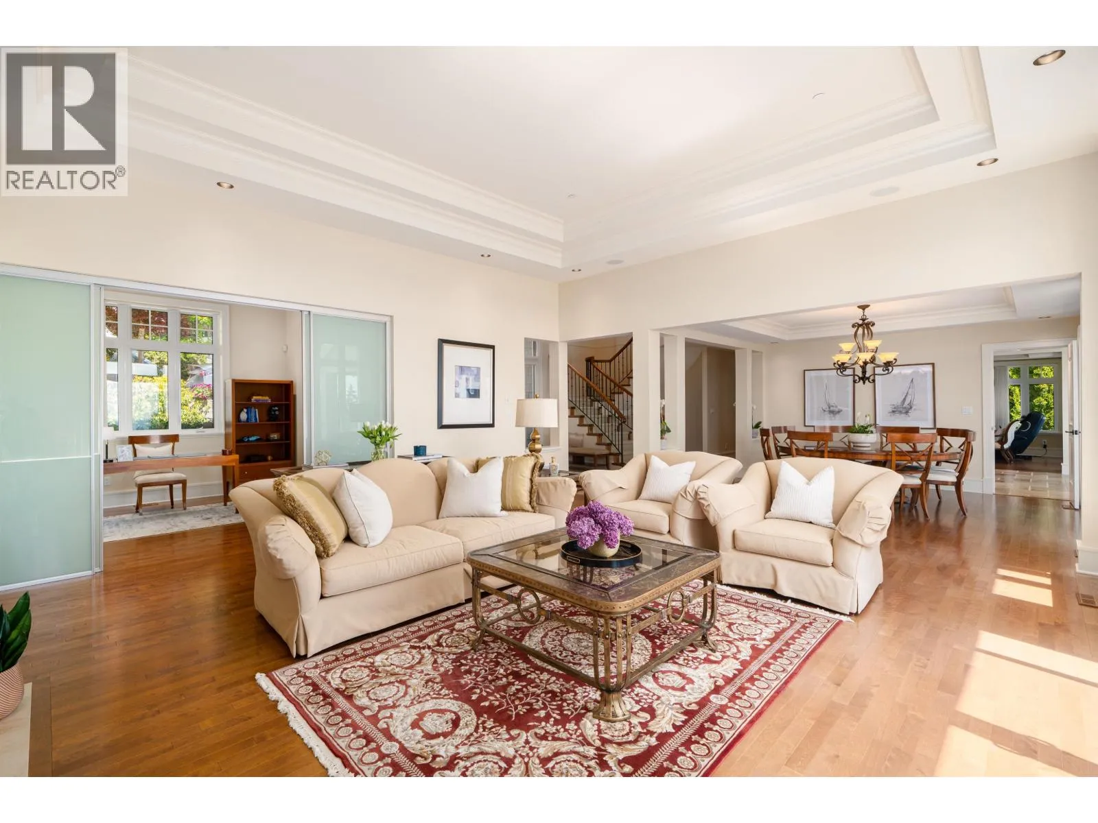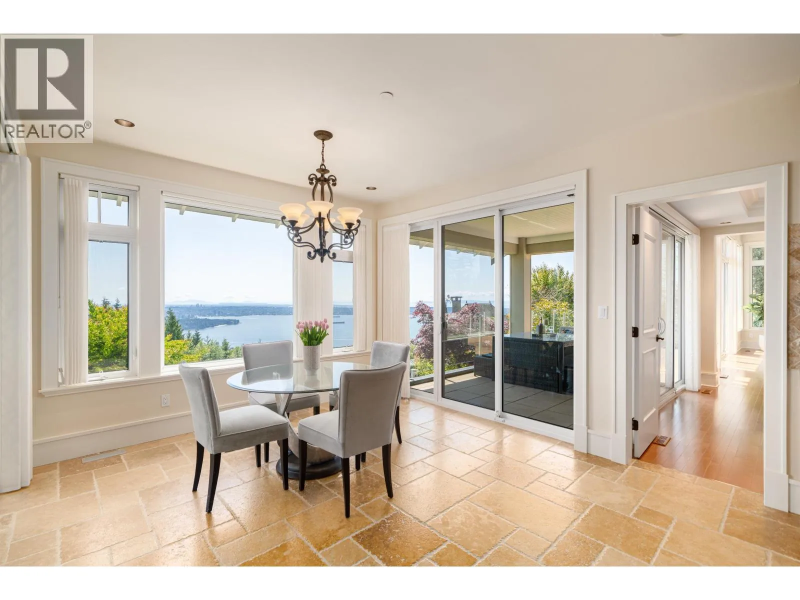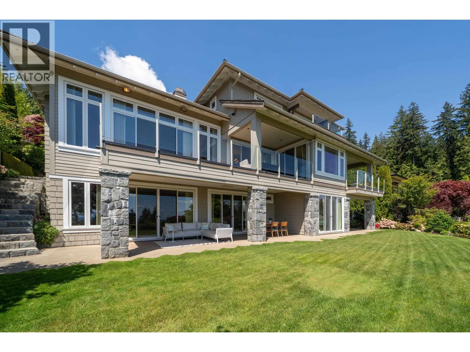 Perched in a prime Whitby Estates cul-de-sac, this beautifully maintained custom-built home offers unobstructed panoramic ocean, city and Lions Gate Bridge views from all 3 levels. Features include a heated driveway, home office, spacious recreation/media room, security system, built-in vacuum, sound system, and top-tier Viking & Wolf appliances.The upper level showcases a grand primary suite with spa-like ensuite, while the lower level offers 3 ensuite bdrooms, perfect for family and guests. Multiple patios and balconies invite you to enjoy breathtaking sunsets & city lights year-round. Ideally located minutes to Collingwood, Mulgrave, and within the sought-after Chartwell Elementary and Sentinel Secondary catchments.Quiet, private, and offering truet West Van luxury living at its finest! (id:27476)