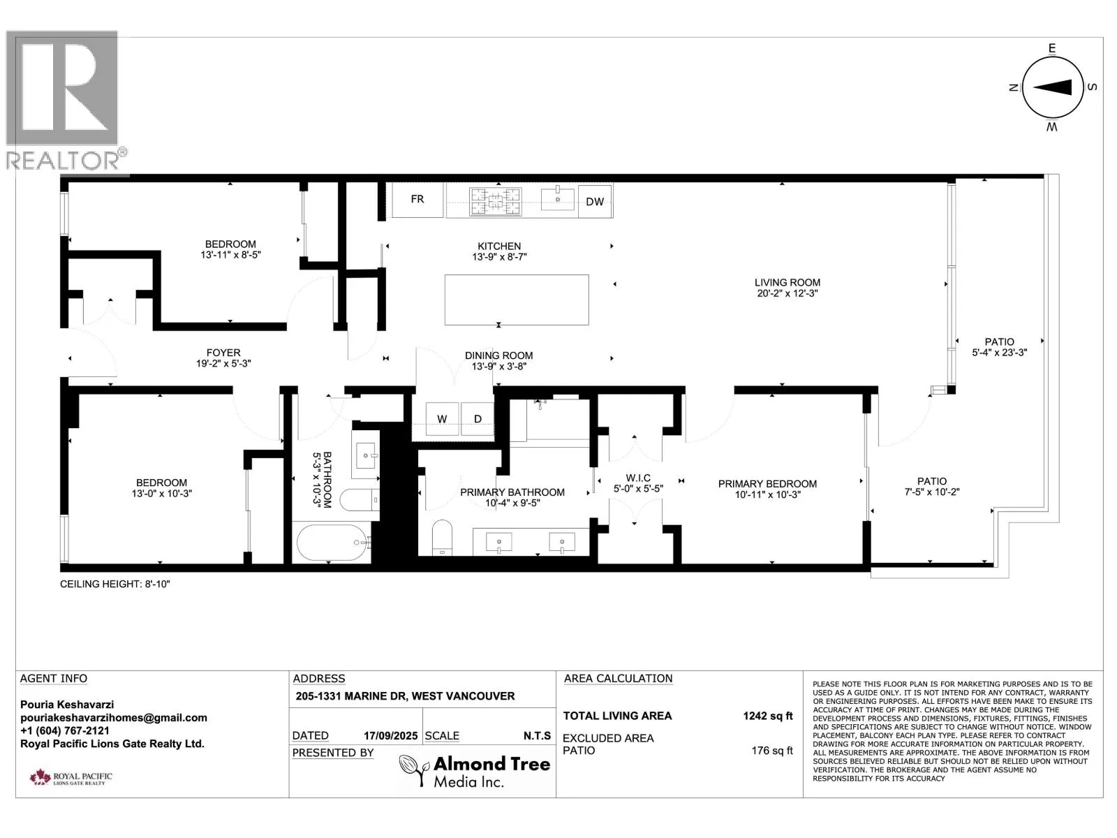 Welcome to 205 1331 Ambleside, an exclusive luxury concrete residence ideally located just steps from the beach and minutes from every convenience. This elegant 3-bedroom, 2-bathroom corner unit offers 1,258 square ft of refined living space, featuring air conditioning, sleek Italian Scavolini cabinetry, premium Gaggenau appliances, and spa-inspired bathrooms adorned with Italian marble and NuheatTM heated floors. Nestled in one of West Vancouver´s most sought-after neighbourhoods, this boutique building comprises only 16 private homes, offering an exceptional blend of privacy, sophistication, and style. Includes 1 secure parking space and 1 storage locker. (id:27476)