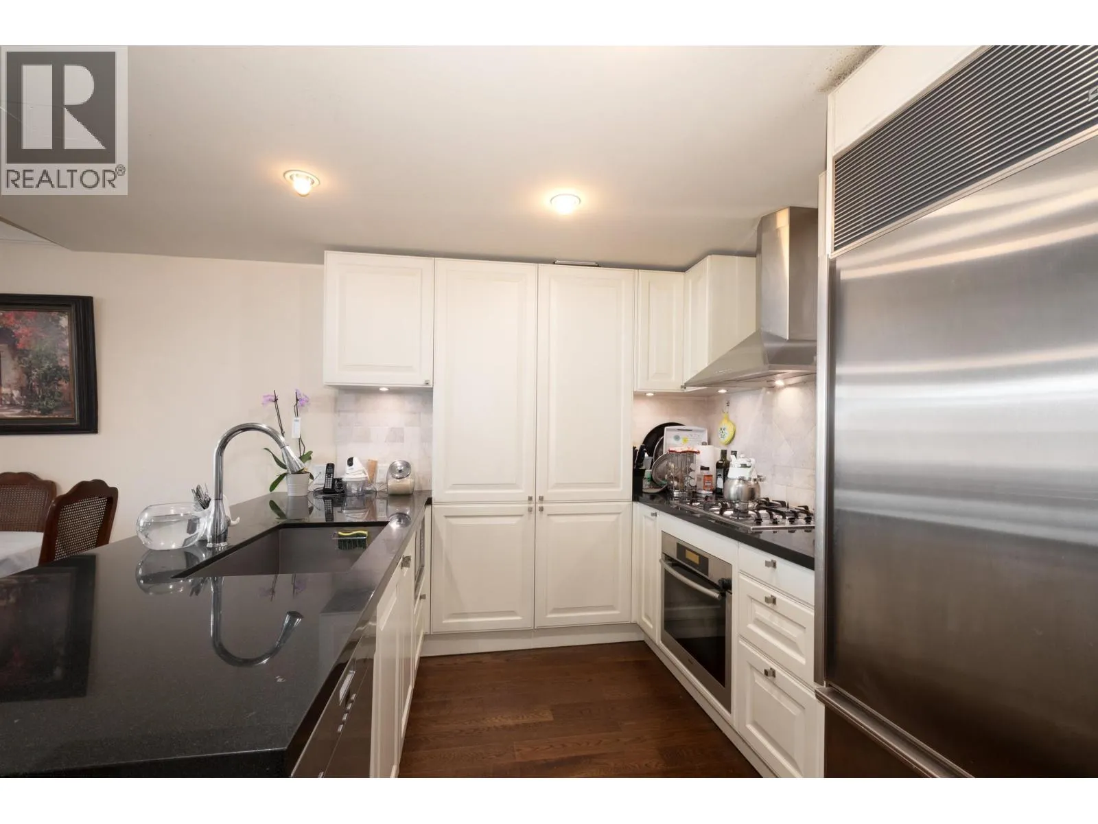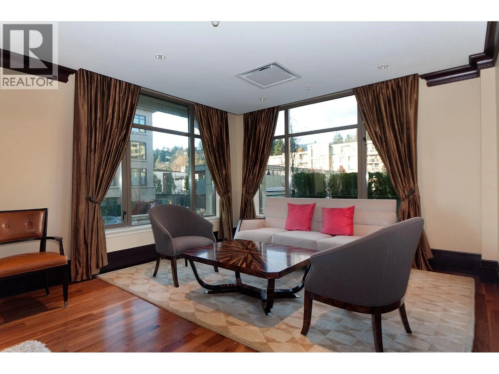 Experience timeless luxury at Waters Edge, an iconic West Vancouver residence by renowned architect Robert A.M. Stern, set along the tranquil Capilano River. This refined 2-bedroom + den corner suite features a bright southwest-facing solarium, generous indoor/outdoor space, hardwood floors, and high-end Miele and Sub-Zero appliances. The spa-like bathrooms and thoughtful layout create a sophisticated and comfortable living experience. Just a short walk to Park Royal´s shops and restaurants, this home combines convenience with elegance. Enjoy premium amenities including a fitness centre, sauna and steam rooms, and 24-hour concierge. Includes 1 parking stall and 1 storage locker. Book your private showing today! (id:27476)