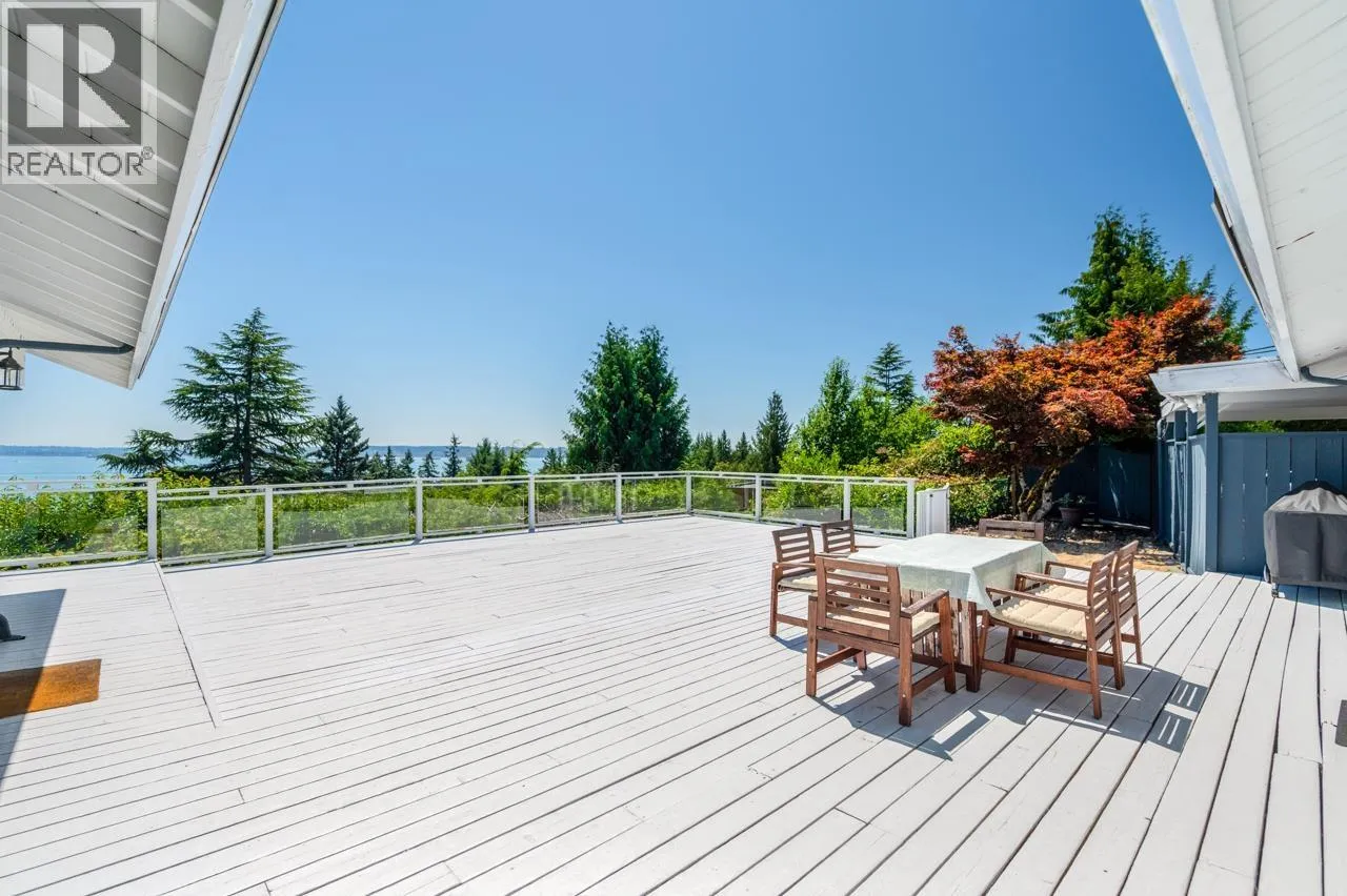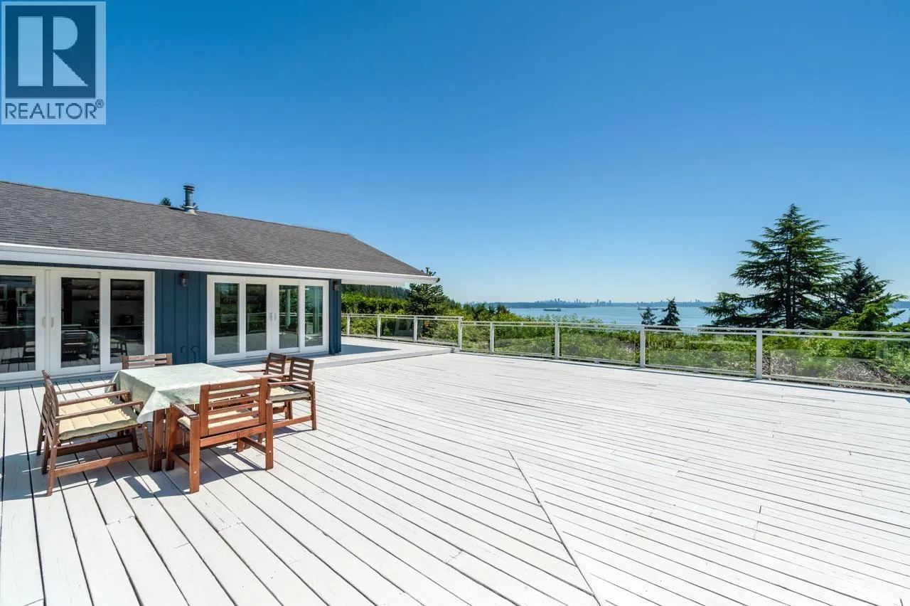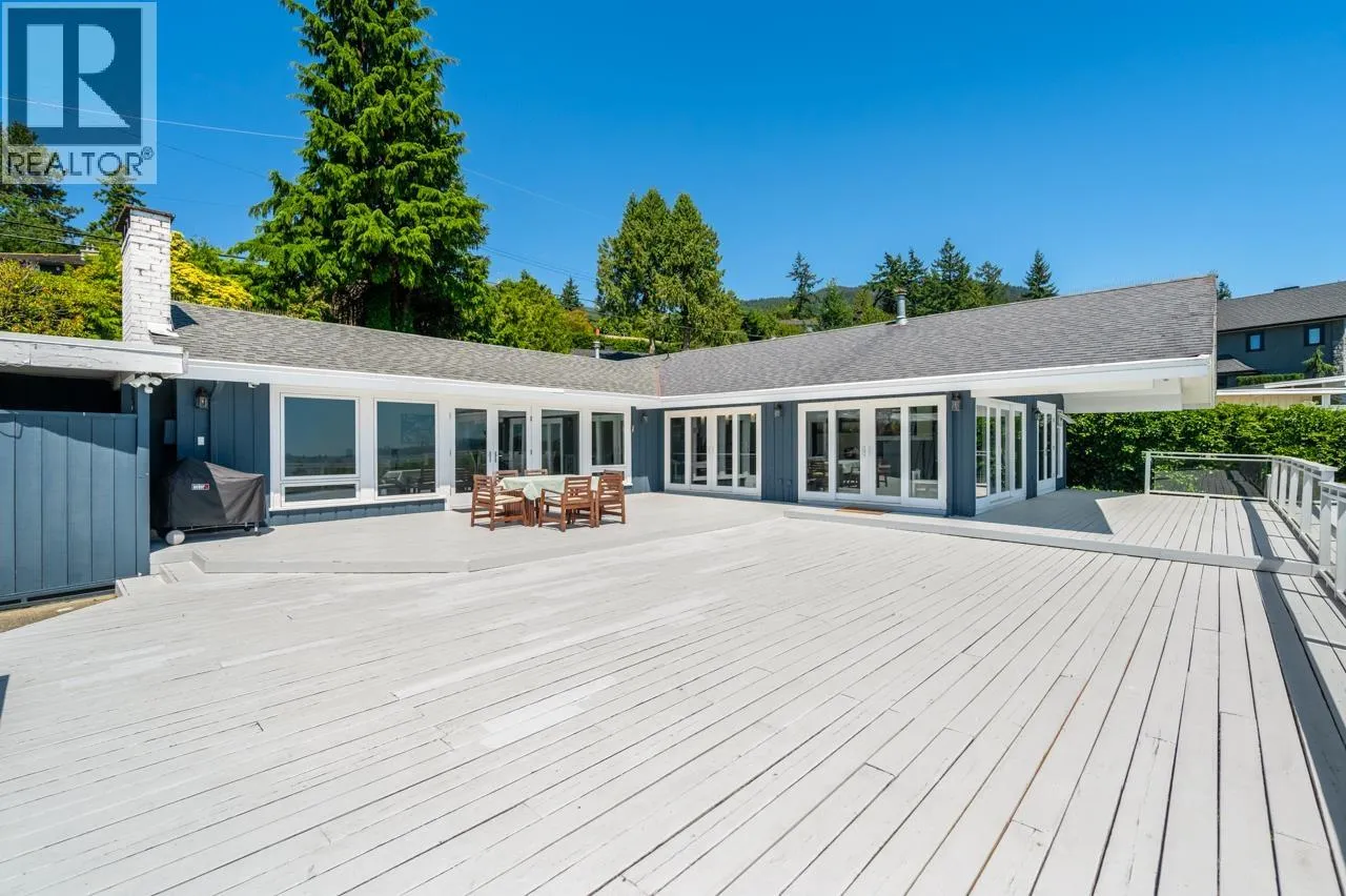 This rancher-style bungalow sits proudly on a sprawling 13,068 square ft estate lot, offering breathtaking panoramic ocean views. Open-concept layout with vaulted angled ceilings that create an airy, architectural flow throughout the home. 4 bedrooms, including one that doubles beautifully as a home office or den. At the heart of the home is a designer kitchen that blends luxury with function featuring high-end Miele, Wolf and Viking appliances. Step out onto the expansive sun-drenched deck that spans the full length of the home, perfect for entertaining, lounging, or simply soaking in the ocean breeze. Minutes to central Dundarave and moments to Sandy Cove Beach. Prestigious school catchments of West Bay Elementary (IB) and Rockridge Secondary. *Open House Sunday November 16th @ 2-4pm* (id:27476)