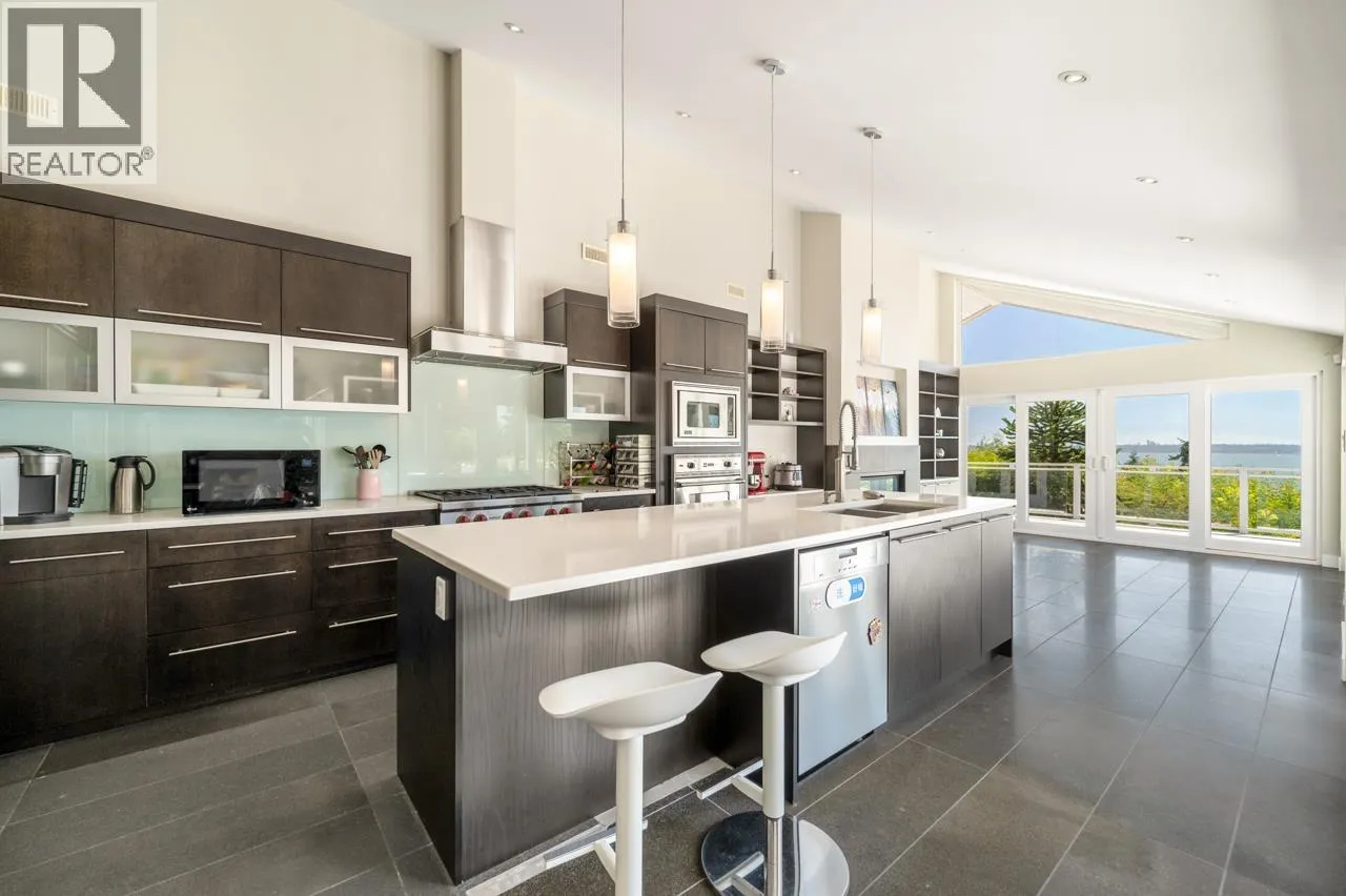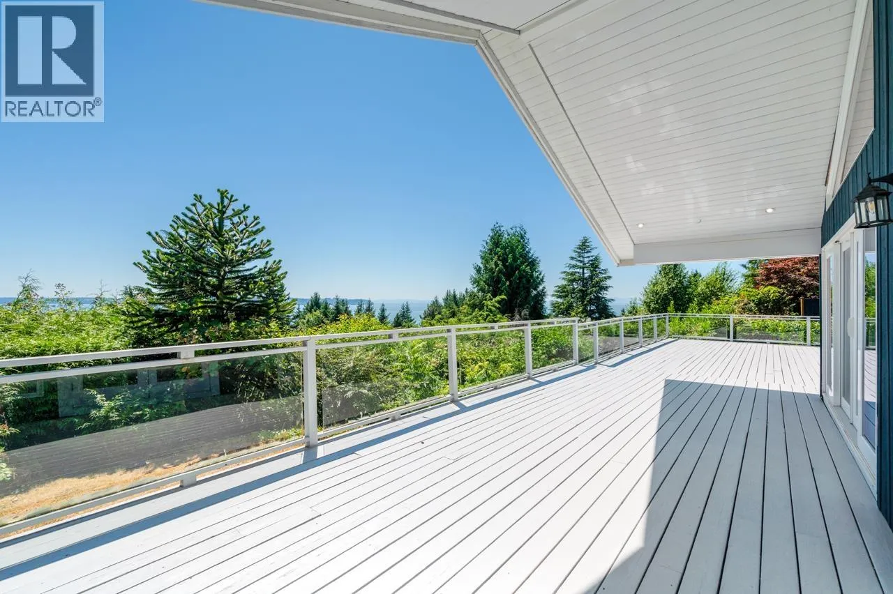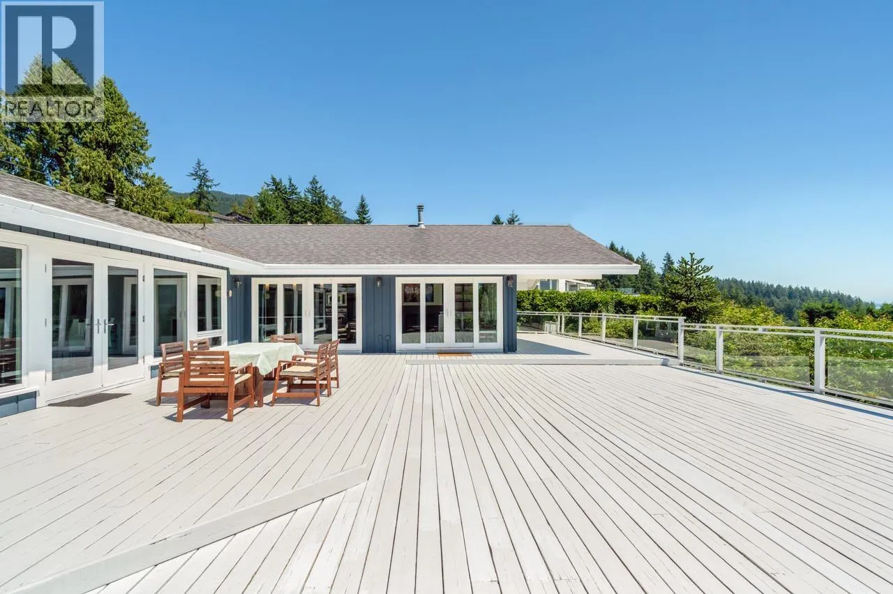 This rancher-style bungalow sits proudly on a sprawling 13,068 square ft estate lot, offering breathtaking panoramic ocean views. Open-concept layout with vaulted angled ceilings that create an airy, architectural flow throughout the home. 4 bedrooms, including one that doubles beautifully as a home office or den. At the heart of the home is a designer kitchen that blends luxury with function featuring high-end Miele, Wolf and Viking appliances. Step out onto the expansive sun-drenched deck that spans the full length of the home, perfect for entertaining, lounging, or simply soaking in the ocean breeze. Minutes to central Dundarave and moments to Sandy Cove Beach. Prestigious school catchments of West Bay Elementary (IB) and Rockridge Secondary. *Open House Sunday November 16th @ 2-4pm* (id:27476)