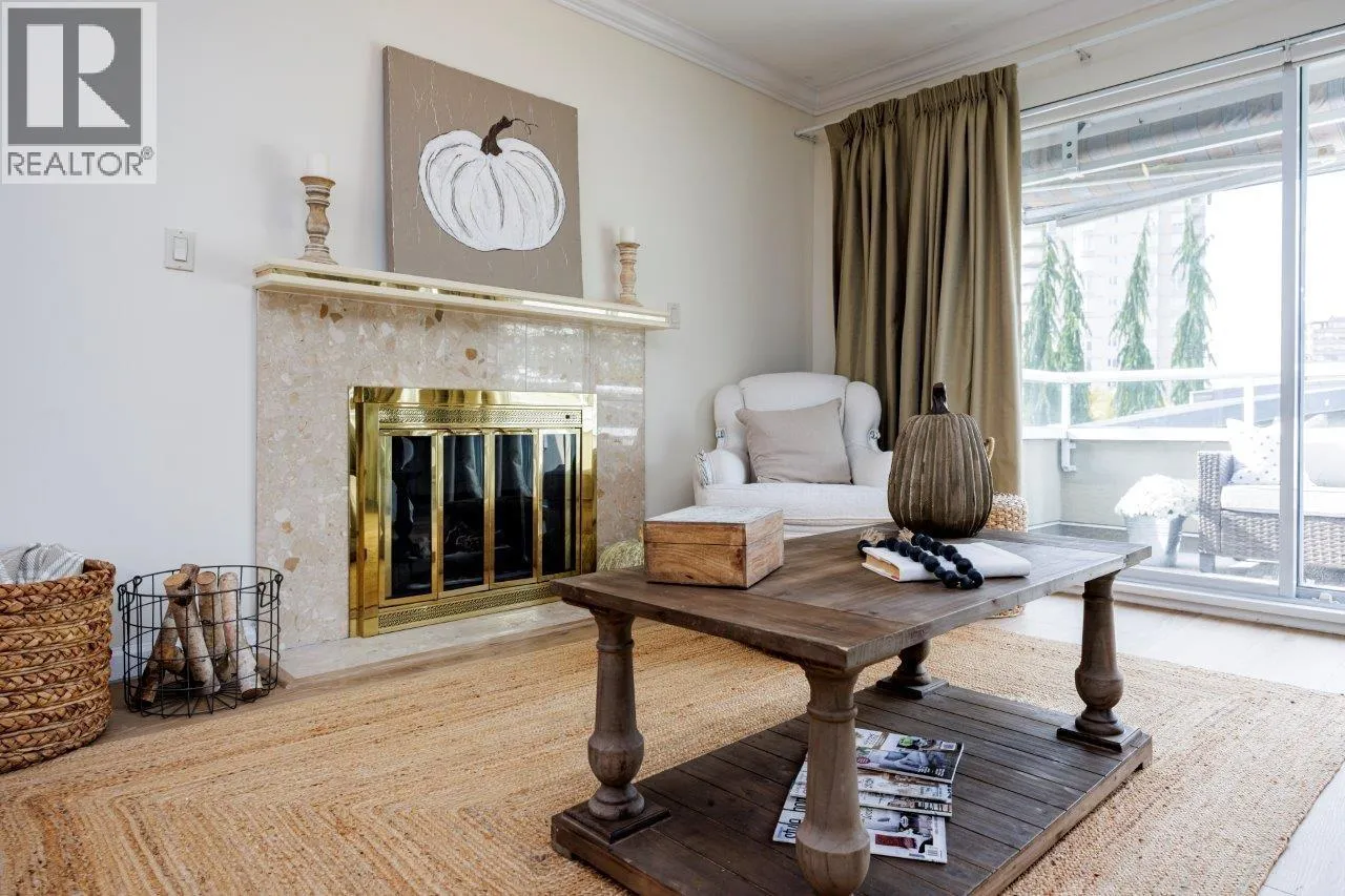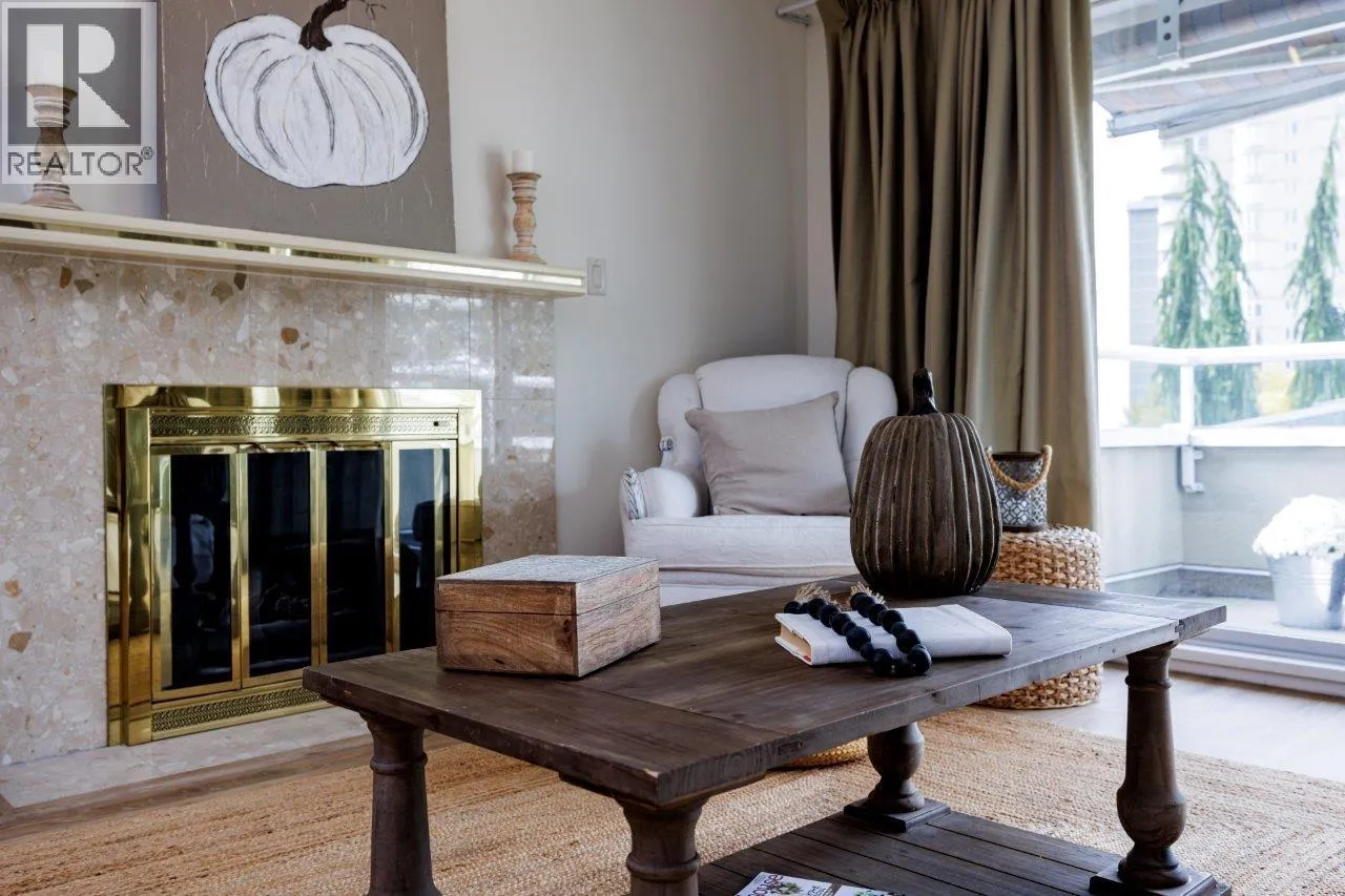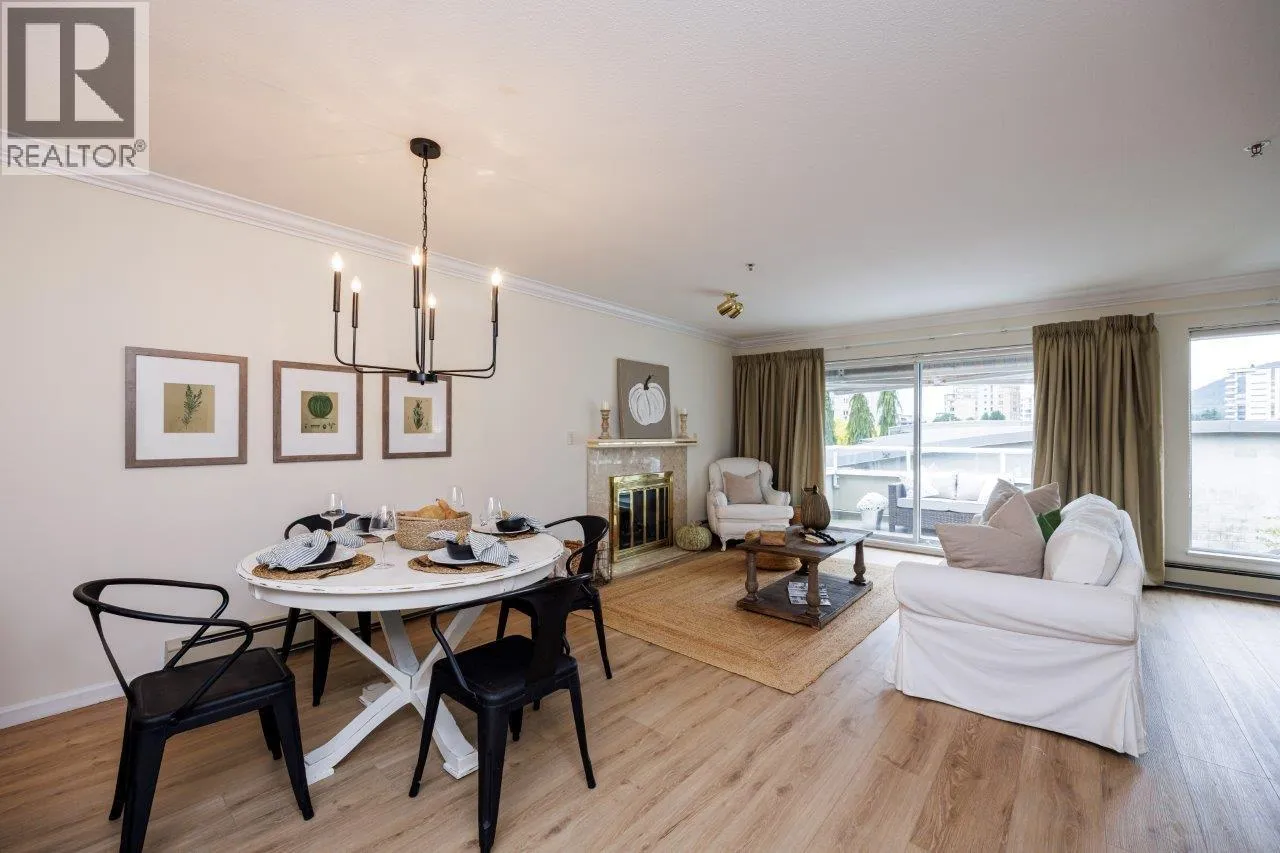 Warm & inviting ...this 55+ COMPLEX IS FOR YOU Top floor penthouse unit west facing to peek a boo ocean views and stunning mountain vistas. Freshly painted and new vinyl flooring enhance its spacious sunny rooms, One bedroom and 2nd space could be either a bedroom (complete with murphy bed, window and closet)or den. Comes with 2 parking stalls.gas fireplace and huge storage room. Fantastic location across from WV Seniors centre near library & shopping and so much more. (id:27476)