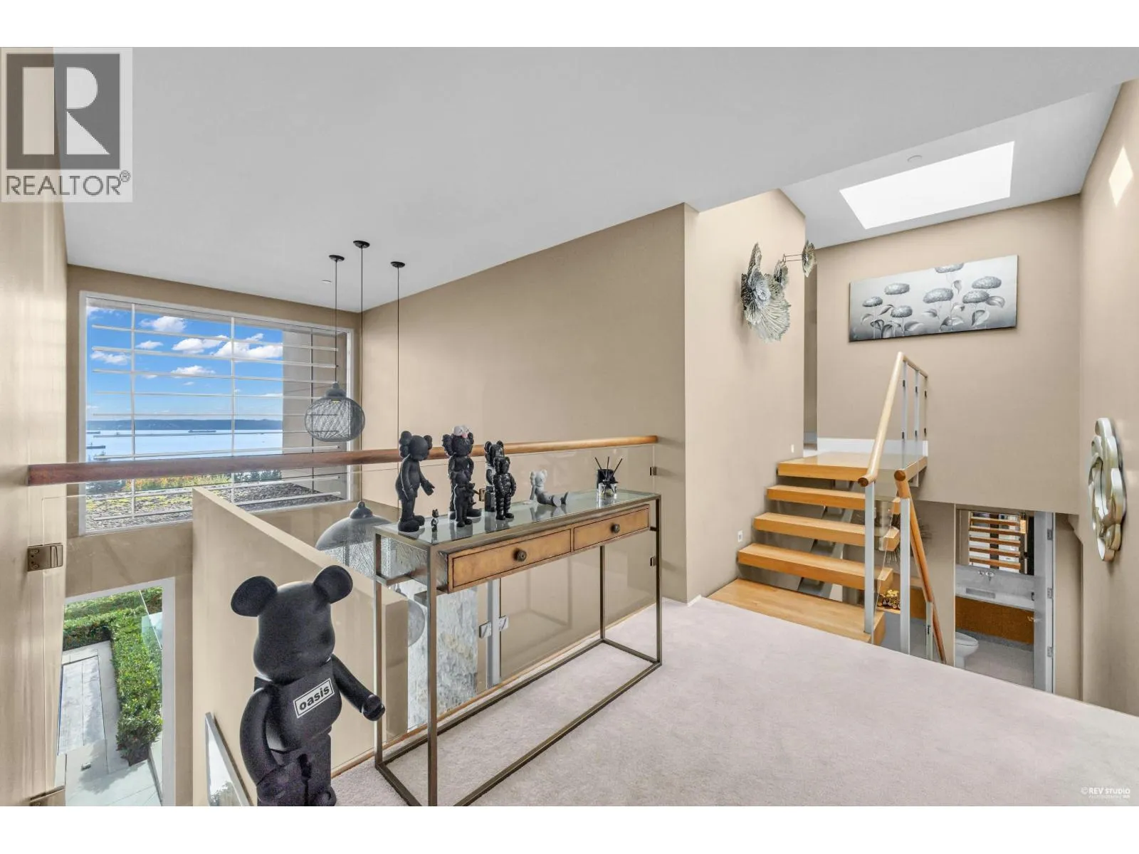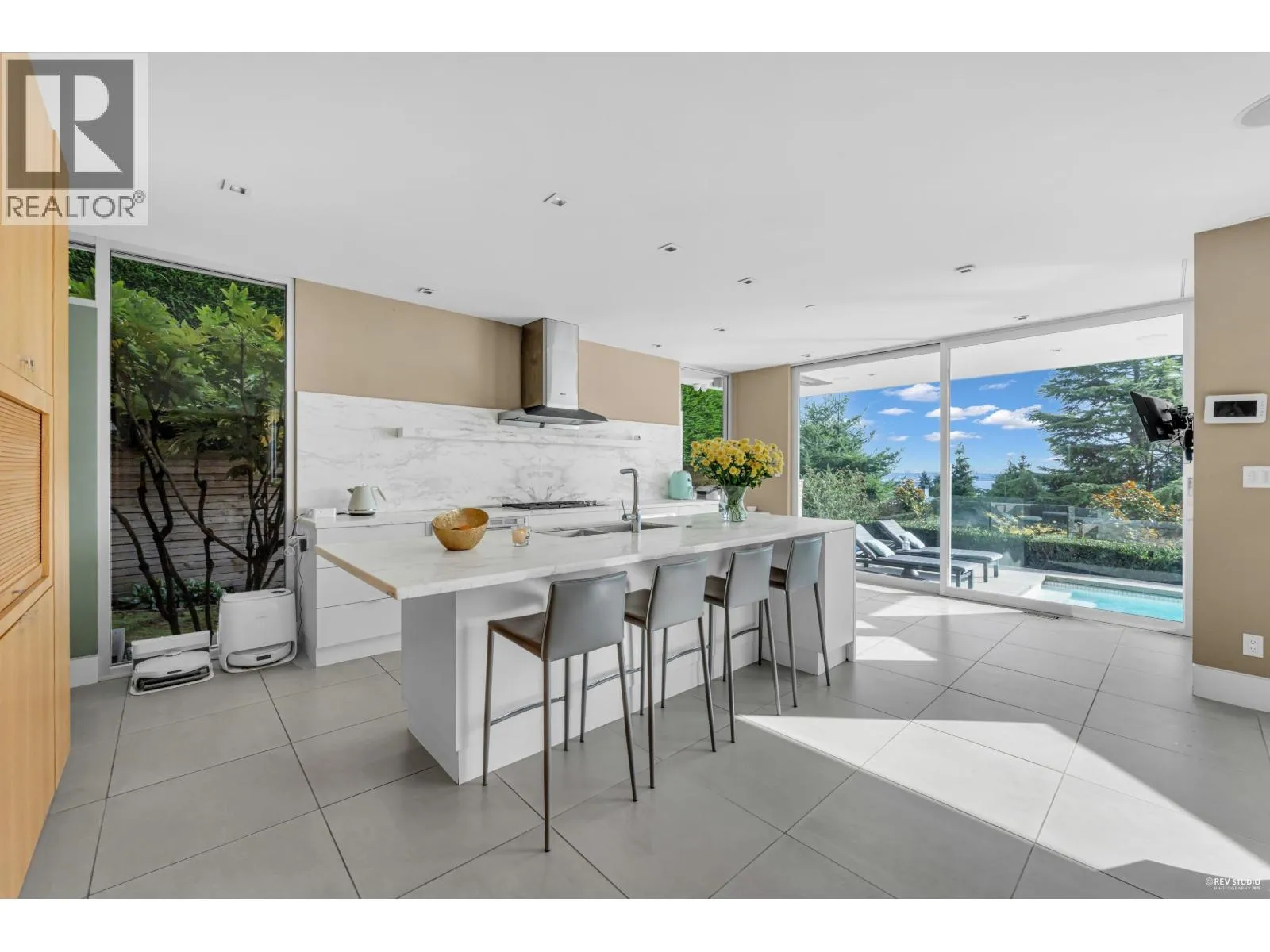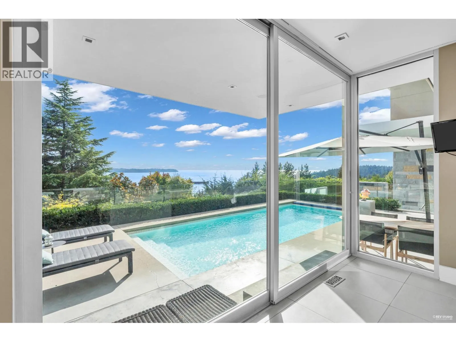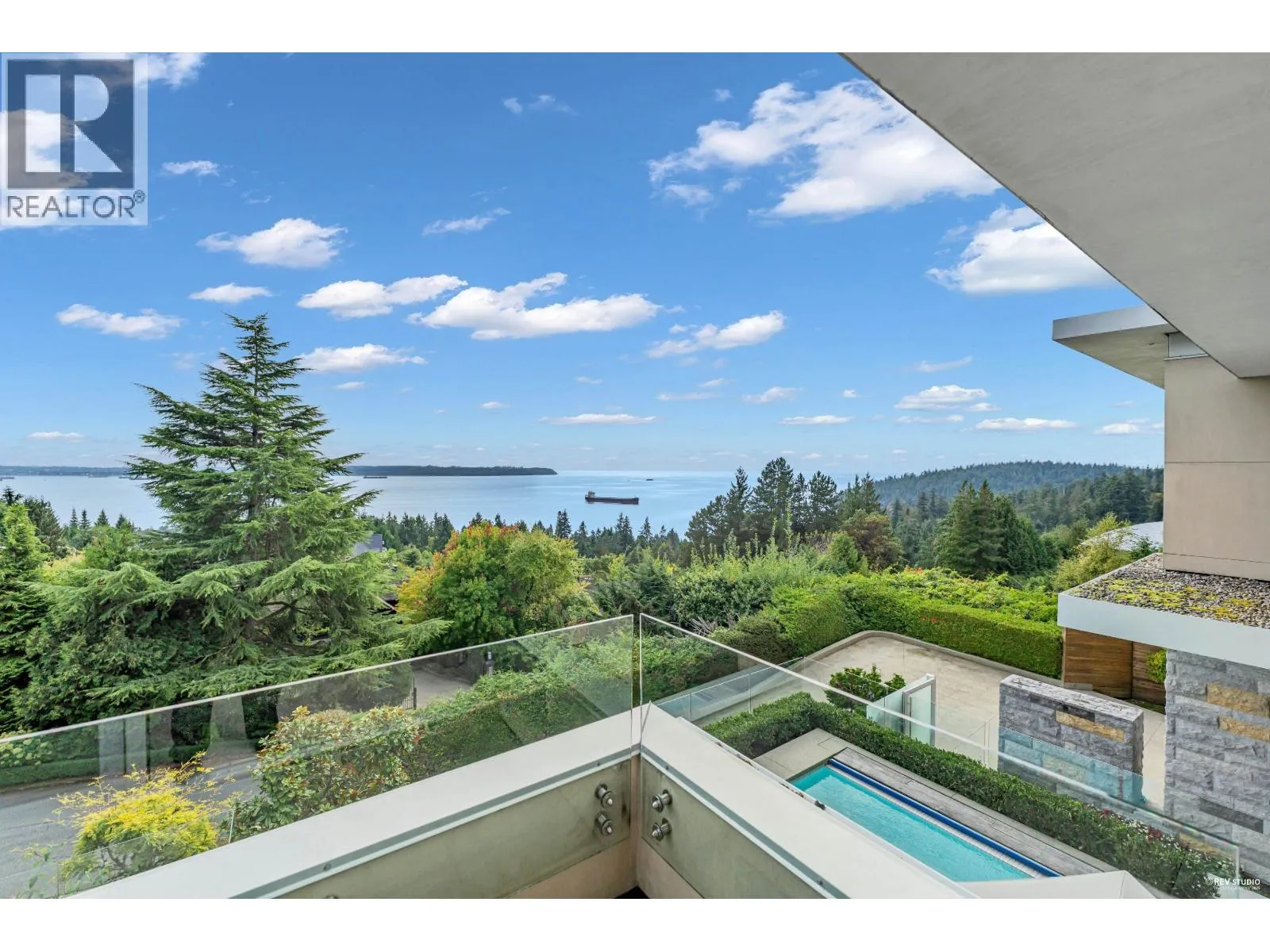 Architectural masterpiece in prestigious Rockridge! This 5,748 square ft contemporary residence on a 12,633 square ft south-facing lot captures breathtaking ocean, city and sunset views from all levels. Built with concrete, steel and glass, it showcases soaring ceilings, floor-to-ceiling windows, radiant heat, A/C, and a state-of-the-art smart home system. Features 5 beds, 7 baths, gourmet kitchen with top-tier appliances, media room, wine cellar, and elegant indoor-outdoor flow. Resort-style pool, spa, terraces, and landscaped gardens offer ultimate privacy. Close to Caulfeild Elementary and Rockridge Secondary. (id:27476)