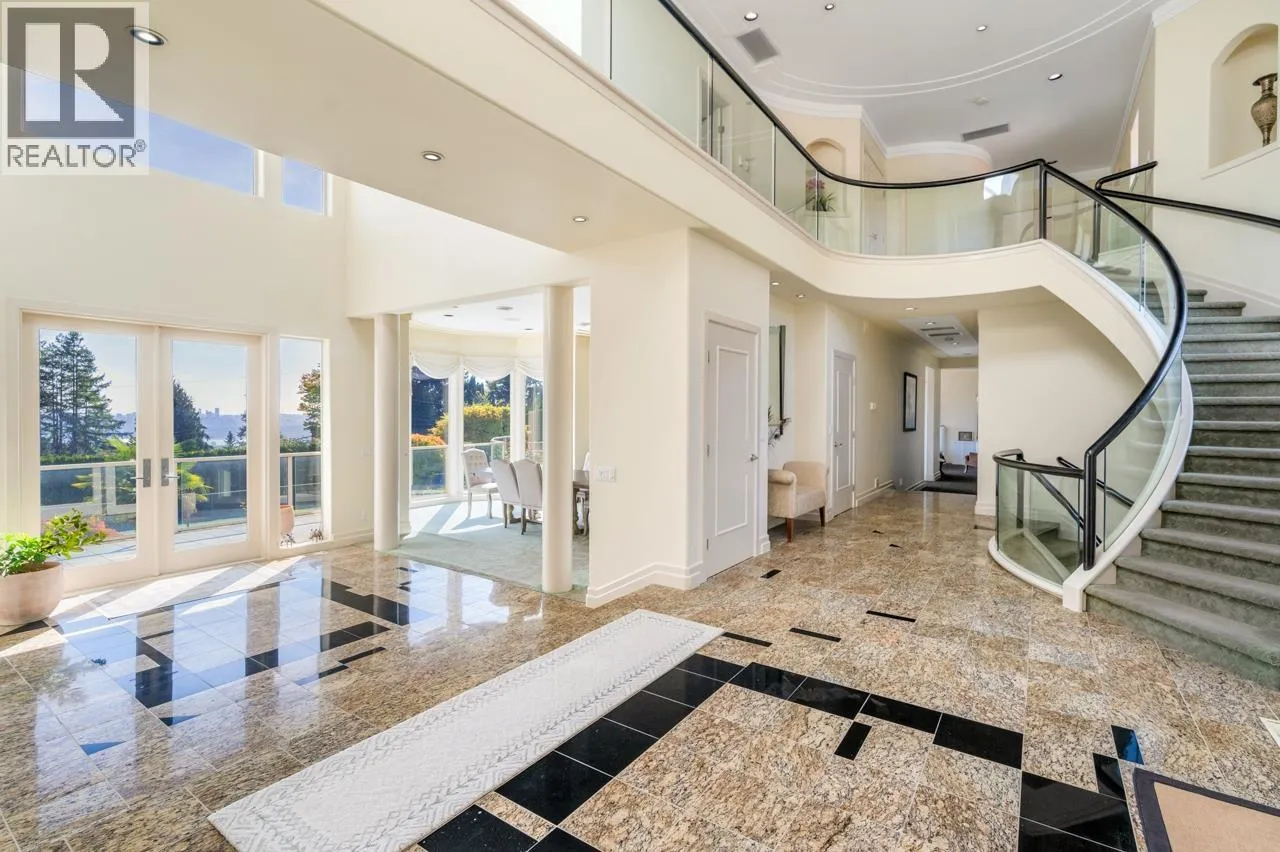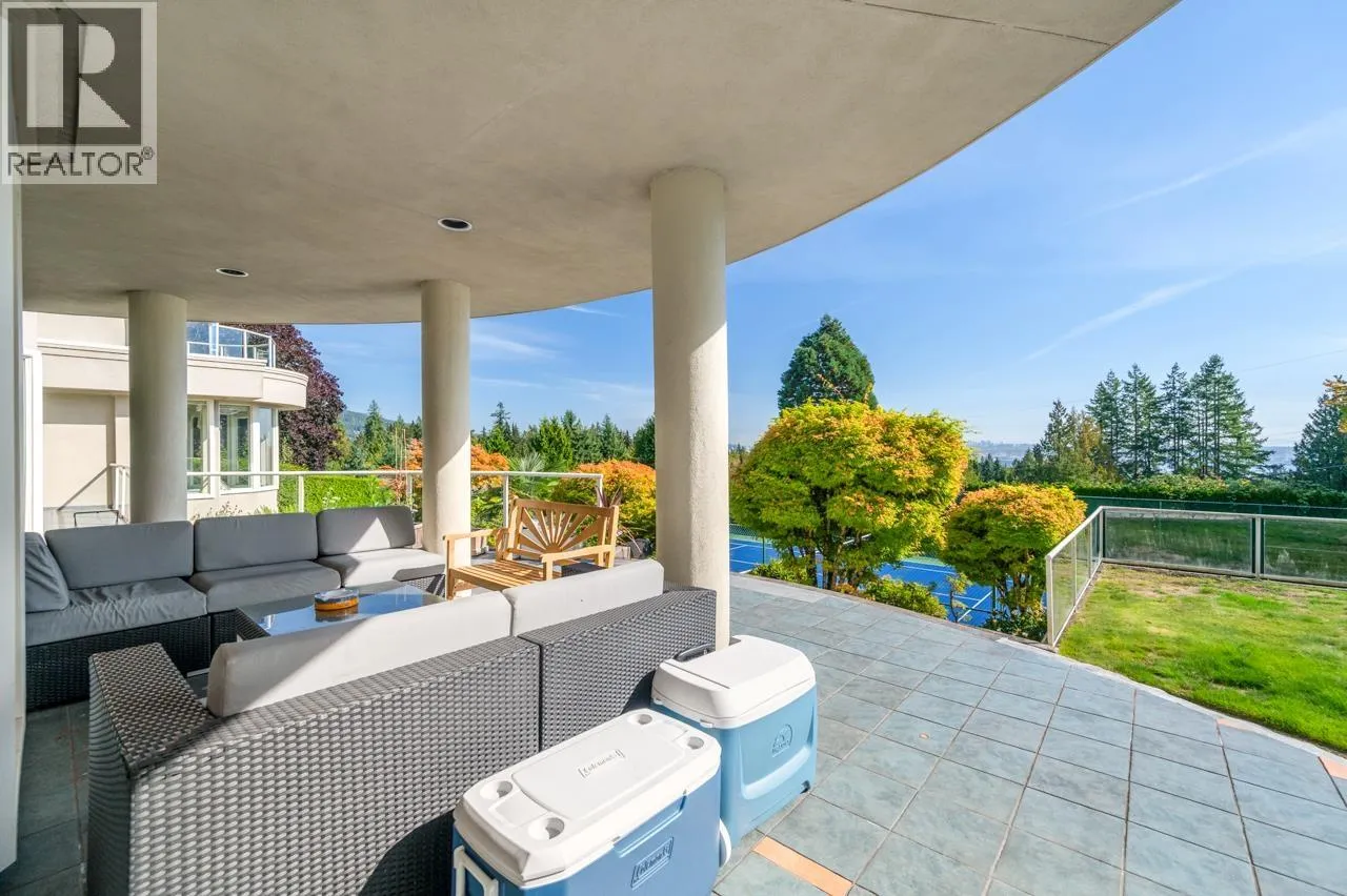 Poised on an extraordinary 28,000 plus sq/ft estate in West Vancouver´s exclusive British Properties. This 3 level residence is a masterclass in luxury living. Encompassing over 8,600 sq. ft. of refined interiors, the home seamlessly blends timeless elegance with modern comfort, a visionary collaboration by the renowned Bradner Homes and Poskitt Design. Features 6 bedrooms and 9 bathrooms, including an opulent primary suite with dual walk-in closets, a private terrace and a spa-inspired ensuite. The main level dramatic foyer, formal living and dining areas, a culinary-grade kitchen with adjoining breakfast nook and family room - all extending out to a vast, entertainer´s terrace that captures views of the manicured grounds and full-size tennis court. (id:27476)