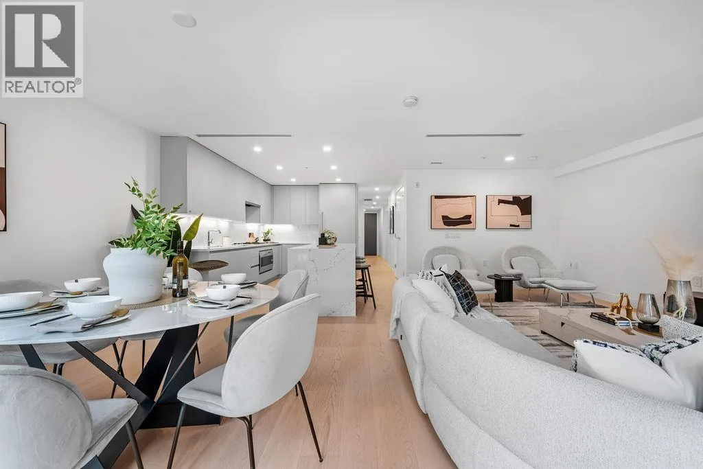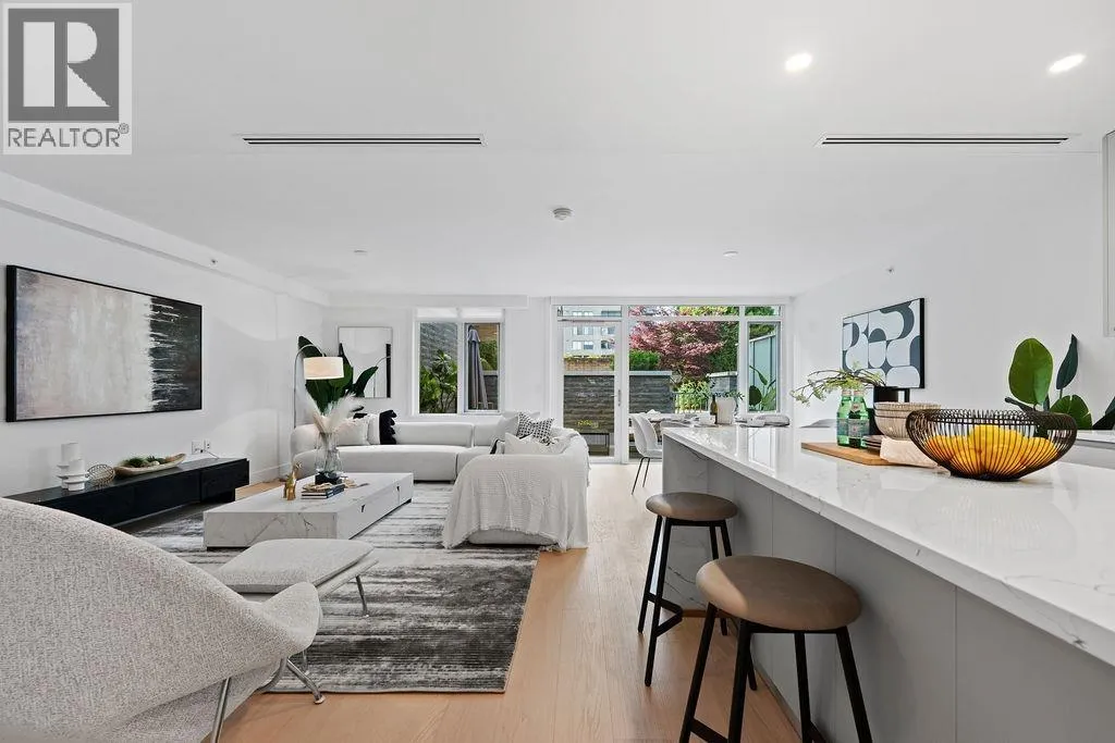 Welcome to 1331 Ambleside Residences, a boutique concrete building in the heart of West Vancouver´s vibrant beachside community. Defined by its contemporary architecture and signature open-air glass-canopied walkway, this address embodies sophisticated coastal living. Residence 202 offers 2 bedrooms and 2 bathrooms with a bright, open-concept layout designed for comfort and elegance. Enjoy air conditioning, radiant in-floor heating, and high-end finishes throughout. The chef-inspired kitchen features Italian Scavolini cabinetry paired with premium Gaggenau appliances, while the spa-like bathrooms provide a daily retreat. Step outside to your spacious private patio, perfect for relaxing or entertaining in privacy. Experience the best of West Vancouver living, steps from the seawall, shops (id:27476)