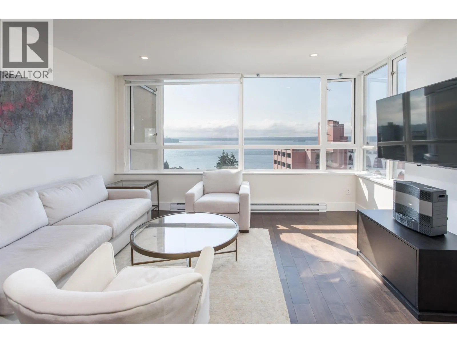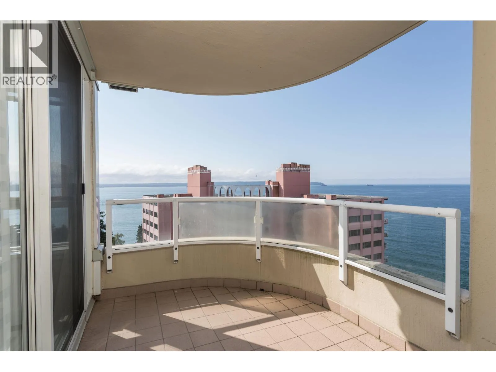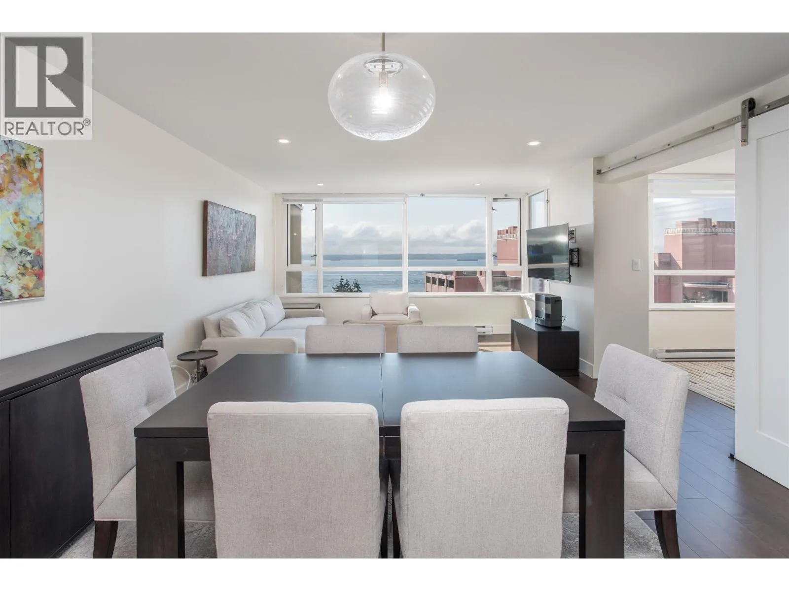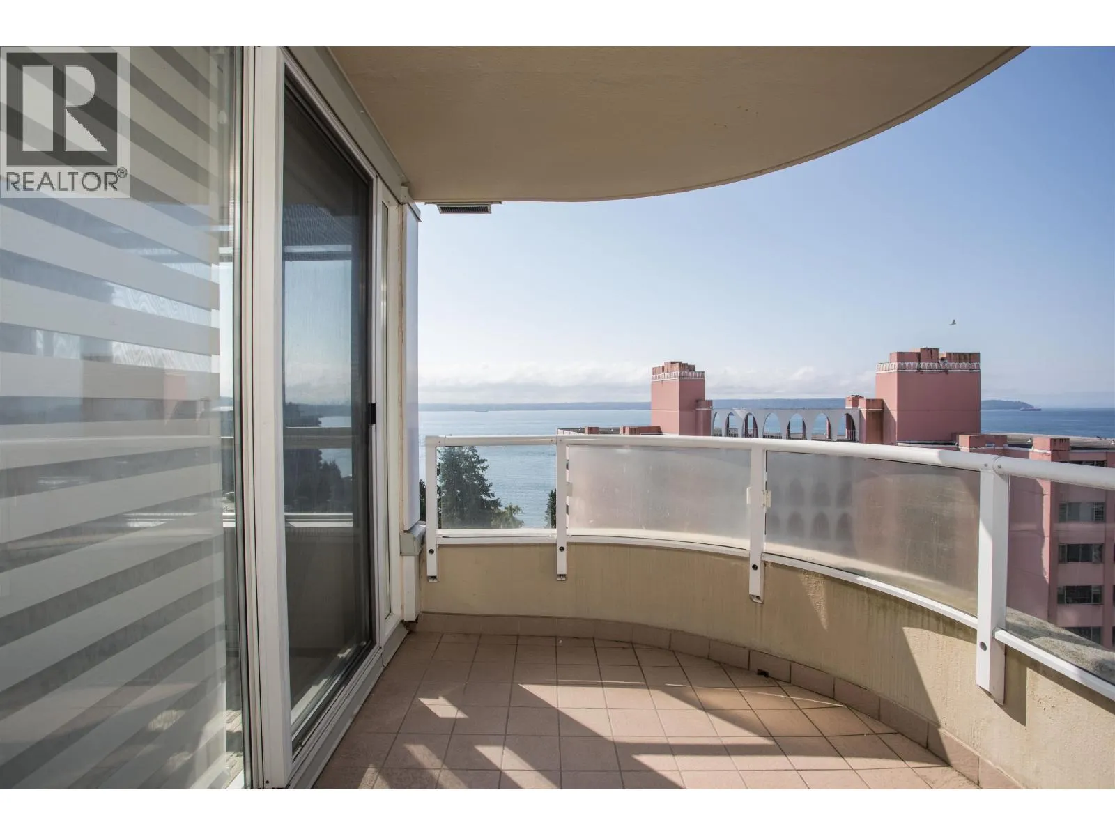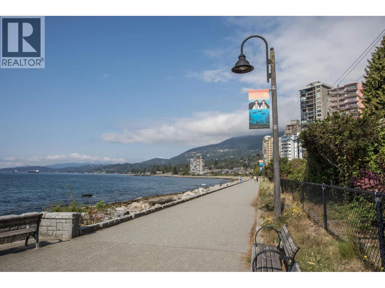 Elegantly renovated and sweeping Ocean & City Views from every room. Bright and airy with an adaptable plan: 1 bedroom + den that easily functions as a 2nd bedroom. Generous living/dining, a chef´s kitchen with stone counters and quality appliances, spa-like bathroom, built-ins, hardwood, and in-suite laundry. Covered balcony for sunsets & cruise-ship watching. Bellevue Place is a friendly, well-run concrete building: 2 modernized elevators, fitness room, meeting/party room, private garden, EV connection, floor chutes for garbage/green bin. Two parking & storage included. No pets/rentals with restrictions. Wheelchair accessible. Just steps to the Seawall, Rec Centre, Library and Dundarave village conveniences. Call your Realtor to View. (id:27476)