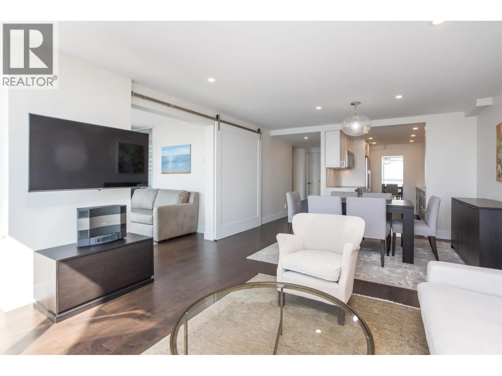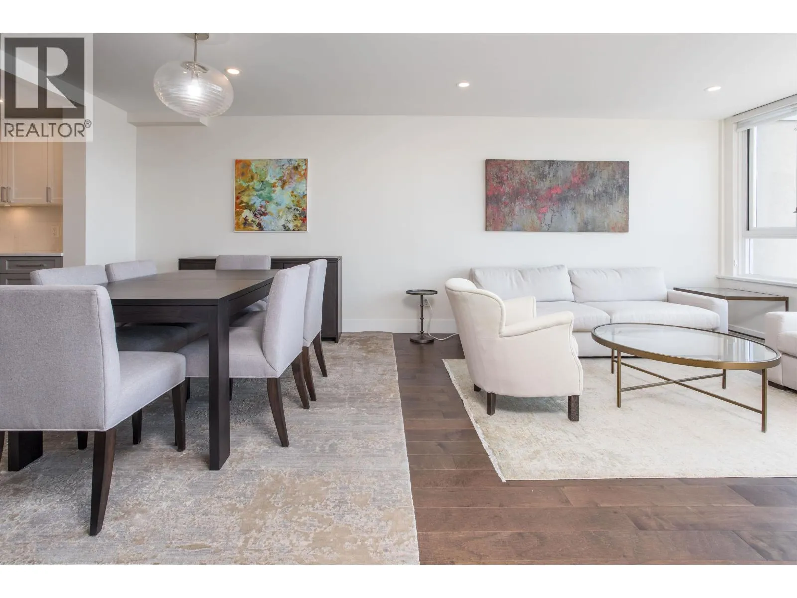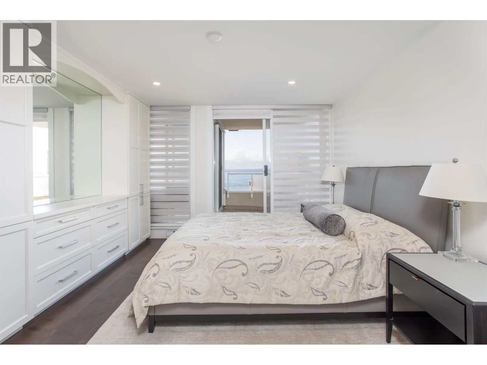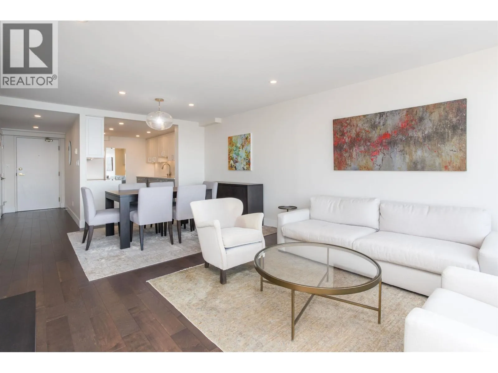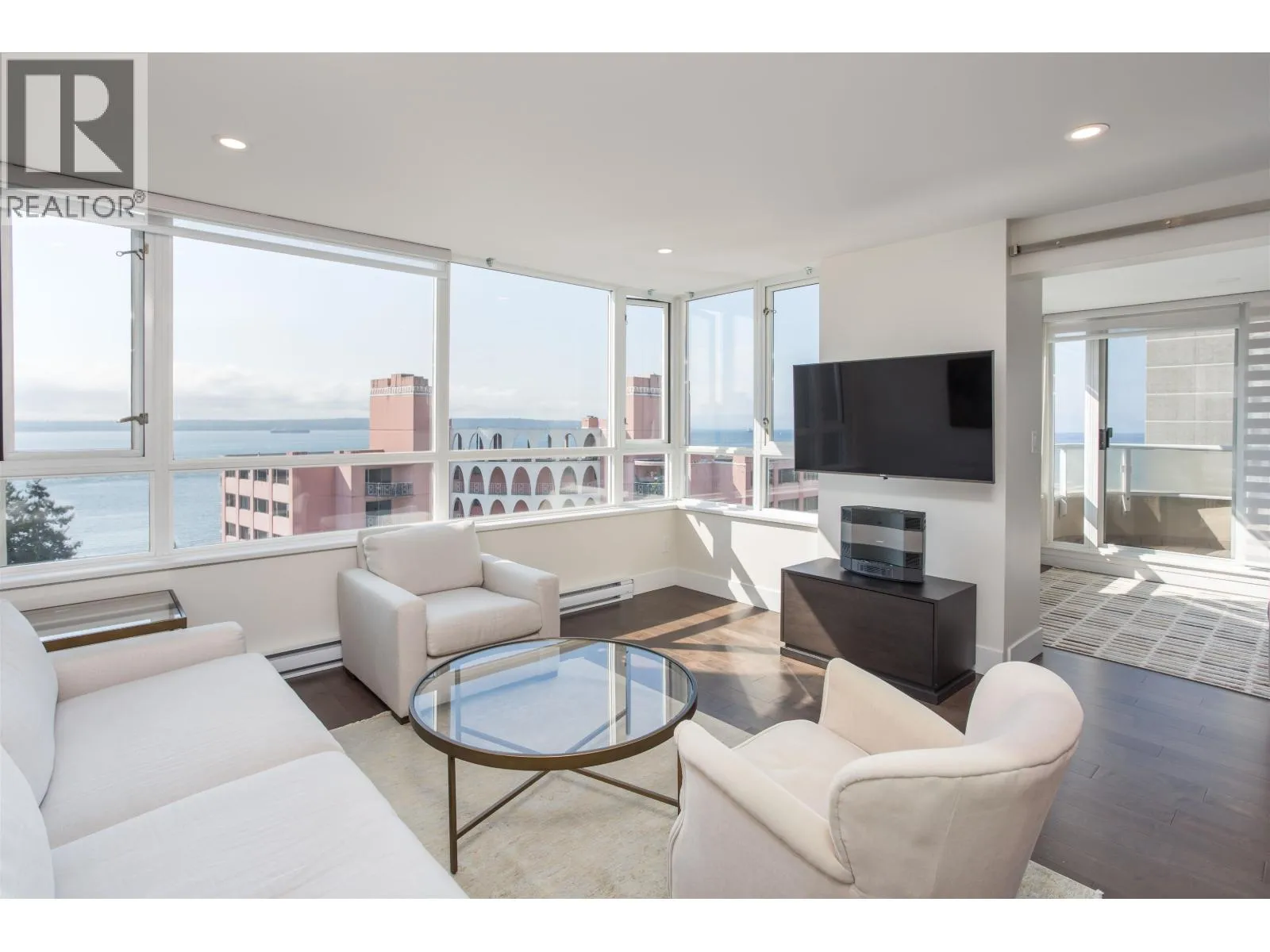 Elegantly renovated and sweeping Ocean & City Views from every room. Bright and airy with an adaptable plan: 1 bedroom + den that easily functions as a 2nd bedroom. Generous living/dining, a chef´s kitchen with stone counters and quality appliances, spa-like bathroom, built-ins, hardwood, and in-suite laundry. Covered balcony for sunsets & cruise-ship watching. Bellevue Place is a friendly, well-run concrete building: 2 modernized elevators, fitness room, meeting/party room, private garden, EV connection, floor chutes for garbage/green bin. Two parking & storage included. No pets/rentals with restrictions. Wheelchair accessible. Just steps to the Seawall, Rec Centre, Library and Dundarave village conveniences. Call your Realtor to View. (id:27476)