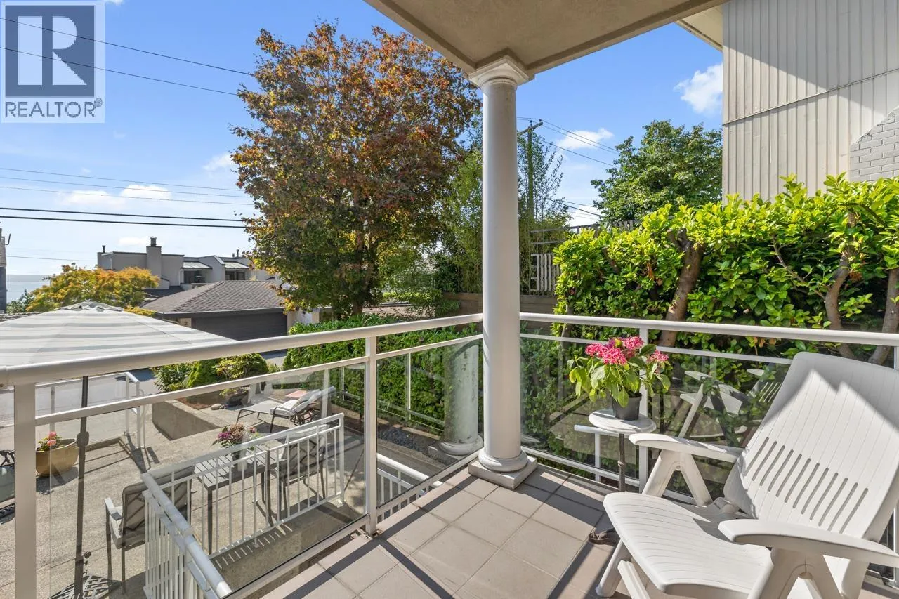 Downsizer´s dream in Dundarave! This 3-level, 3 bed + den/office, 4 bath duplex offers low-maintenance living with sprawling ocean views and integrated indoor-outdoor living. Enjoy a sunny south patio, 2 view balconies, and a charming front garden. Two bedrooms on the main level EACH with an ensuite bath, while the lower level offers a bedroom, full bath, separate entry and roughed-in plumbing - ideal for guests or an easy suite conversion. Steps to the Seawall and beach, to bask in the ever changing seascapes. Stroll to Dundarave Village for shops, services, grocery, cafes, and coffee with friends. The perfect blend of comfort, convenience, and location in one of West Vancouver´s most sought-after communities. Easy to show & Open House Sunday, November 16th 2-4pm and easy to show by apt. (id:27476)