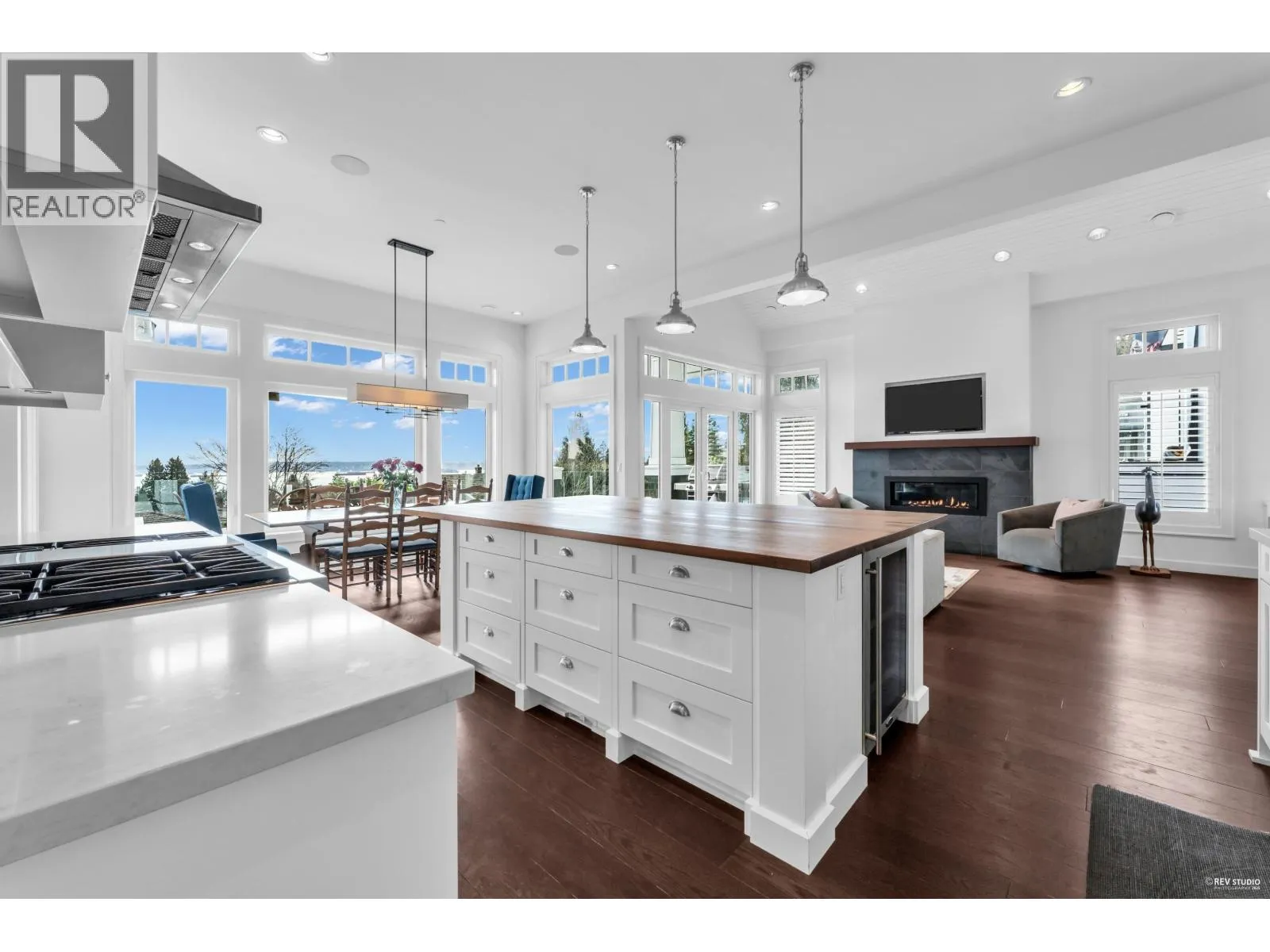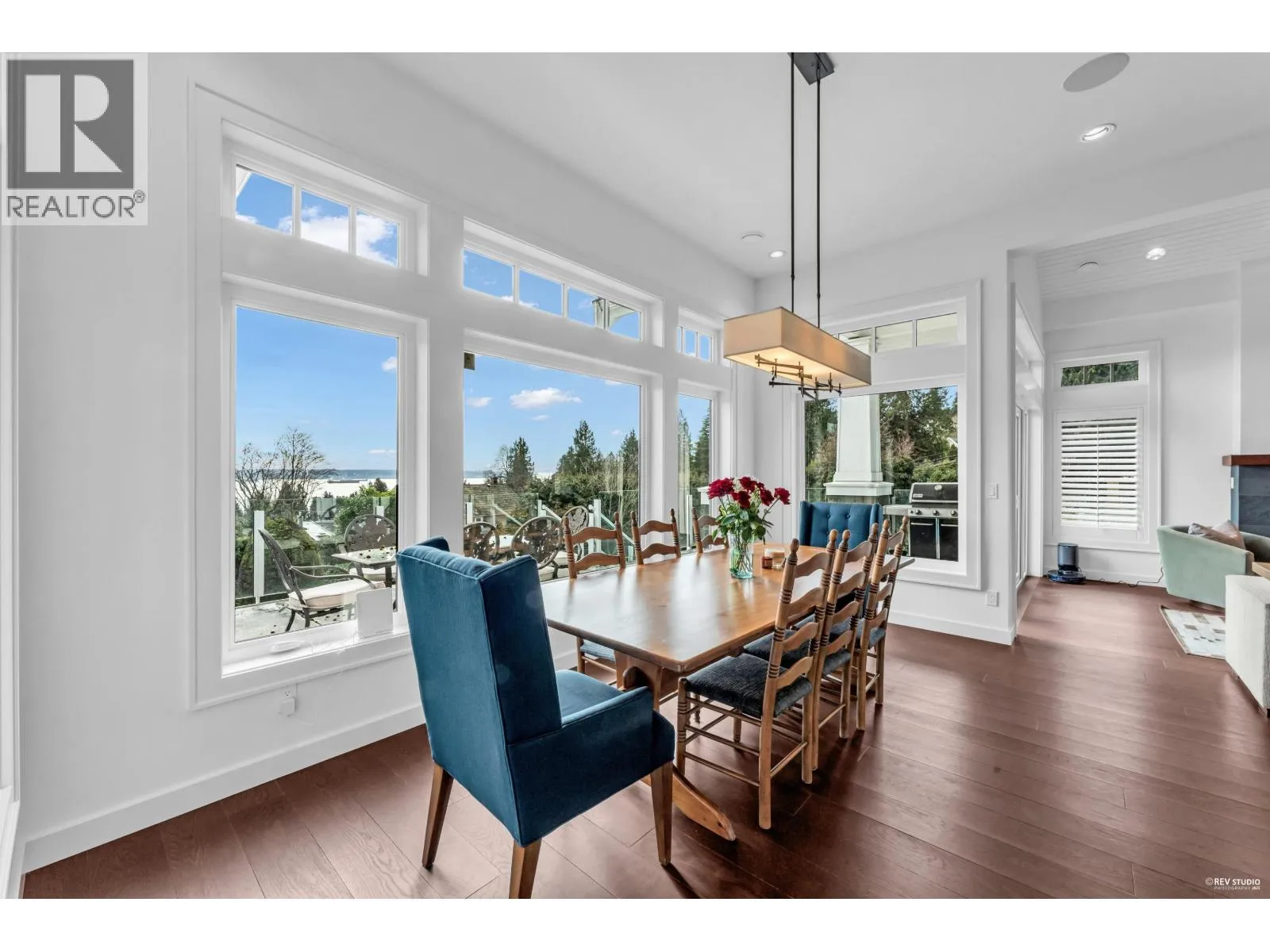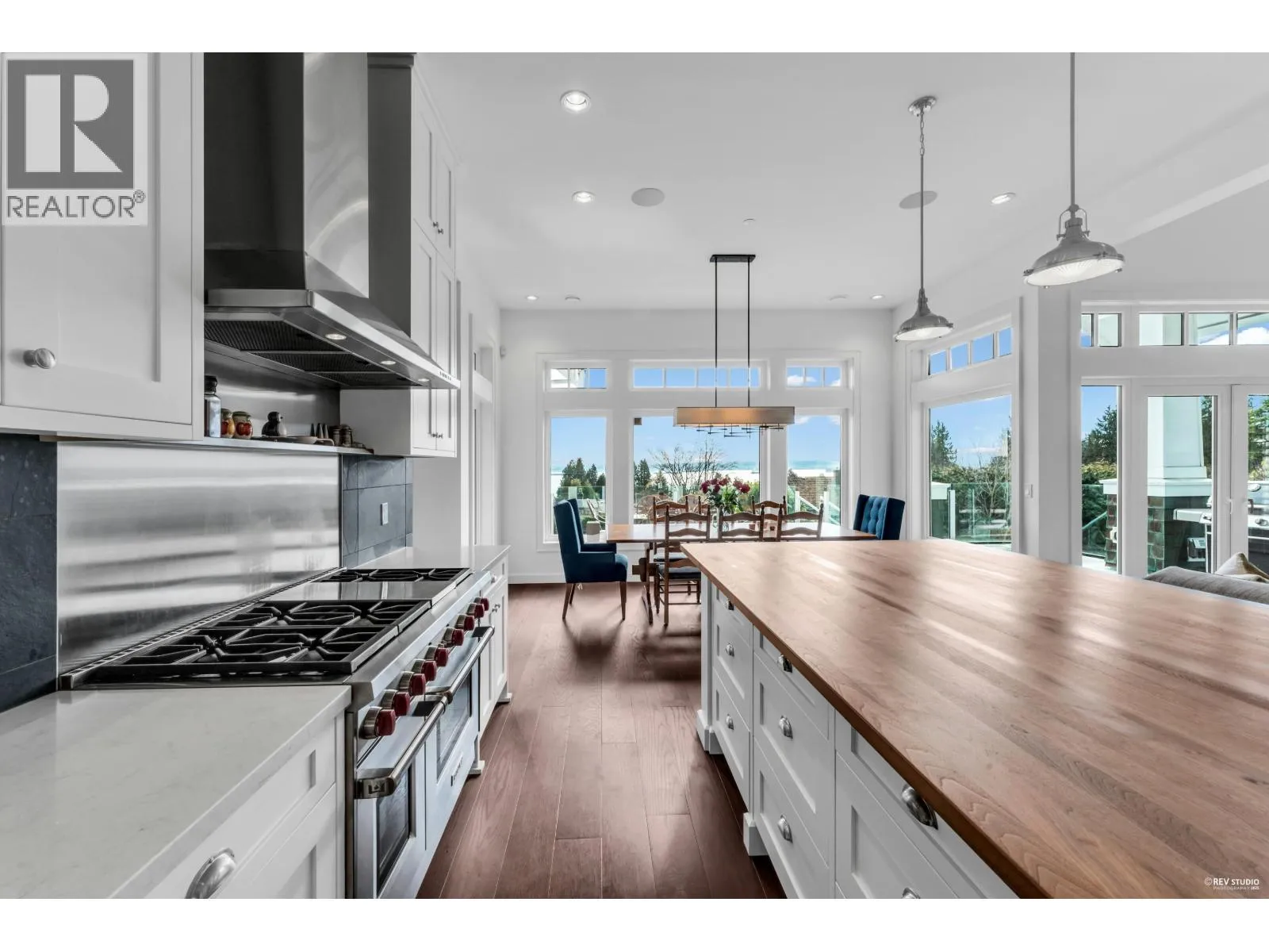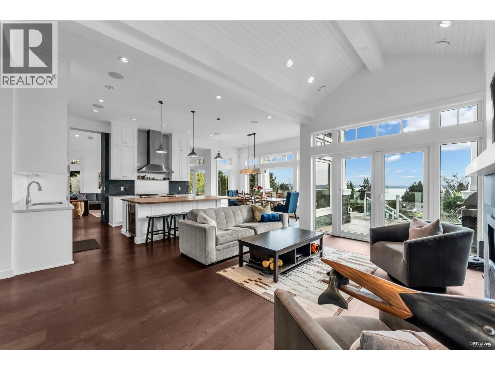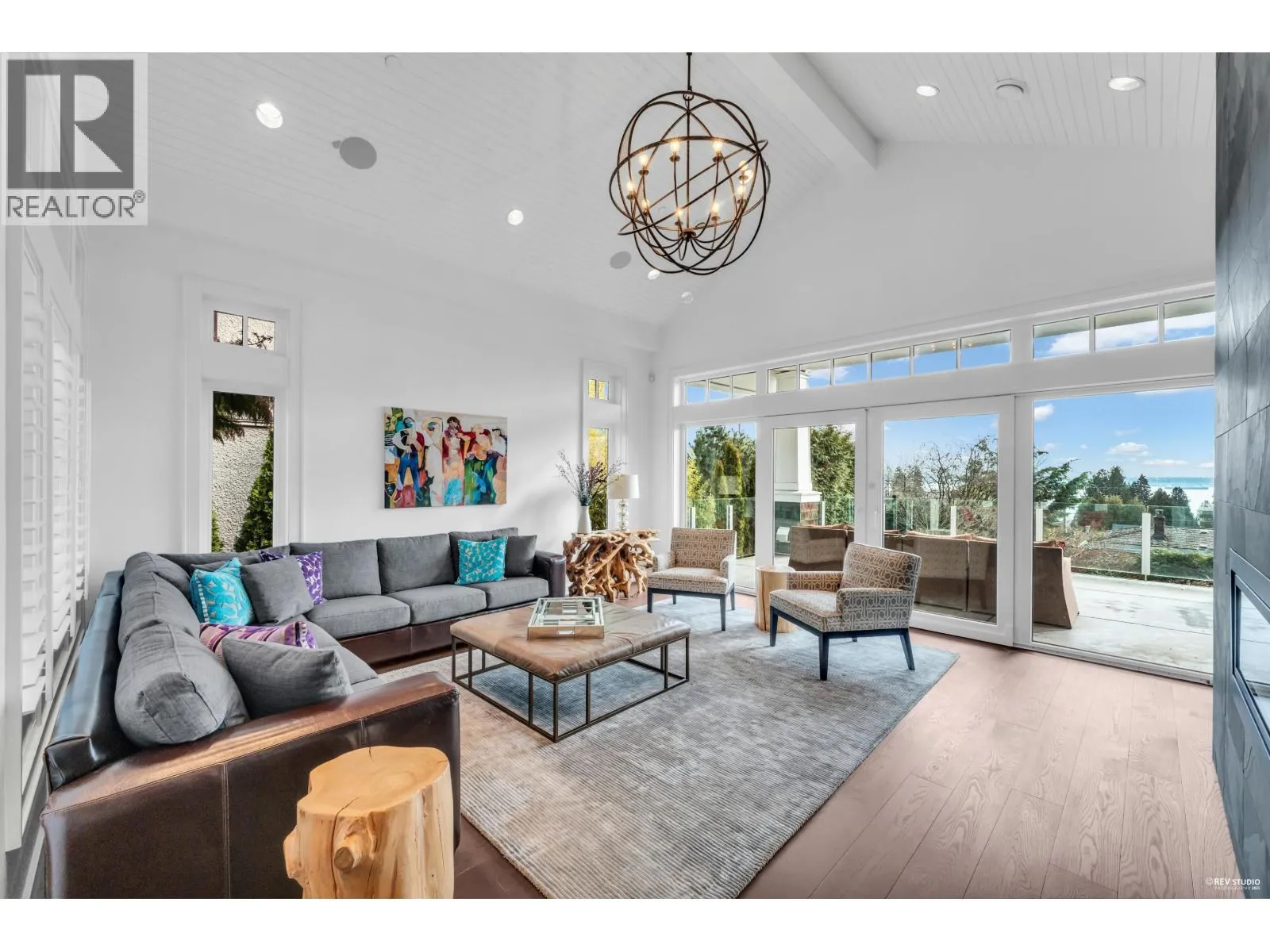 This exquisite custom built 6 bedroom, 5 bathroom luxury residence is nestled in the heart of Dundarave on a 10,075 SQ.FT. flat lot, thoughtfully designed for both elegance and functionality. The main floor features soaring vaulted ceilings and an open-concept layout, creating a bright and inviting atmosphere. Expansive sliding doors open to a spacious south-facing deck, perfect for entertaining and outdoor enjoyment. The lower level offers 4 well-appointed bedrooms, including a stunning master suite, with seamless access to the private, fenced backyard. The basement is an entertainer´s dream, boasting a large media room with built-in speakers and a wet bar, a sleek glass-enclosed gym, a climate-controlled wine room, two additional bedrooms with suite potential, and ample storage space. Your dream home awaits! (id:27476)