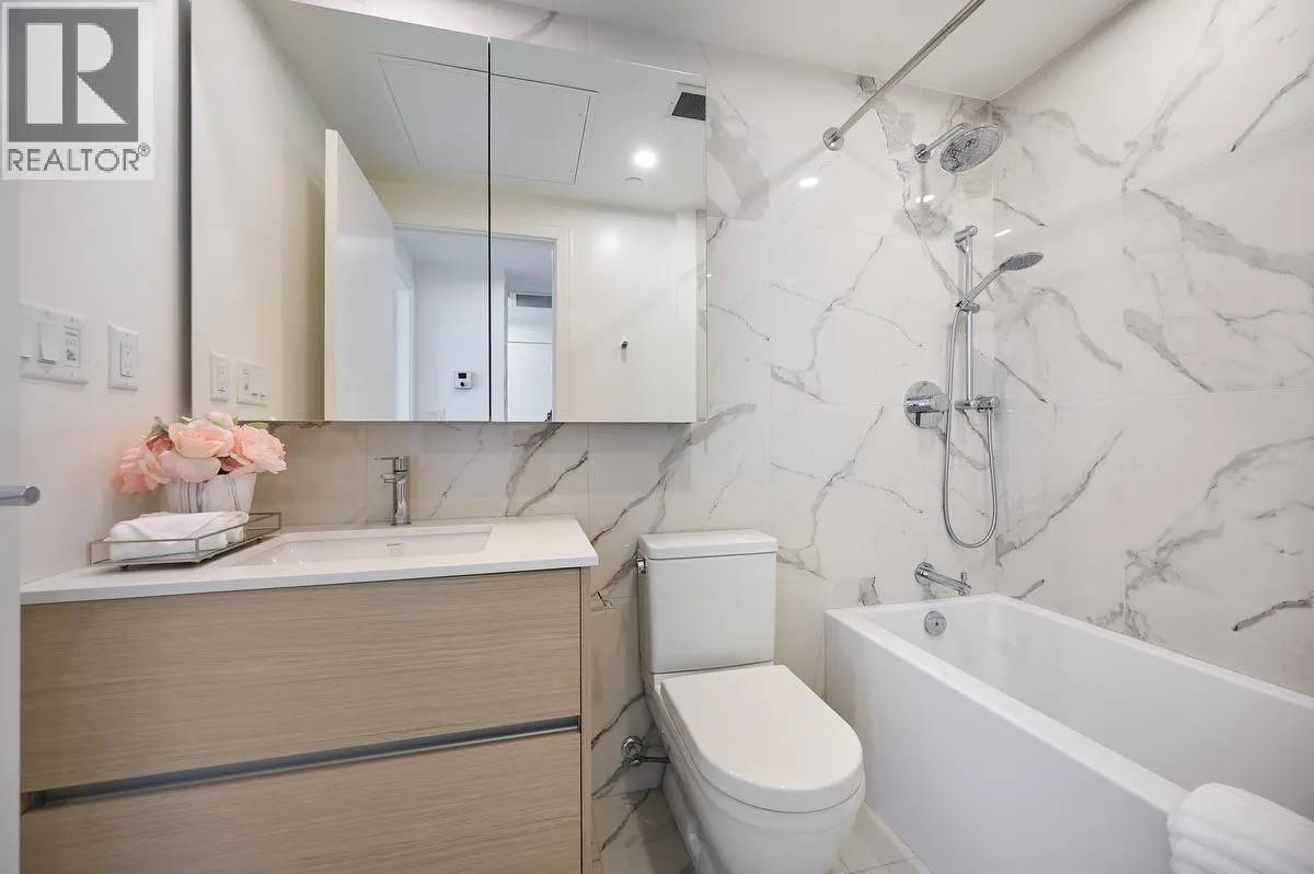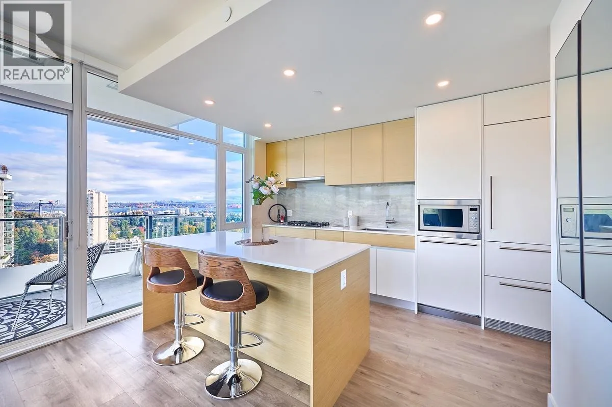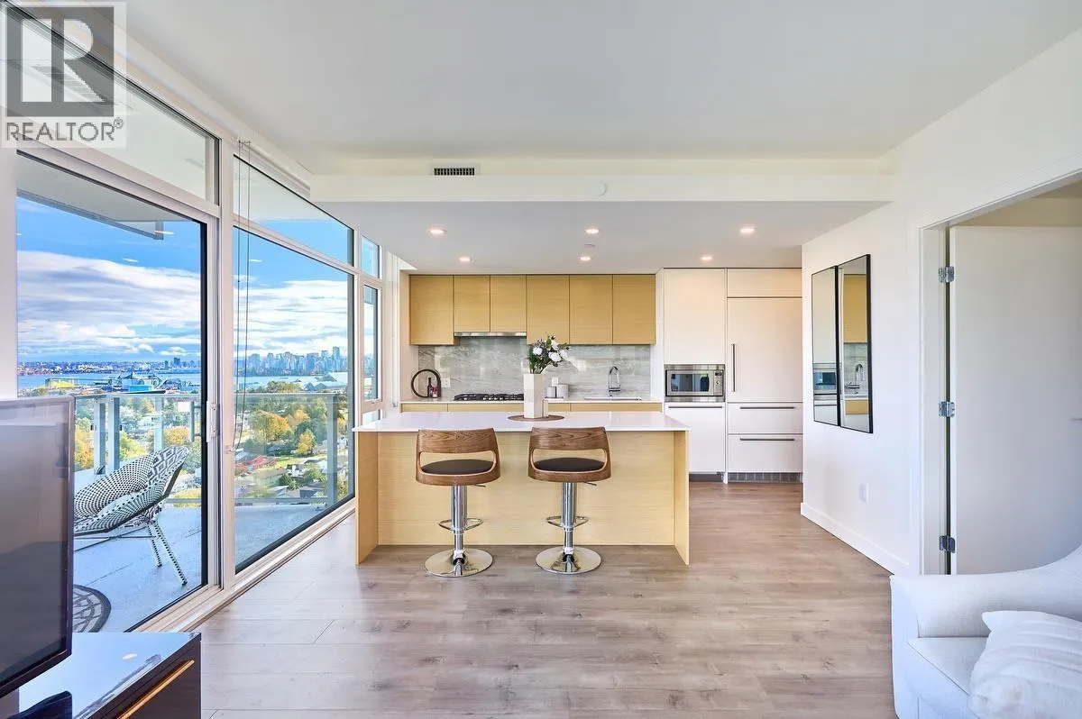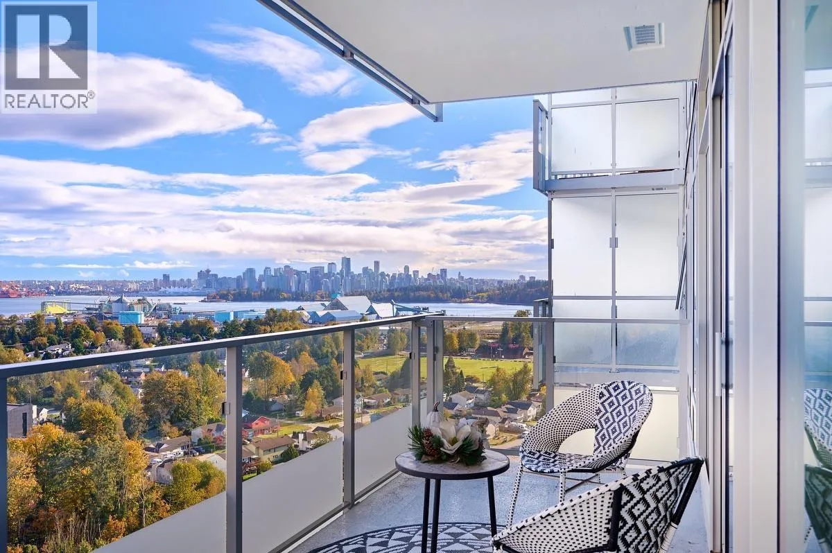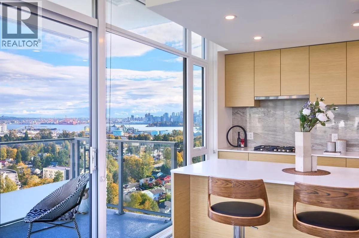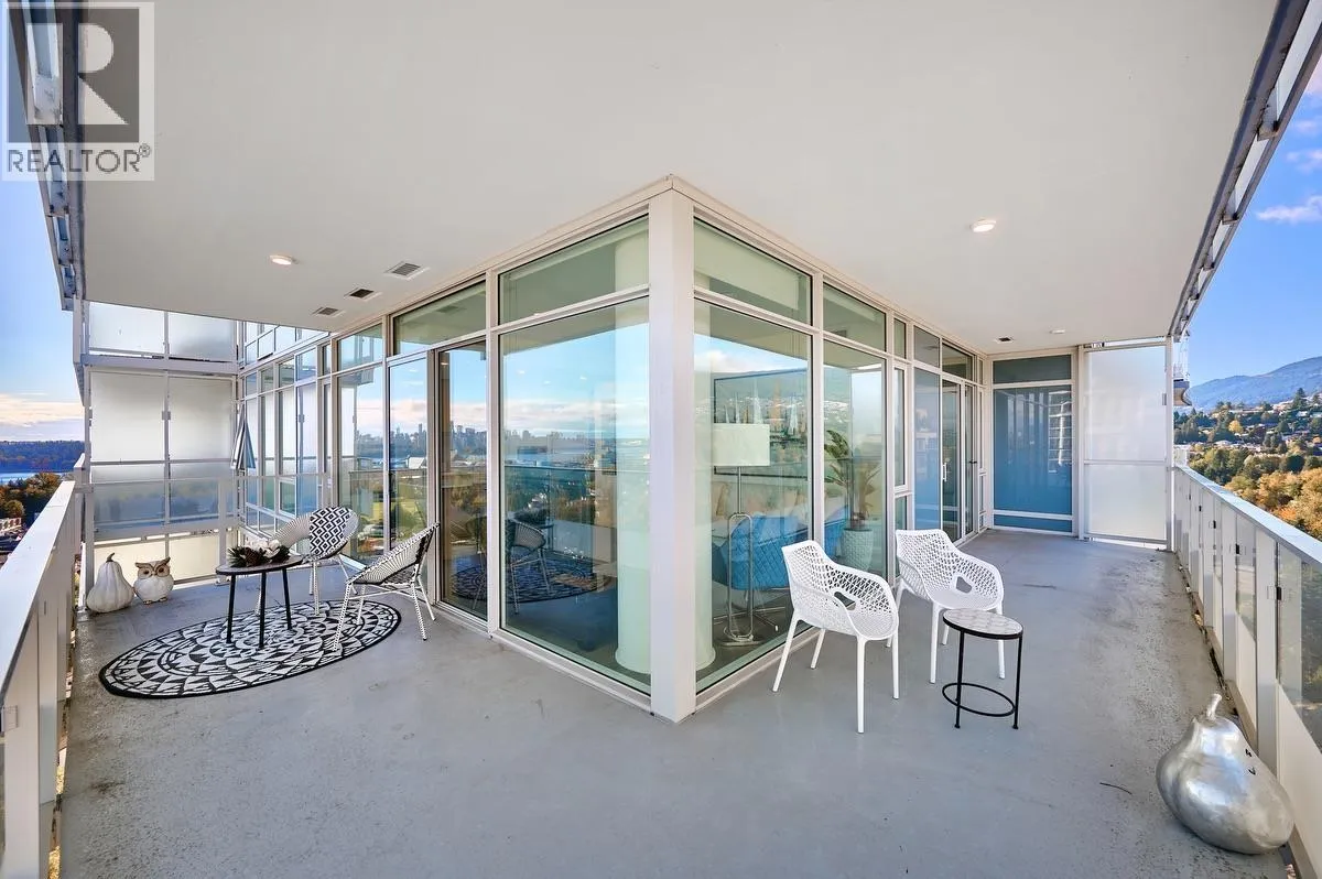 Stands as West Vancouver´s newest and tallest residential landmark, The Sentinel. This high-floor, 2-bedroom, 2-bathroom corner residence showcases breathtaking panoramic views of the ocean, city, and mountains. The expansive 345 sq.ft. wraparound patio, complete with a gas hookup, is perfect for outdoor dining and entertaining. Inside, enjoy 9-foot ceilings, floor-to-ceiling windows, and air conditioning throughout. The gourmet kitchen features premium AEG and Liebherr appliances, a 5-burner gas cooktop, and elegant quartz stone countertops and backsplash. Residents enjoy an array of resort-style amenities, including a fireside lounge, fitness center, yoga studio, hot tub, sauna, dog wash, and three guest suits. (id:27476)