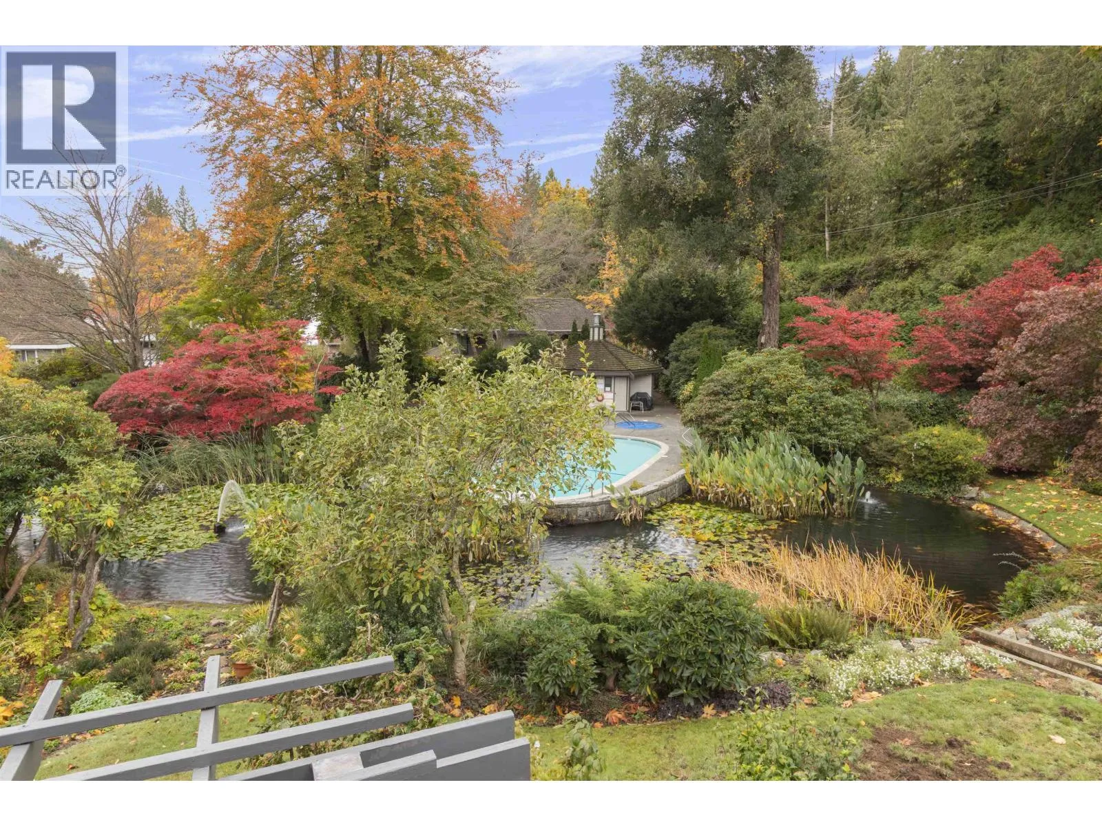 This could be the premier lot & location in prestigious Rockwood Estates- an exclusive 4.5 acre gated estate community of 16 custom homes with outdoor pool, spa and sauna and surrounded by beautiful ponds, gardens and private beach access! Gorgeous 2 storey style home + part basement offers a bright and luxurious arrangement with generous room sizes, sunken Living room, skylights, and an amazing and unique back yard outlook over what can only be described as a resort like setting that includes a beautiful pond with fountains, mature landscaping and peek a boo view to the pool, sauna & gazebo. Updates include renovated kitchen with high end appliances, newer windows & furnace. Upper level with two "primary suites" complete with ensuite baths and access to new balcony with amazing views! (id:27476)