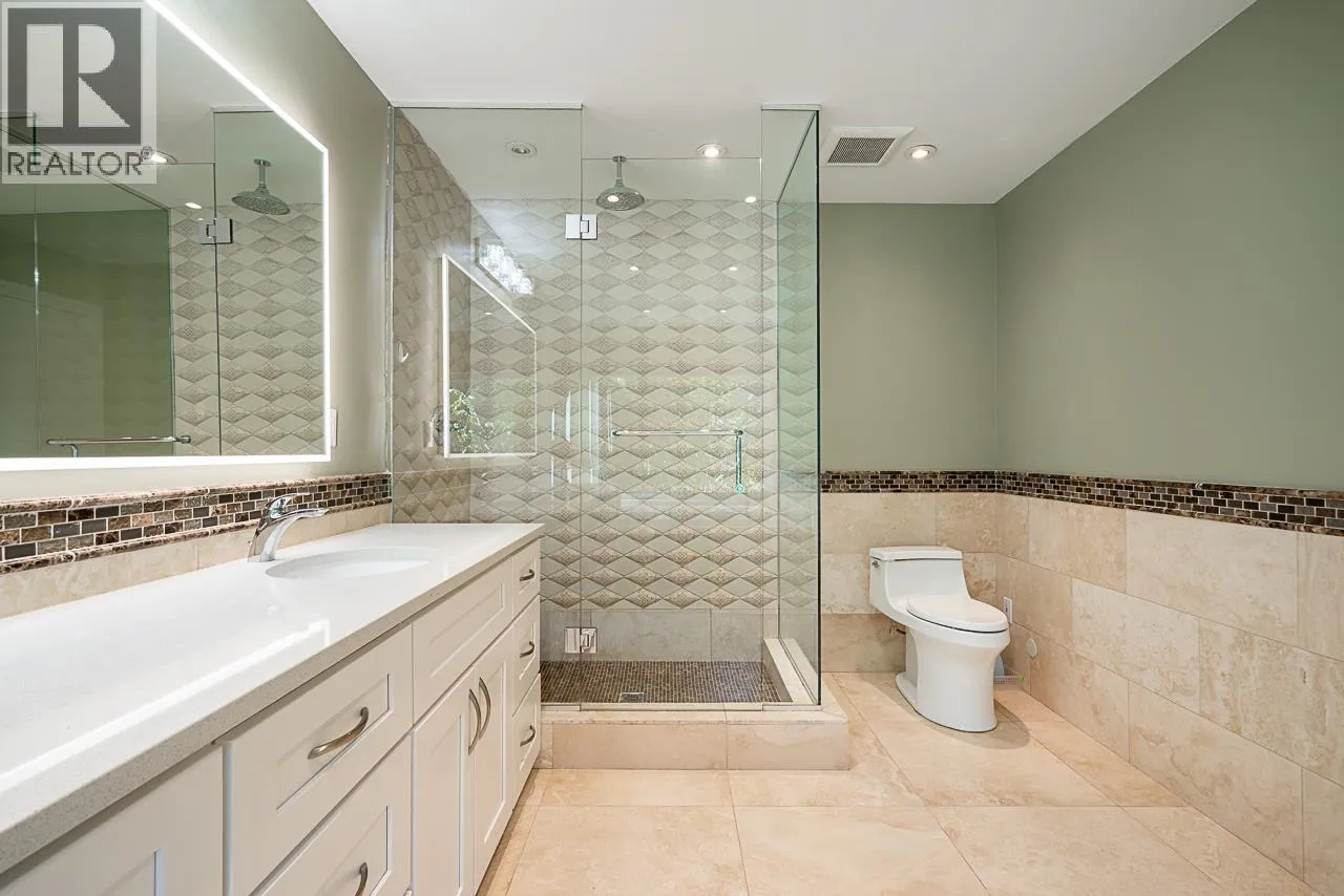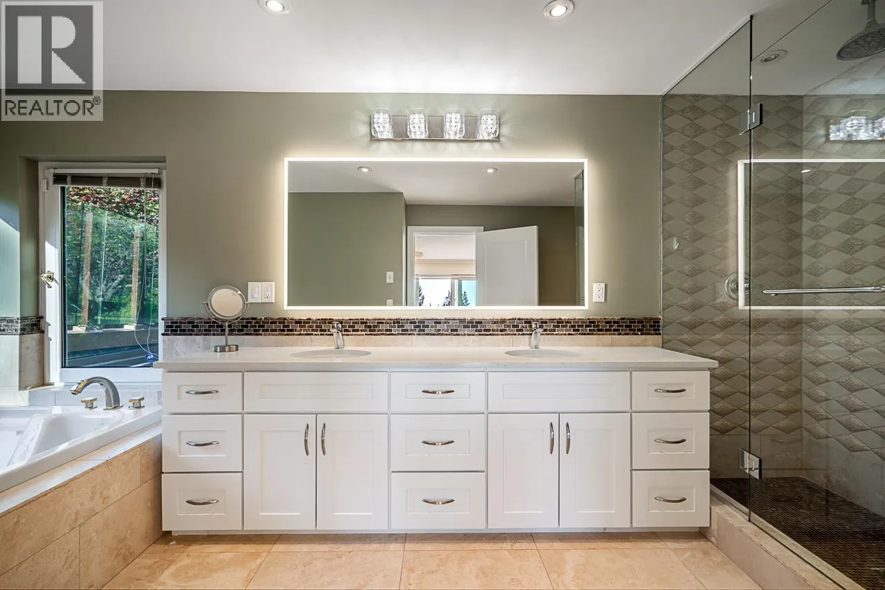 APPROXIMATELY $745,000.00 spent on meticulous renovations of this fabulous family home boasting a lovely view of DOWNTOWN/LIONSGATE/STANLEYPARK, flat driveway and oversized 3-car garage. Go to "DOCUMENTS" to see the LIST OF RENOVATIONS. MAIN FLOOR: stunning foyer and dining room with 18ft ceiling, spacious living room, fabulous gourmet kitchen, wok kitchen next to eating area and large family room overlooking the view. UPPER FLOOR: huge primary bedroom with large walk-in and en-suite with Jacuzzi tub, 3 spacious en-suited bedrooms, library/study area and laundry. LOWER FLOOR: fantastic rec-room with wet-bar, games room, both with sliding doors leading to large patio and beautifully tiled swimming pool and hot-tub, plus large media room, guest bedroom and full bathroom. (id:27476)