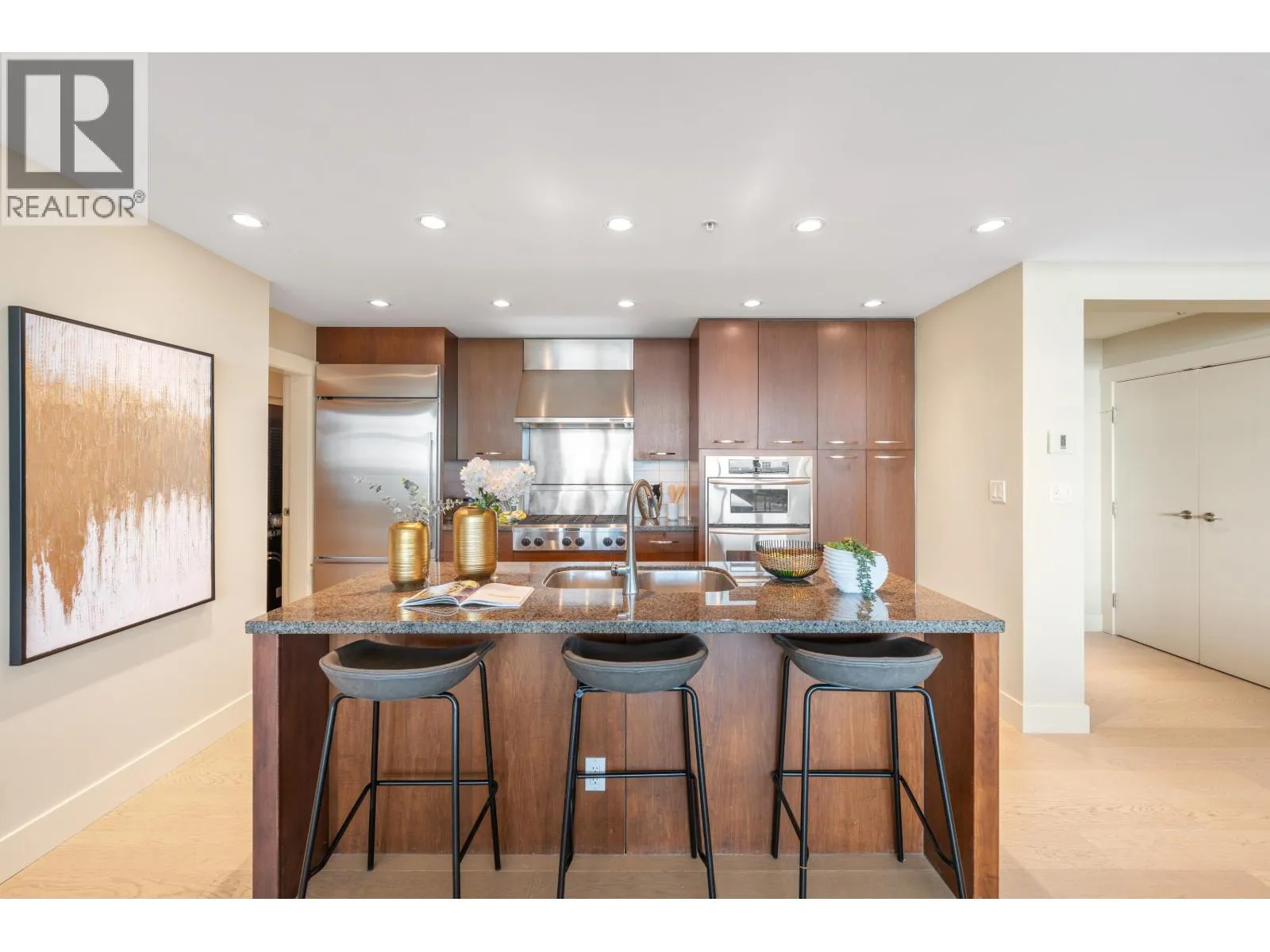 Panoramic Ocean, English Bay, Stanley park, DT and City views Unit in the StoneCliff-a luxury complex on 10 private acres! This South-Facing 2bdrm+2 full bathroom+1 open den has bright, open-design floor plan and comfortable living size with 9´ ceiling. Relax in the living, dinning and family rooms all while overlooking the sky-blue ocean. Stretching from the magnificent Mt. Baker, to the lush green Stanley Park, blending into the elegant English Bay, and flowing into the vast limitless Pacific Ocean. A gourmet kitchen with 6 burner gas stove, stainless steel appliance package. solid 7' Maple entry door, solid core interior doors, wall mounted cabinetry. New hard flooring in the living area and new painting. The Unit has built in AC Private 2 S/S car garage. O H NOV 16, 2-4PM (id:27476)