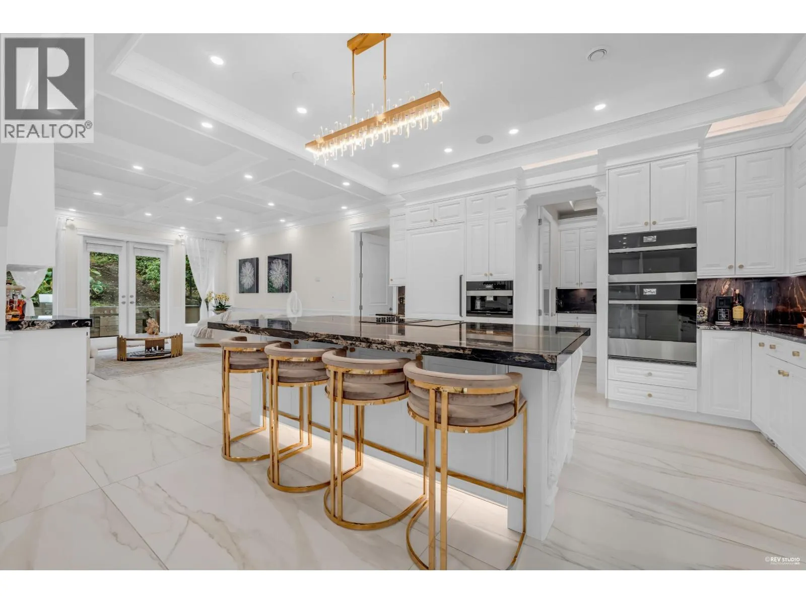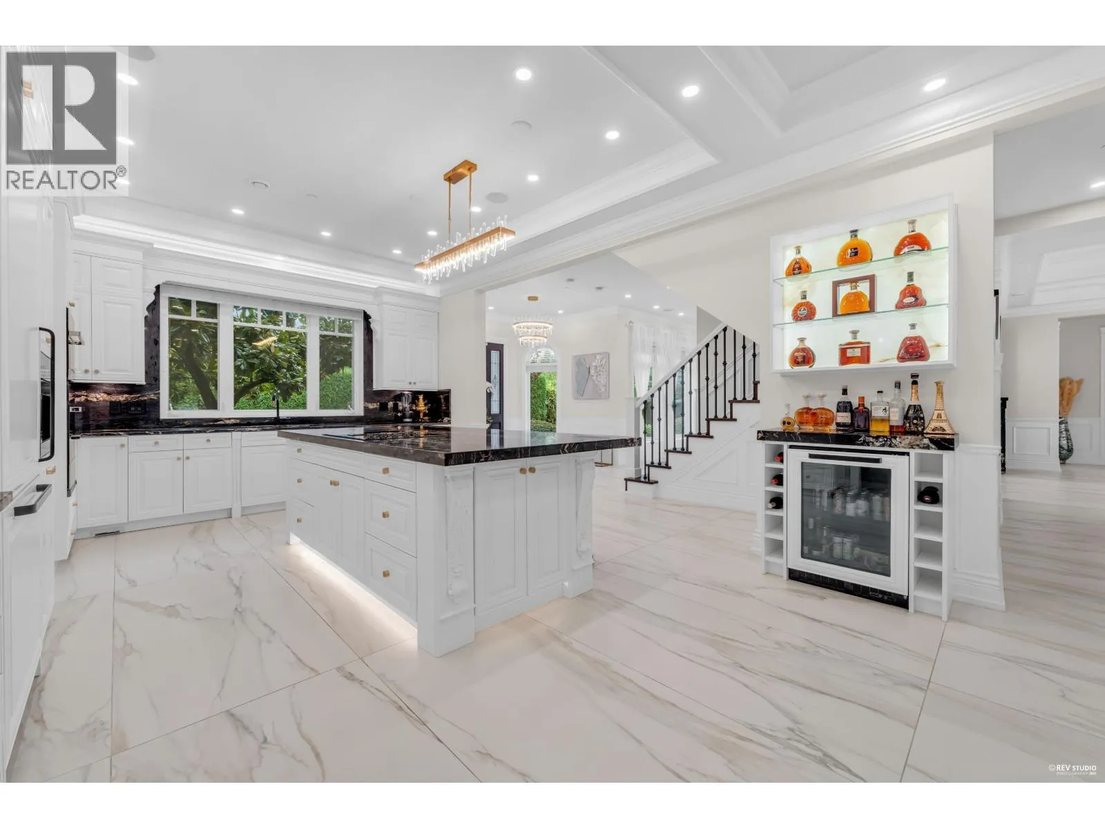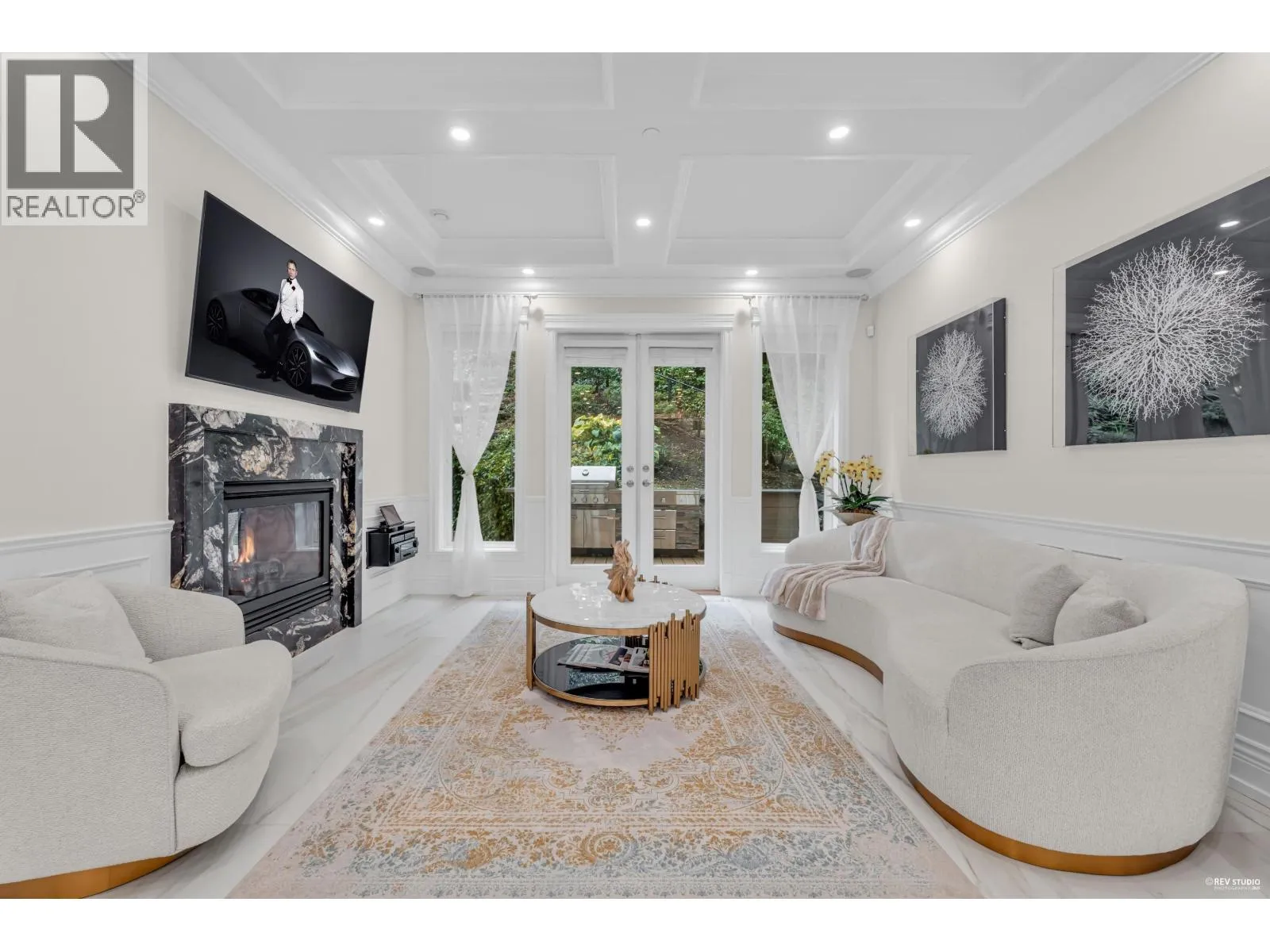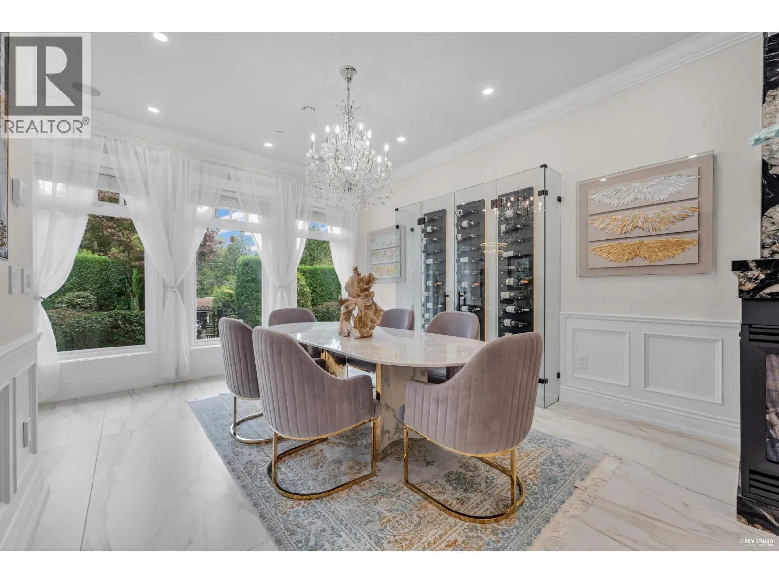 Experience refined luxury and modern elegance in this beautifully crafted residence. The main level features Italian-imported marble flooring. The open-concept kitchen showcases a striking central island, Miele and Gaggenau appliances, complemented by a fully equipped wok kitchen for added convenience. Upstairs offers four spacious bedrooms, including a lavish primary suite with a spa-inspired ensuite, a walk-in closet with clothing sterilizer, and direct access to a heated sunroom balcony. Additional highlights include custom LED lighting system, waterfall landscaping, and a mountain-view gazebo, four fireplaces, A/C, radiant heating, EV charging etc. The entertainment area on the main floor features a private entrance, providing excellent suite potential for rental or guests. This home perfectly blends modern luxury with thoughtful functionality. Conveniently located near top-ranked public schools, Park Royal shopping centre, and all essential amenities. (id:27476)